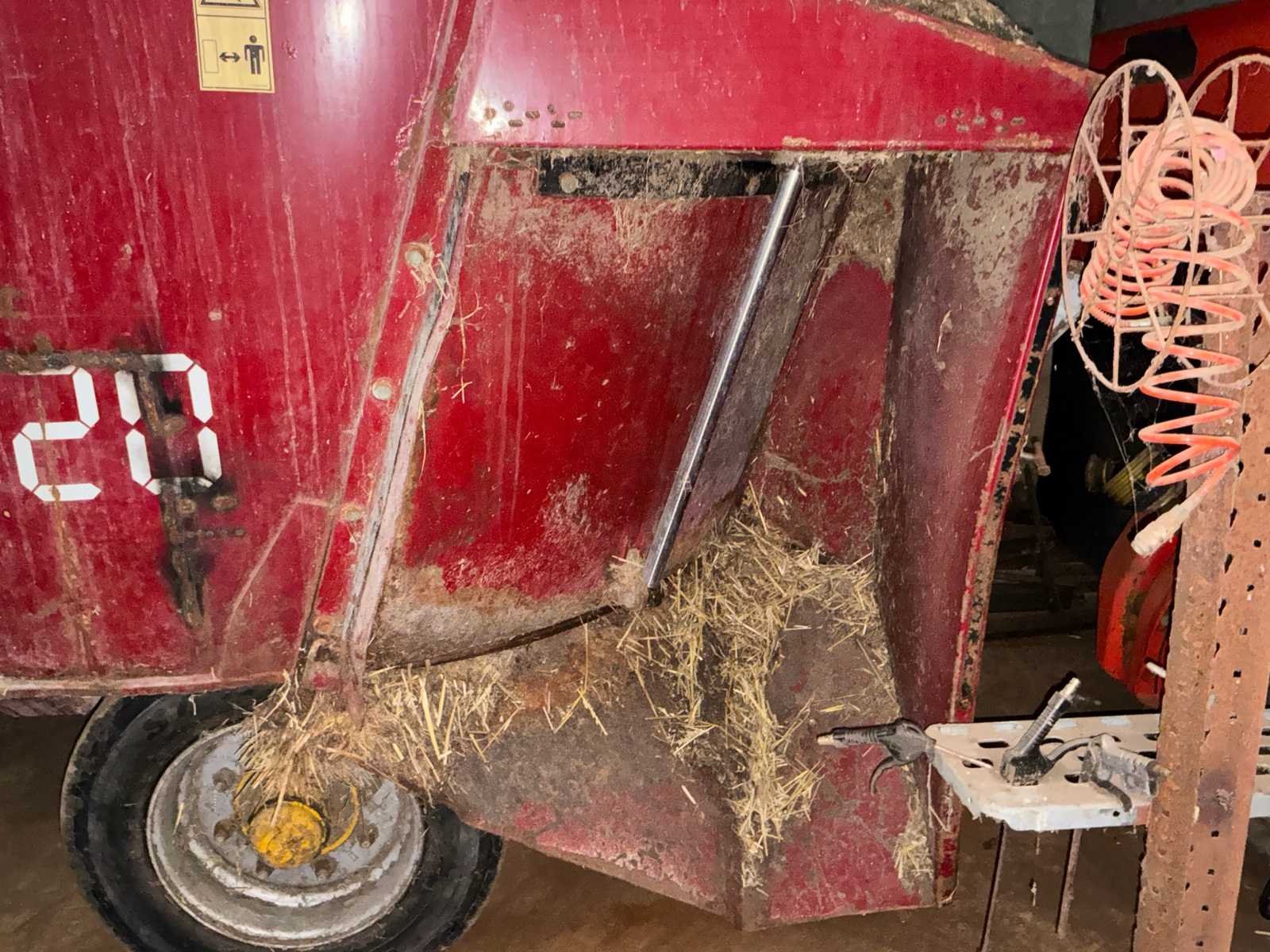 Groothoekgimbal, je kunt ermee rijden terwijl je bocht 2 achterdeuren met hydropische dispenser, bediend via tractorverdeler Nieuwe banden en casi-velg Handmatige countermessen Handgeschakelde standaard No Merk: AGM Bouwjaar: 2009 Serienummer: Bc385 Tankinhoud: 12m³ Aantal mengwalsen: 1 Weeginrichting: true Eigen gewicht: 3800kg