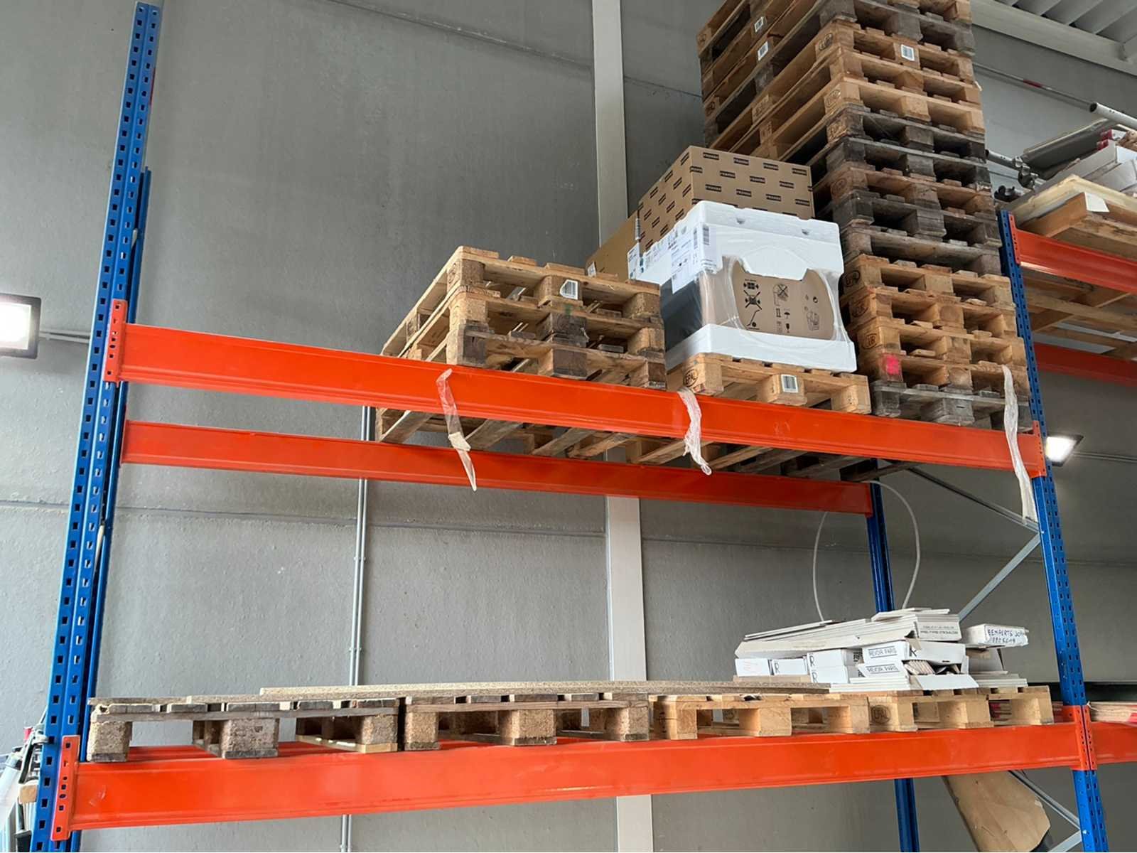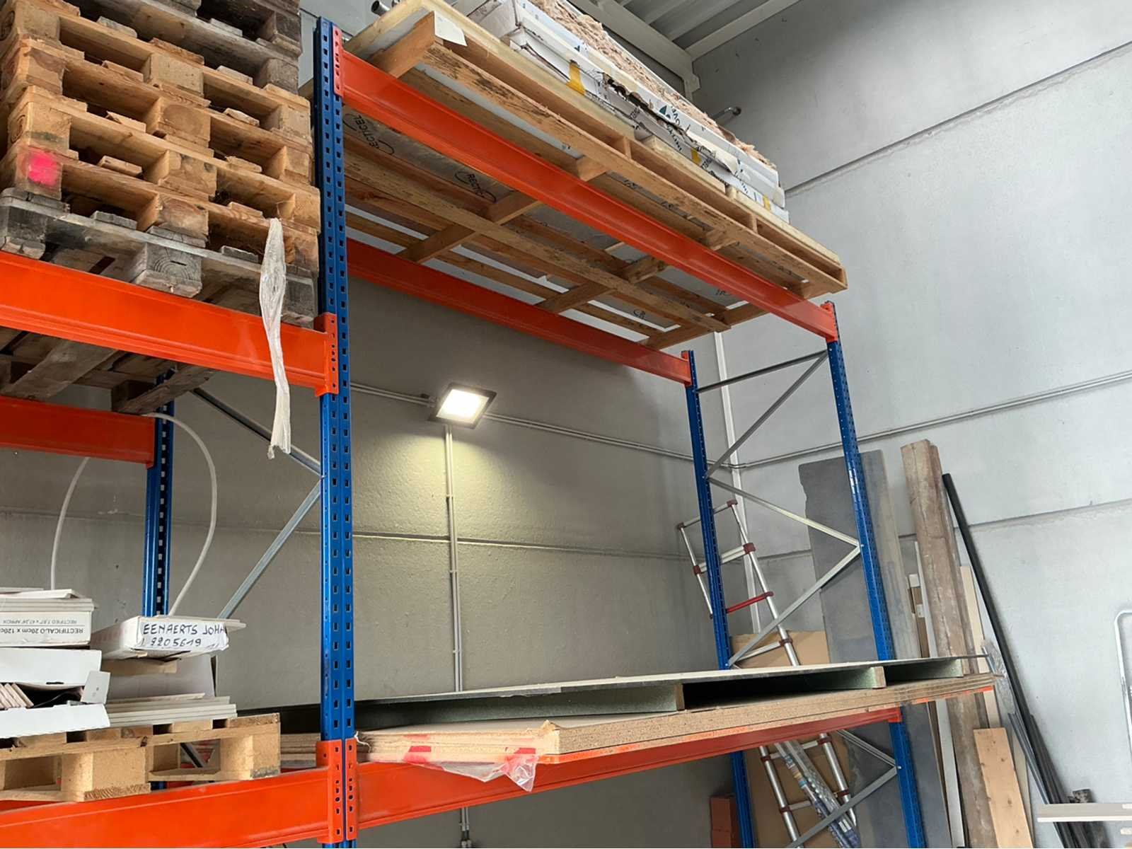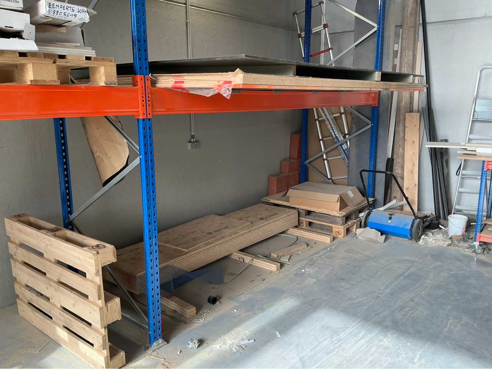 Het lot bevat een modulaire stelling, alles wat op de stelling ligt behoord niet tot het lot. Dimensies: Breedte: 6m Lengte/ Diepte: 1m 20 Hoogte: +- 3m Nee Type: Modulaire stellingen Aantal staanders: 5 Aantal liggers: 12 Aantal legborden: 5 Totale afmeting L: 6000cm Totale afmeting Breedte: 2440cm Totale afmeting Hoogte: 2590cm