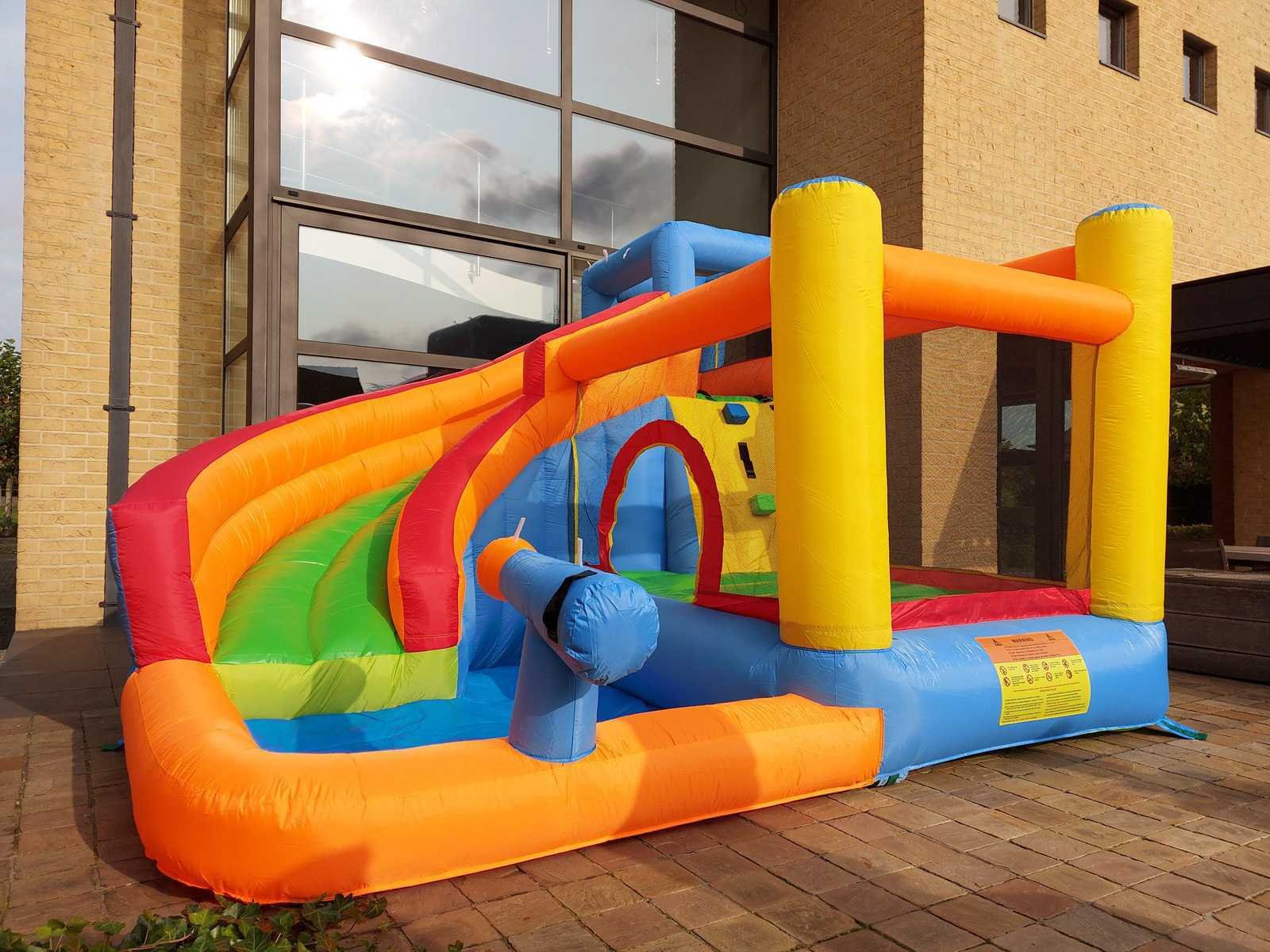 Watergame, inclusief blower 480W, afmeting verpakking in cm: 50x50x80, ongebruikt in verpakking. Nee Gewicht: 30kg Lengte: 300cm Breedte: 250cm Hoogte: 250cm Materiaal: nylon/PVC