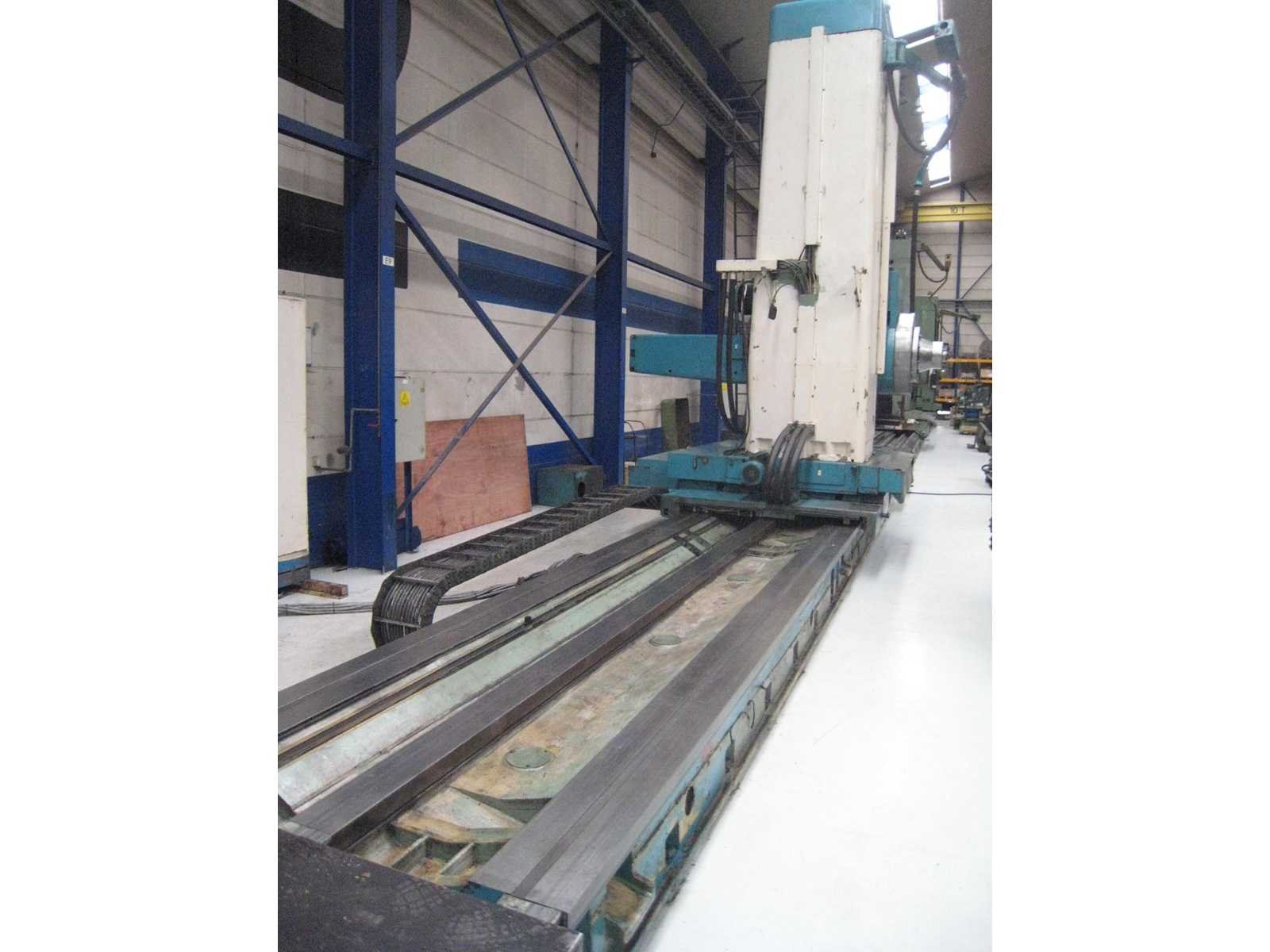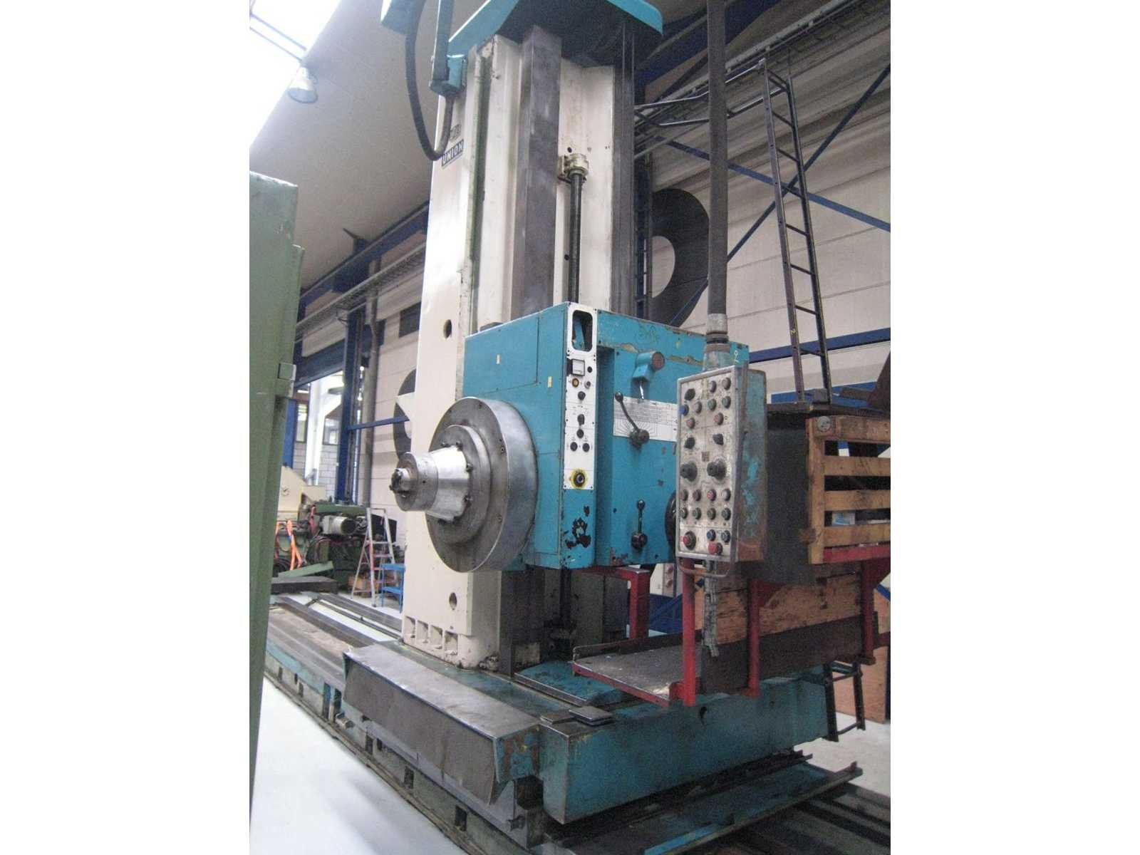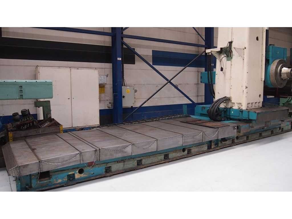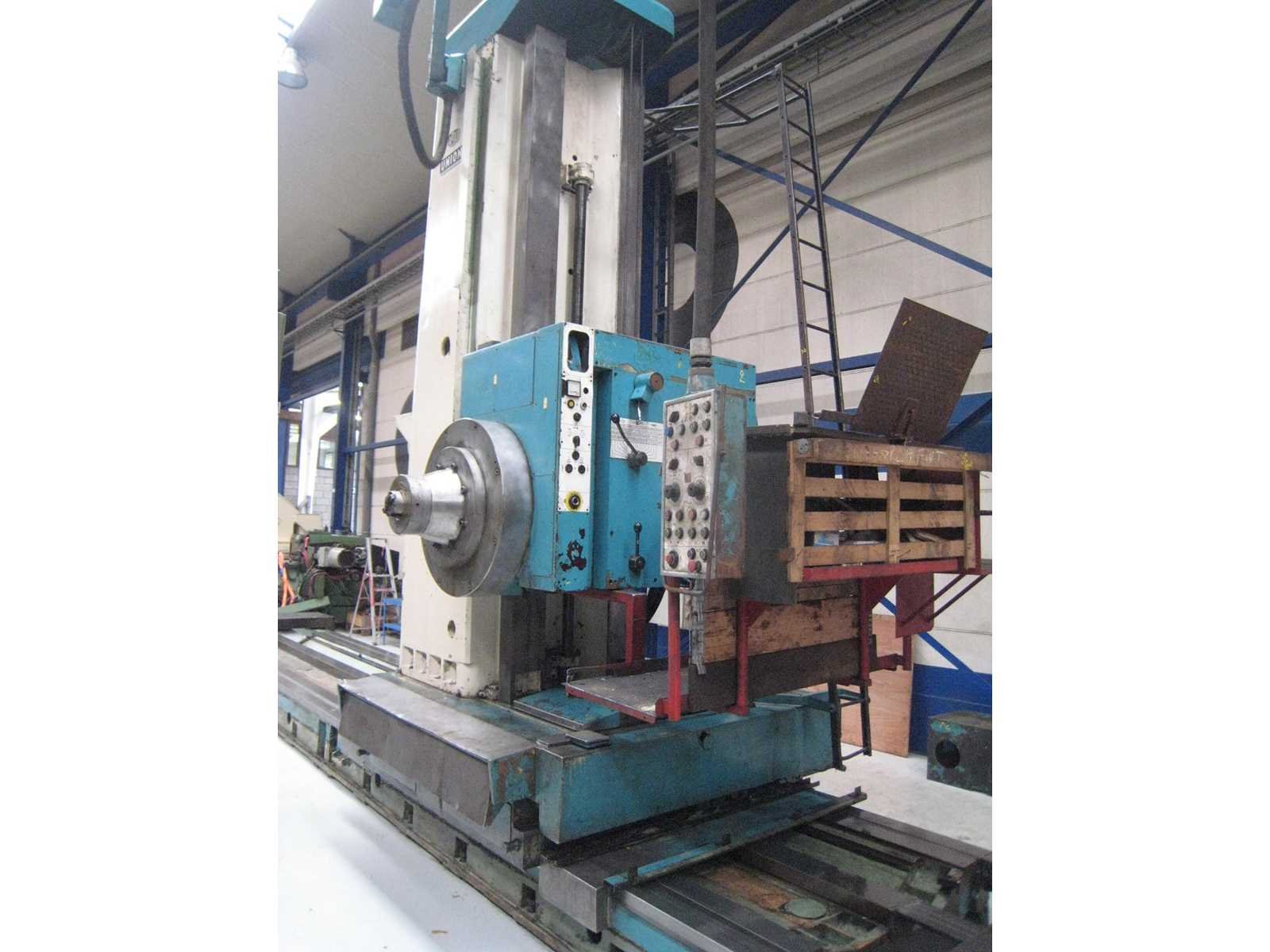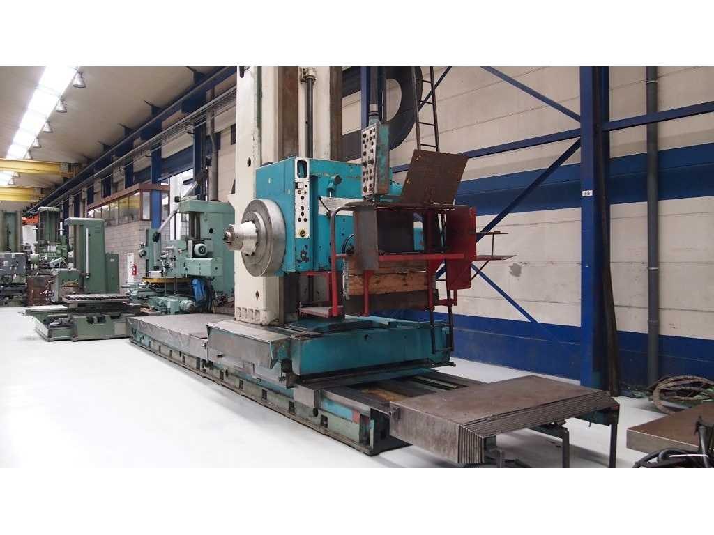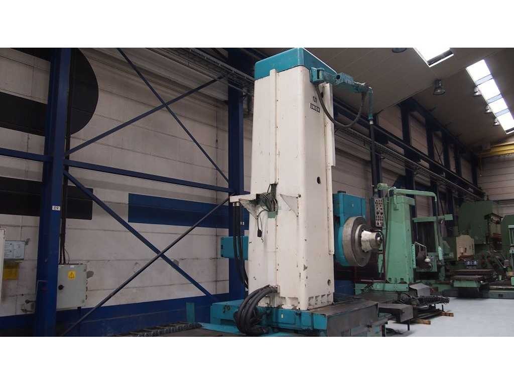 HORIZONTAL BORING MILL (floor type) Inv. No. 11.474BM Make UNION Model BFP 125 Mach. No. 10386 Spindle Dia. Ø 125 mm Spindle Taper ISO 50 P.D.B. Horizontal Travel Spindle 1.000 mm Horizontal Travel Column 7.000 mm Vertical Travel Headstock 2.500 mm Cross Travel Column 450 mm R.P.M. 3,55 – 710 (27x) kW 25 Volts 380 Cycles 50 Including: Facing Head Ø 800 mm Nee Merk: UNION Type: BFP 125 Serienummer: 10386 Verplaatsing x-as: 7000mm Verplaatsing y-as: 2500mm Verplaatsing z-as: 450mm Spil Ø: 125 Opname iso: ISO 50 P.D.B. Snelheid van n =: 3,55rpm Snelheid tot n =: 710rpm Motorvermogen (kW): 25kW Aansluiting: 380V GS Code: 84589900 Leveringsvoorwaarden: Geladen op vrachtwagen