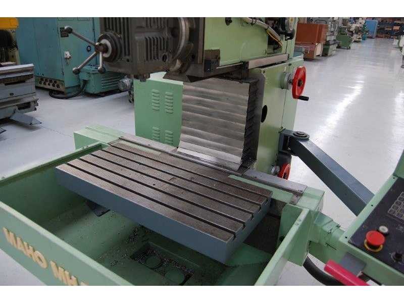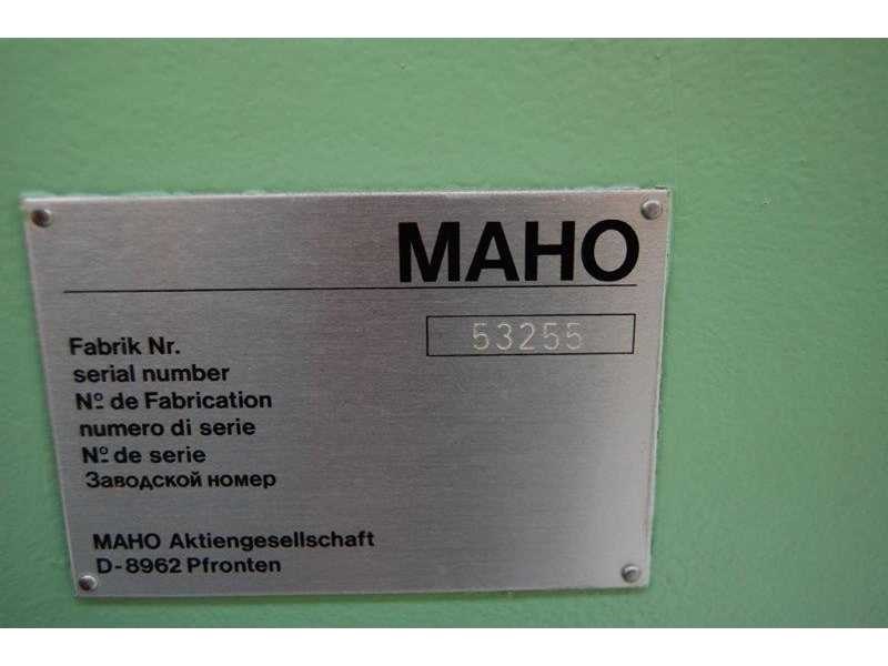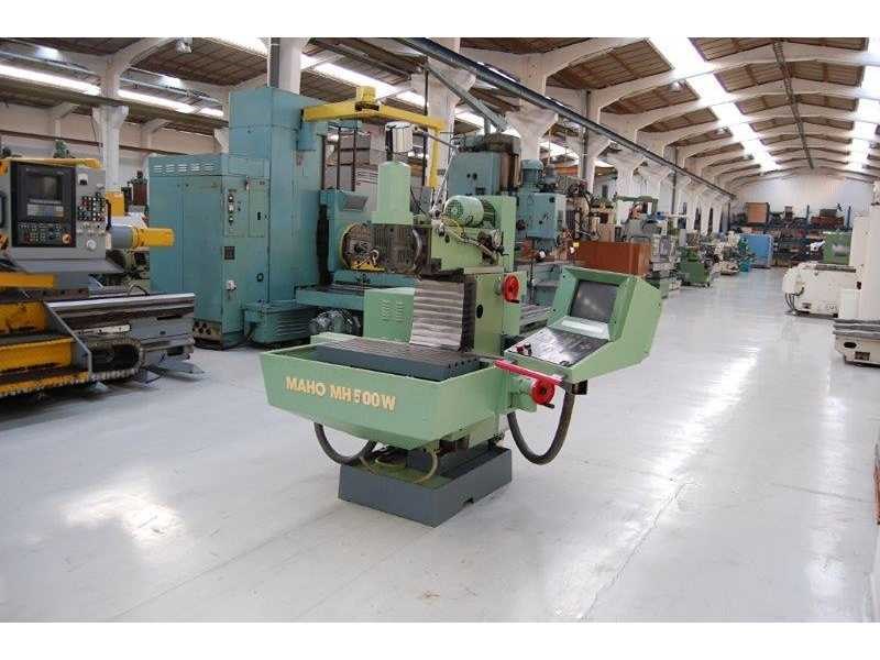 CNC MILLING MACHINE Inv. No. 12.017J1 Make MAHO Model MH 500W Machine No. 53255 Control MAHO CNC 232 Table dimensions Ø 900 x 536 mm Longitudinal travel (X) 500 mm Cross travel(Y) 380 mm Vertical travel (Z) 350 mm Taper ISO 40 P.D.B. R.P.M. 63 – 4000 kW 5.5 Volts 400 Cycles 50 Including: Feeds X/Y/Z, min/max 1 – 2000mm / min. Rapid traverse 4 m/min. Nee Merk: MAHO Type: MH500W Serienummer: 53255 Verplaatsing x-as: 500mm Verplaatsing y-as: 380mm Verplaatsing z-as: 350mm Opname iso: 40 P.D.B. Snelheid van n =: 63rpm Snelheid tot n =: 4000rpm T-gleuf opspantafelafmeting L: 900mm T-gleuf opspantafelafmeting B: 536mm CNC-besturing, merk, type: MAHO CNC 232 Motorvermogen (kW): 5,5kW Aansluiting: 400V GS Code: 84596190 Leveringsvoorwaarden: Geladen op vrachtwagen