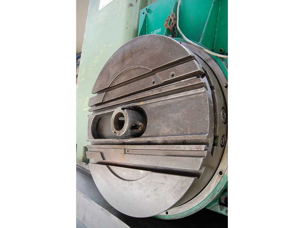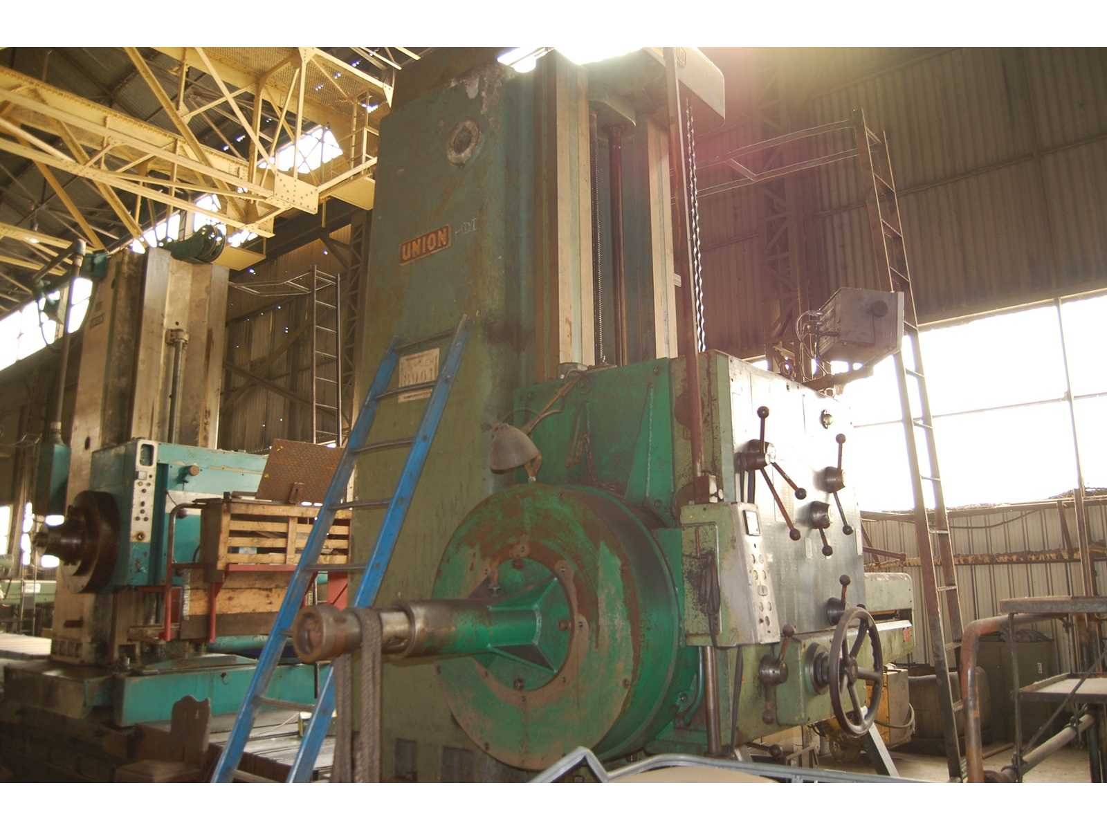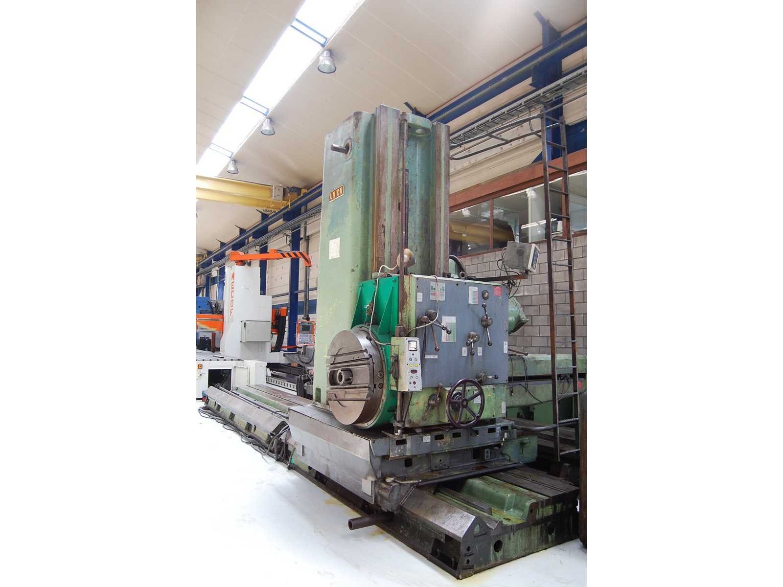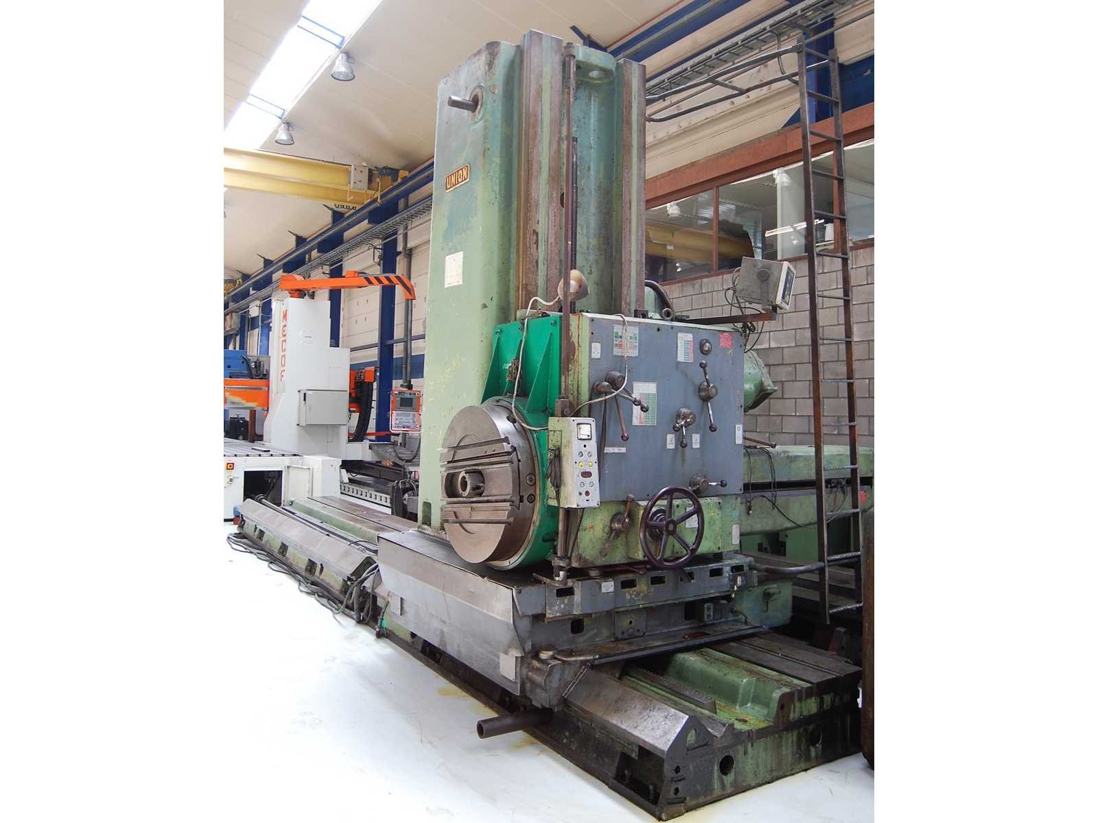 HORIZONTAL BORING MILL (floor type) Inv. No. 12.019BM Make UNION Model BFP 125-1 Mach. No. 7935/62 Spindle Dia. Ø 125 mm Spindle Taper ISO 50 P.D.B. Horizontal Travel Spindle 1.130 mm Horizontal Travel Column 6.000 mm Vertical Travel Headstock 1.700 mm Cross Travel Column 400 mm R.P.M. 2,24 - 450 (27x) kW 14 Volts 380 Cycles 50 Including: Facing Head D.R.O. Nee Merk: UNION Type: BFP 125-1 Serienummer: 7935/62 Verplaatsing x-as: 6000mm Verplaatsing y-as: 1700mm Verplaatsing z-as: 400mm Spil Ø: 125 Opname iso: 50 P.D.B. Snelheid van n =: 2,24rpm Snelheid tot n =: 450rpm Motorvermogen (kW): 14kW Aansluiting: 380V GS Code: 84589900 Leveringsvoorwaarden: Geladen op vrachtwagen
