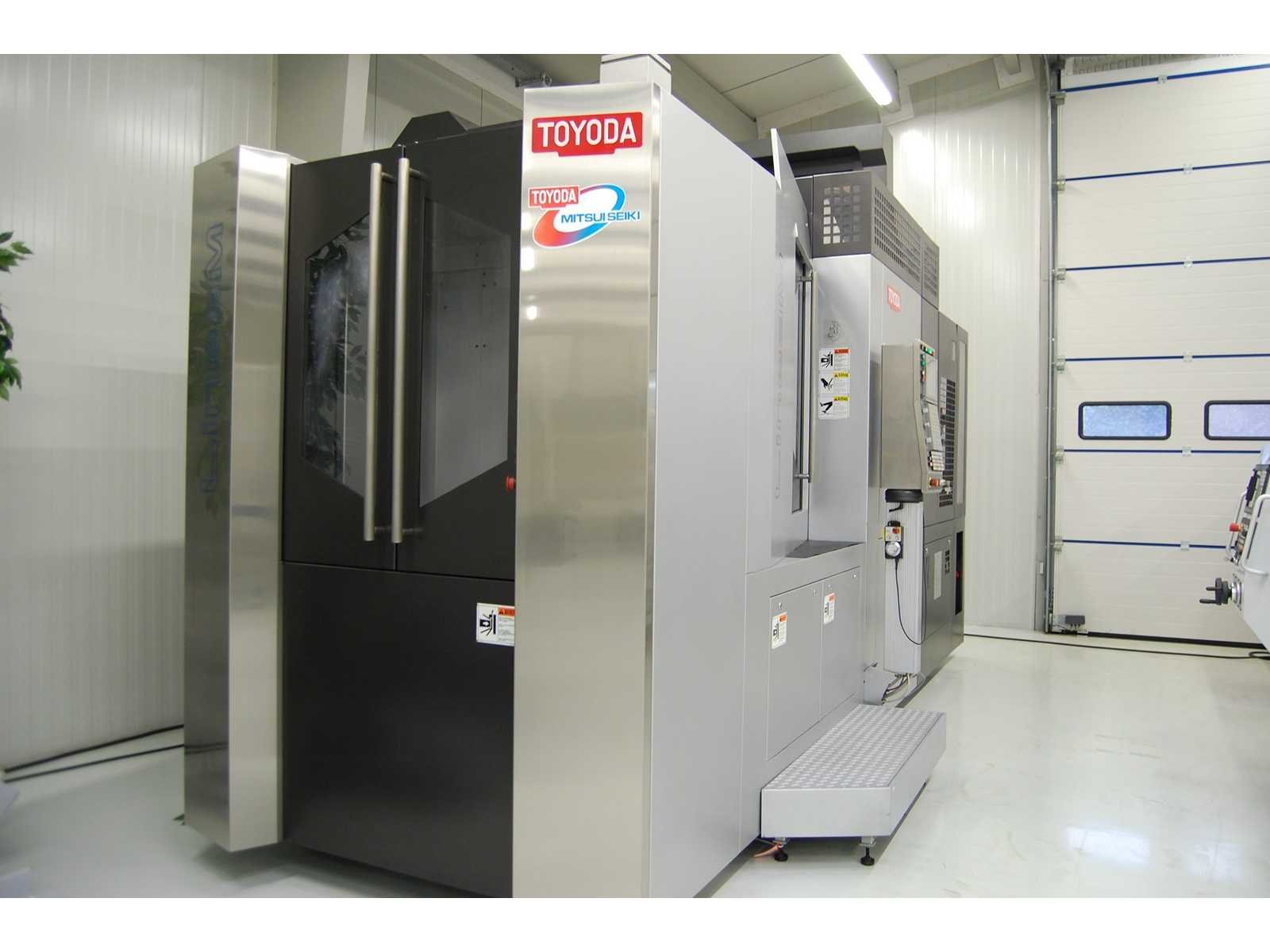 CNC HORIZONTAL MACHINING CENTER Inv. No. 12.178MM Make TOYODA Model LINEAM III Control MELDAS M650 Year 2004 TABLE Pallet size 450 x 450 mm Max. load on pallet 400 kg Table indexing increment 0.001 degrees STROKE X-Axis stroke 630 mm Y-Axis stroke 630 mm Z-Axis stroke 700 mm Distance from spindle center to top of pallet 50 – 680 mm Distance spindle nose /center rotary index table 50 – 680 mm FEED RATE Rapid feed rate X,Y 120 m/min Rapid feed rate Z 60 m/min Rapid feed rate B 120 m/min Cutting feed rate X,Y,Z 0,1 – 60 m/min SPINDLE RPM spindle 300 – 20.000 min-1 Spindle taper HSK-A63 Coolant Through spindle ATC Tool holder Special HSK-A63 2 Face contact tool Tool magazine storage 40 pcs Tool change time 2,5 sec. DRIVE MOTOR Spindle drive motor Ac 45/30 kW MACHINE WEIGHT & POWER REQUIREMENTS Machine weight 15.000 kg Power requirement 96 kVA ACCESSORIES: Spindle linear motor cooling unit Spindle orientation Spindle air blow Splash guard – House type w ith rotary door Pallet changer – Turn type equipped with 2 pallets Nee Merk: TOYODA Type: LINEAM III Bouwjaar: 2004 Verplaatsing x-as: 630mm Verplaatsing y-as: 630mm Verplaatsing z-as: 700mm Opname: HSK-A63 Snelheid van n =: 300rpm Snelheid tot n =: 20000rpm Tafel afmeting l: 450mm Tafel afmeting b: 450mm Werkstuk gewicht max.: 400kg CNC-besturing, merk, type: MELDAS M650 Machinegewicht: 15000kg GS Code: 84571010 Leveringsvoorwaarden: Geladen op vrachtwagen