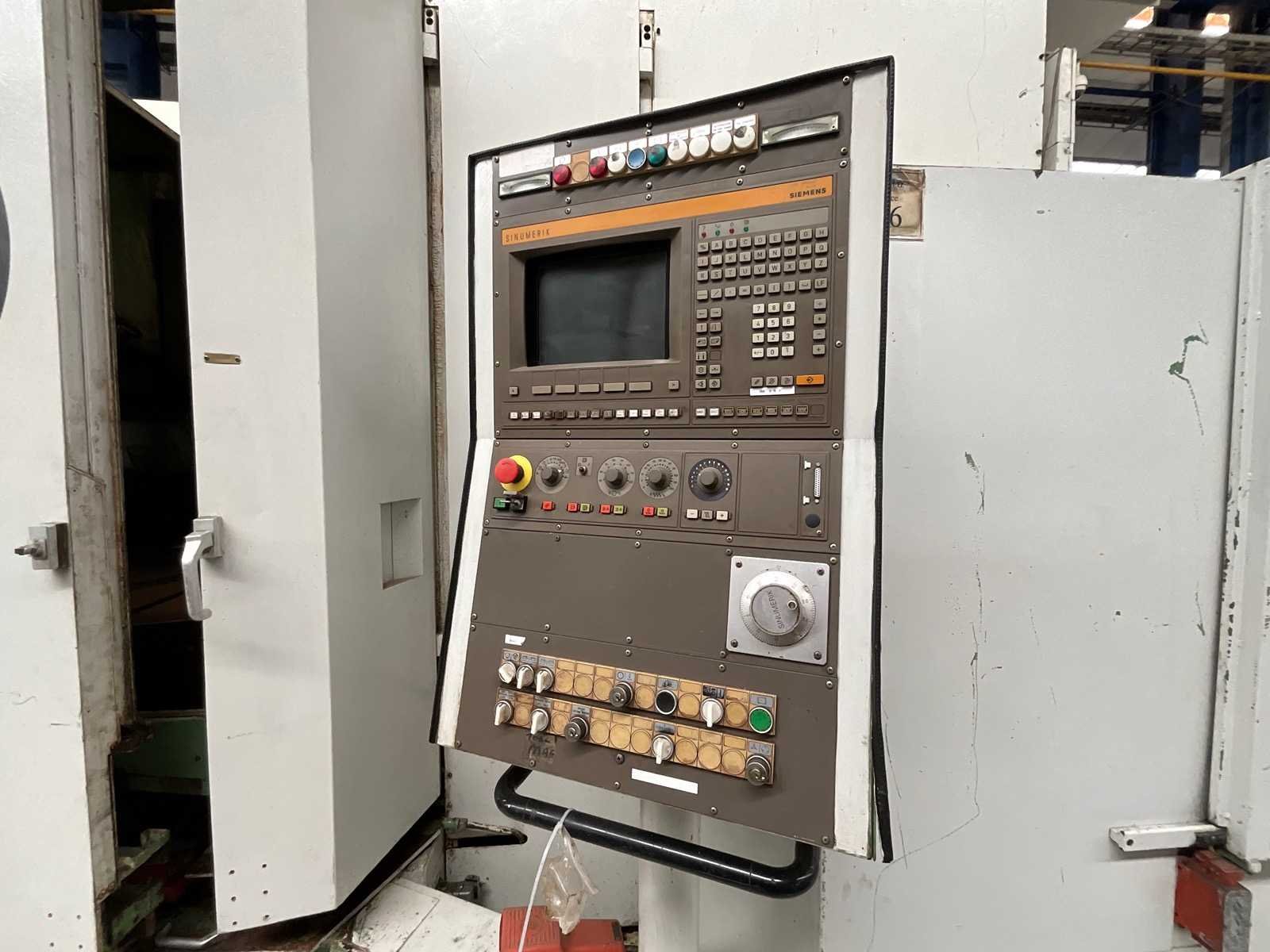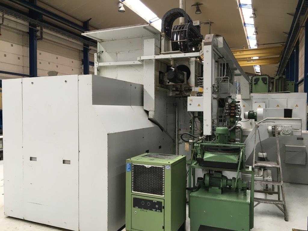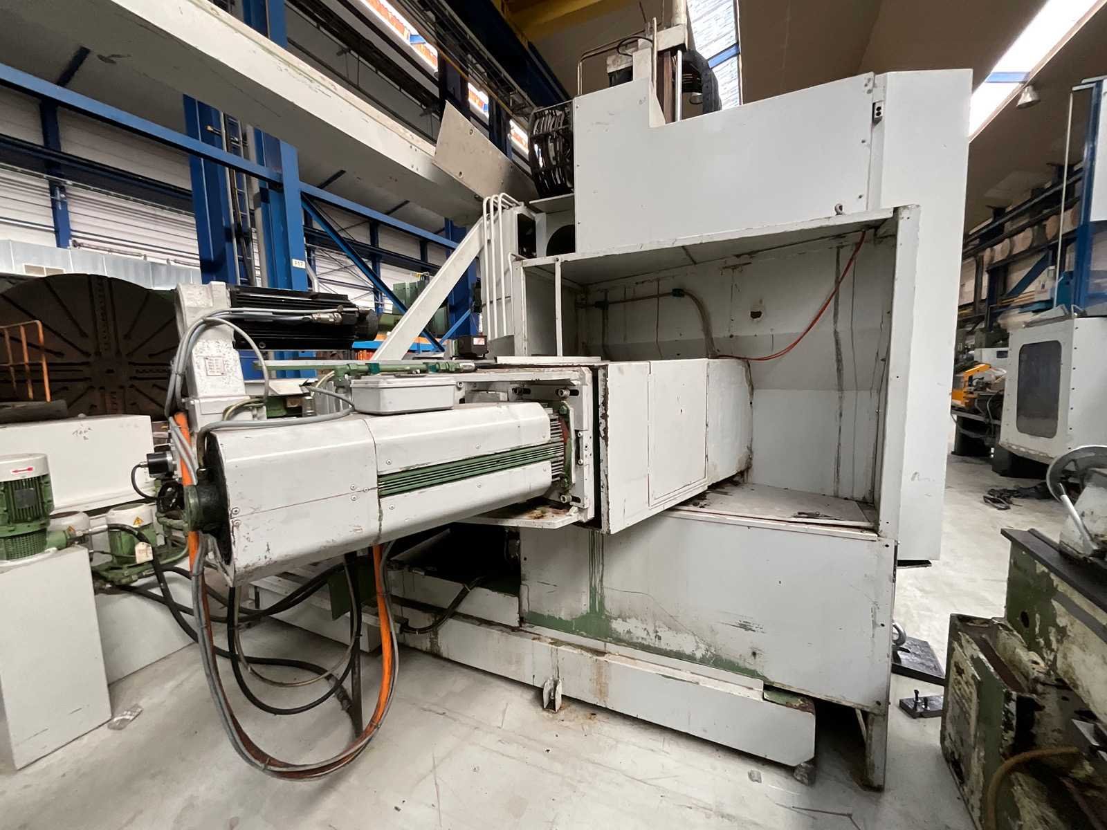 CNC SINGLE COLUMN VERTICAL BORING MILL Inv. No.: 12.769D1 Make PITTLER Model PV1600 Control SIEMENS 880 Year of Manufacture 1995 Max Swing Ø 1600 mm Table diameter 1500 mm Z-Travel 800 mm X-Travel 1600 mm B-axis 360,000 Table speeds 2.8 – 450 rpm Driven tooling speed 0 – 5000 rpm Driven tooling type SK50 Rapids 12 m/min Motor 90 KW Electrics 440V – 3Ph – 50 Cycles Dimensions 9200 x 6900 x 4740 mm Weight of Machine 31500 KG Including: A.T.C., 20 Positions Flood Coolant Through spindle coolant Interlock guards Twin swarf conveyor Nee Merk: PITTLER Type: PV1600 Bouwjaar: 1995 Max. draaihoogte: 800mm Draai: 1600mm Snelheid van n =: 0rpm Snelheid tot n =: 5000rpm Aantal gereedschapwisselstations: 20 Besturing, merk, type: SIEMENS 880 Motorvermogen (kW): 90kW Aansluiting: 440V Machinegewicht: 31500kg Afmeting l: 9200mm Afmeting b: 6900mm Afmeting h: 4740mm GS Code: 84581120 Leveringsvoorwaarden: Geladen op vrachtwagen