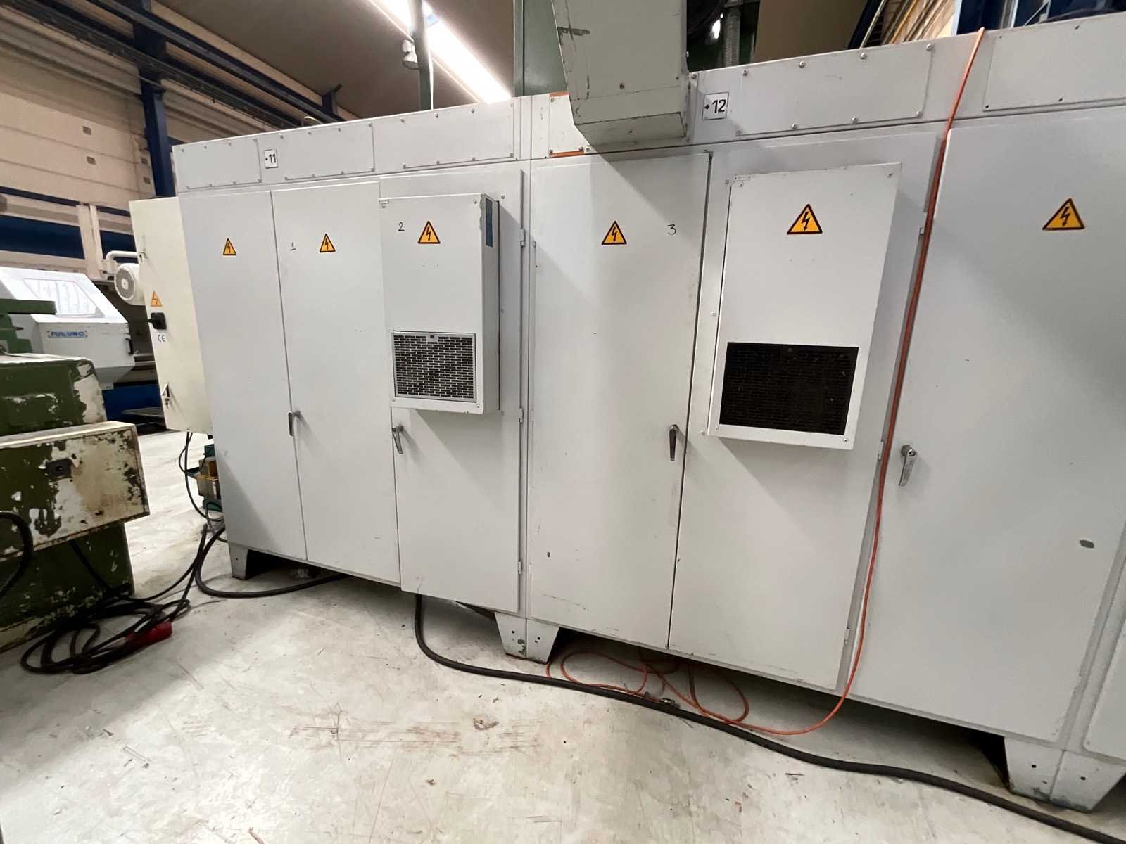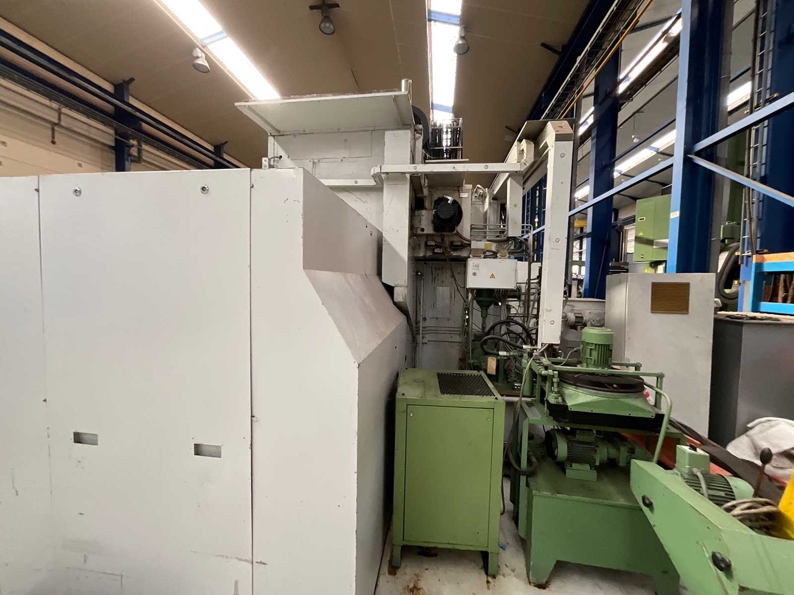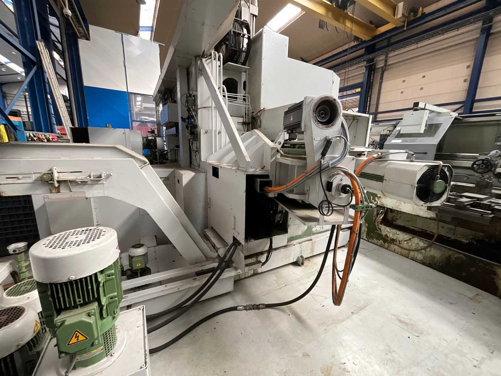 CNC SINGLE COLUMN VERTICAL BORING MILL Inv. No.: 12.769D1 Make PITTLER Model PV1600 Control SIEMENS 880 Year of Manufacture 1995 Max Swing Ø 1600 mm Table diameter 1500 mm Z-Travel 800 mm X-Travel 1600 mm B-axis 360,000 Table speeds 2.8 – 450 rpm Driven tooling speed 0 – 5000 rpm Driven tooling type SK50 Rapids 12 m/min Motor 90 KW Electrics 440V – 3Ph – 50 Cycles Dimensions 9200 x 6900 x 4740 mm Weight of Machine 31500 KG Including: A.T.C., 20 Positions Flood Coolant Through spindle coolant Interlock guards Twin swarf conveyor Nee Merk: PITTLER Type: PV1600 Bouwjaar: 1995 Max. draaihoogte: 800mm Draai: 1600mm Snelheid van n =: 0rpm Snelheid tot n =: 5000rpm Aantal gereedschapwisselstations: 20 Besturing, merk, type: SIEMENS 880 Motorvermogen (kW): 90kW Aansluiting: 440V Machinegewicht: 31500kg Afmeting l: 9200mm Afmeting b: 6900mm Afmeting h: 4740mm GS Code: 84581120 Leveringsvoorwaarden: Geladen op vrachtwagen