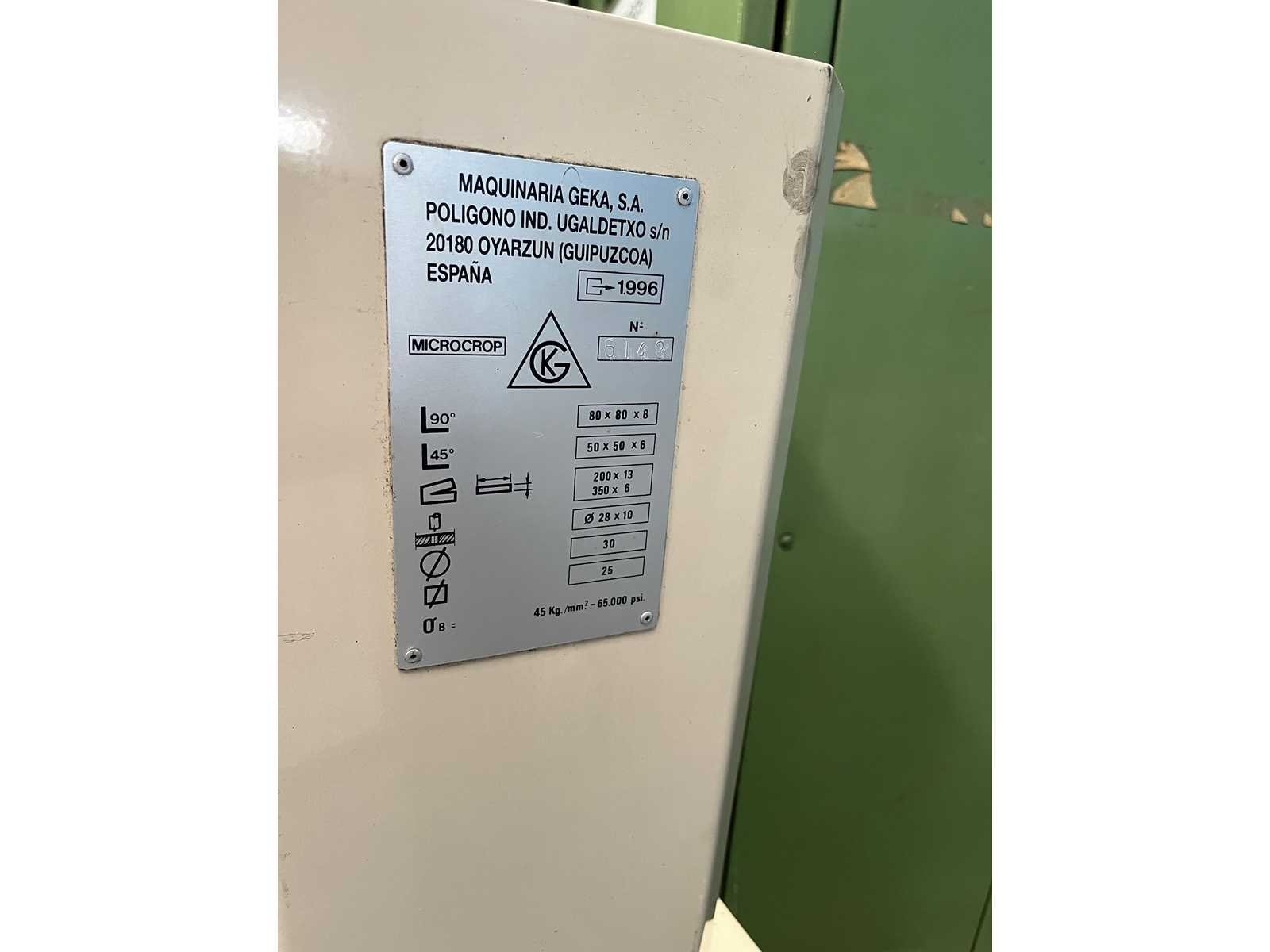 HYDRAULIC PUNCHING PRESS Inv. No. 12.971P1 Make GEKA Model MICROCROP Mach.no. 5148 Hole punching press/ capacity (dia. x thick.) 28 x 10 mm Volts 400 Cycles 50 Cutting of plates 200 x 13 mm 90° profil cut 80 x 80 x 8 mm 45° profil inner wing 50 x 50 x 5 mm Punching Ø 27 x 10 mm Nee Merk: GEKA Type: MICROCROP Serienummer: 5148 Aansluiting: 400V GS Code: 84629190 Leveringsvoorwaarden: Geladen op vrachtwagen