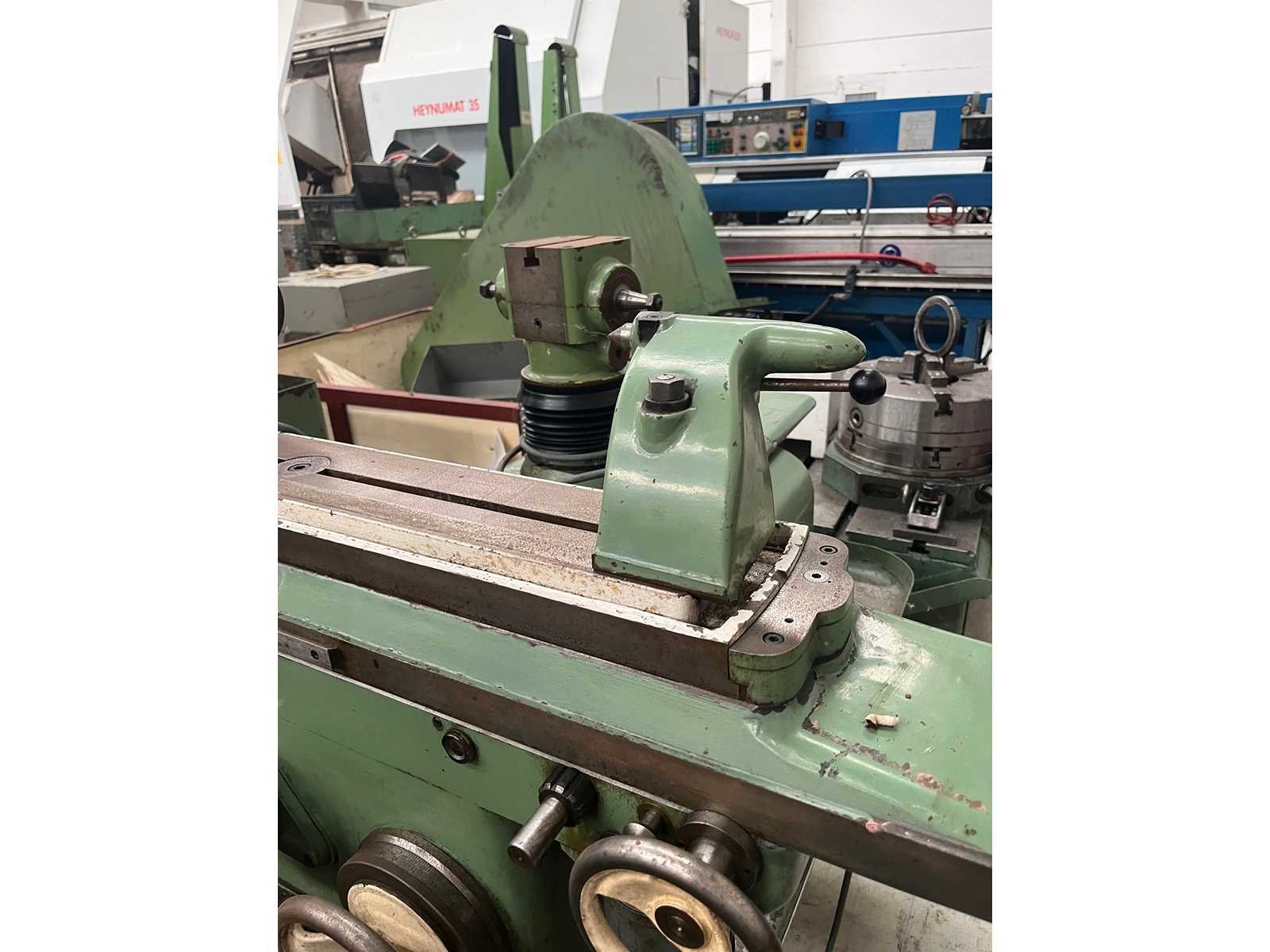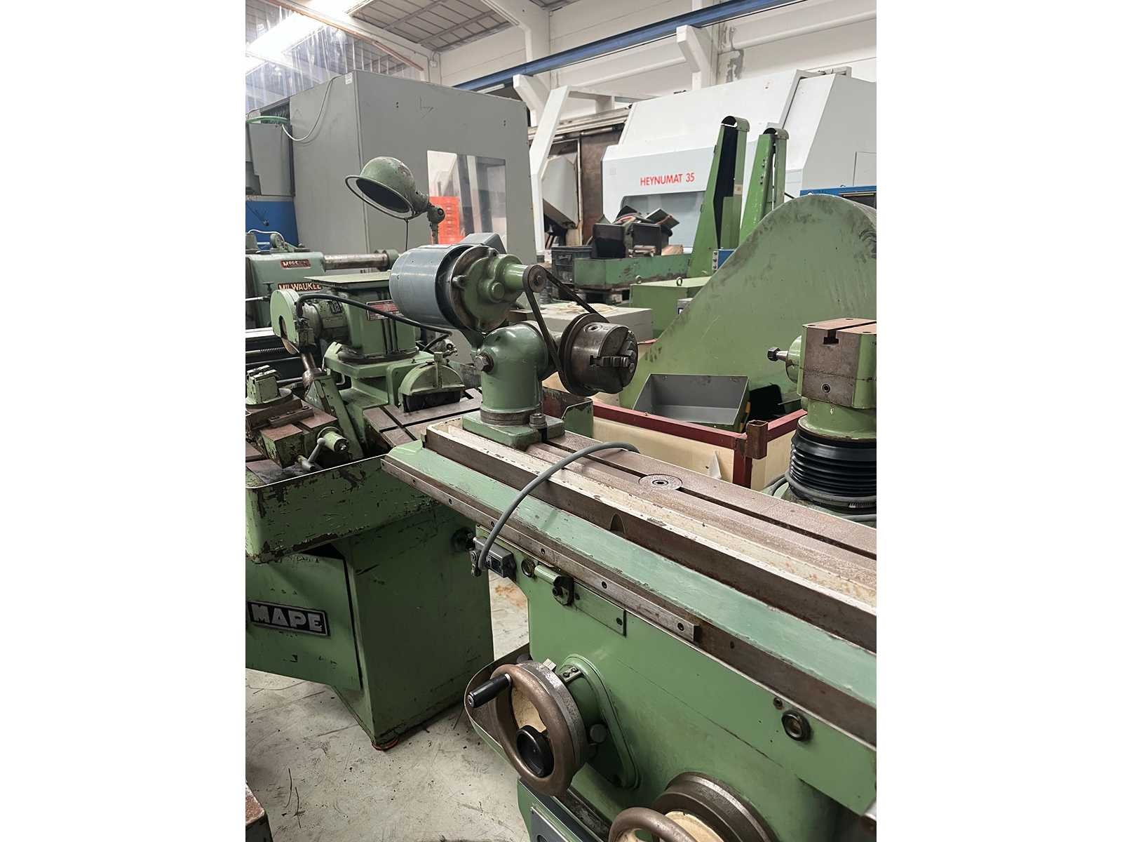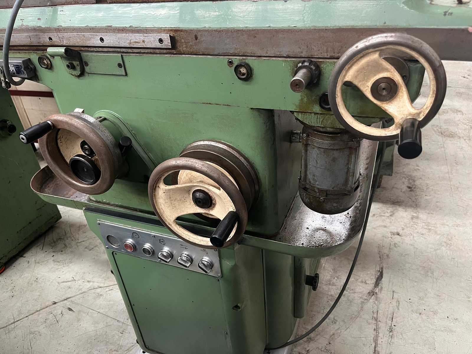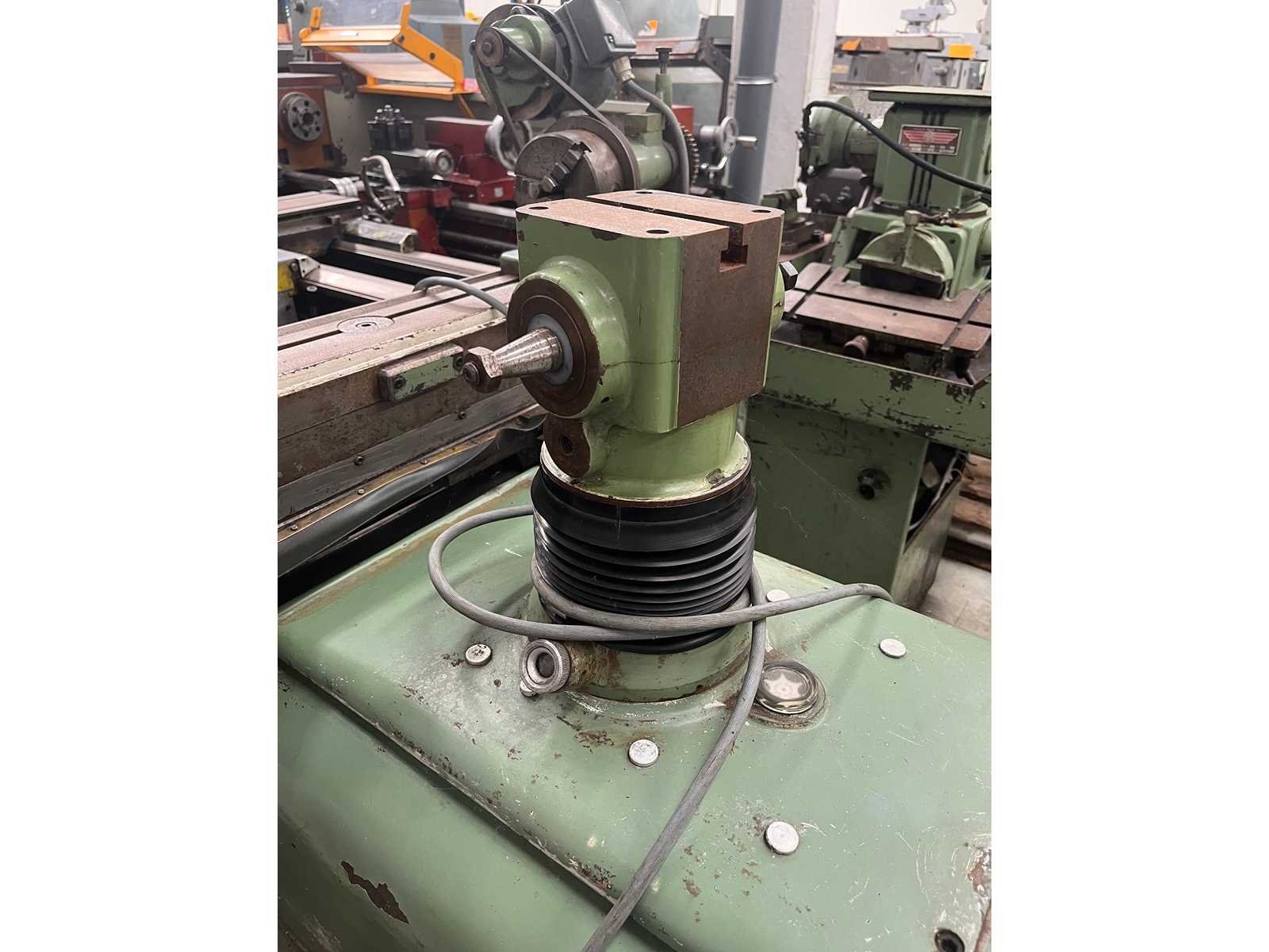 TOOL/CUTTER GRINDING MACHINE Inv. No. 12.993I1 Make PEETERS Model AP Distance between centers 500 mm Height of centers 120 mm Table movement 400 mm 4 spindle speeds 2900 – 5800 RPM Table length 840 mm Table width 140 mm Weigth 890 kg Nee Merk: PEETERS Type: AP Slijpbereik: 500mm Tafel afmeting l: 840mm Tafel afmeting b: 140mm Snelheid van n =: 2900rpm Snelheid tot n =: 5800rpm Machinegewicht: 890kg GS Code: 84603900 Leveringsvoorwaarden: Geladen op vrachtwagen