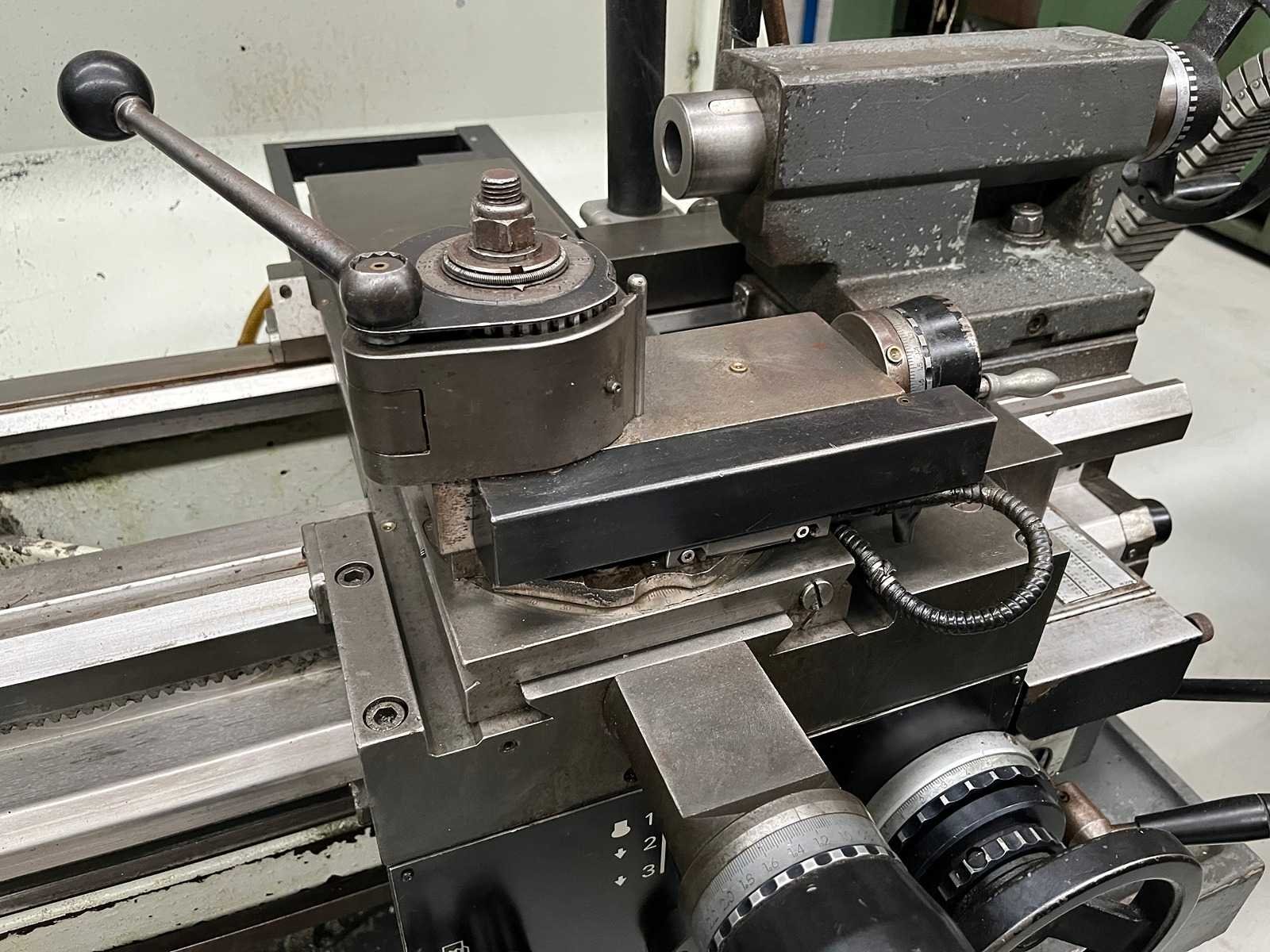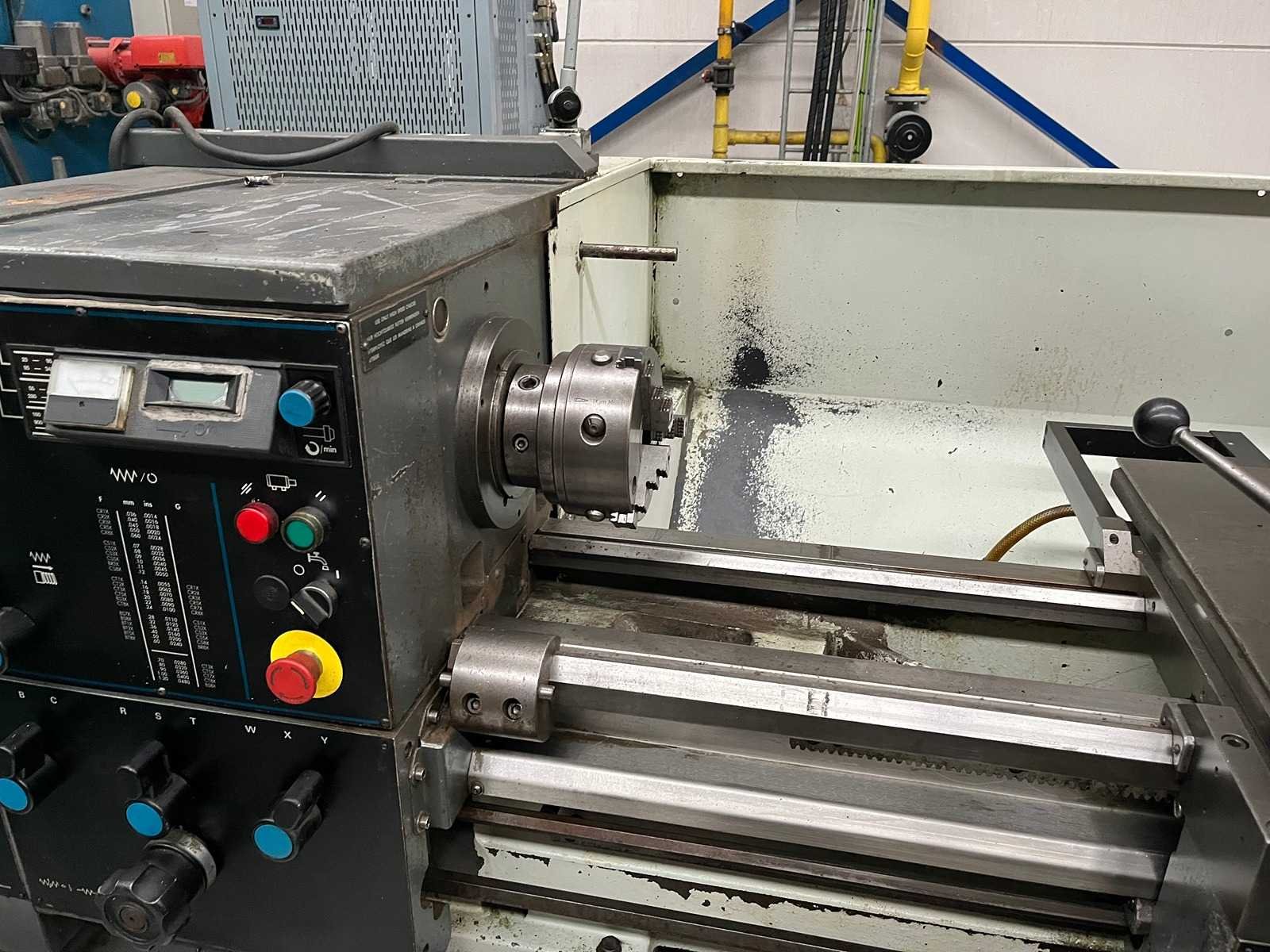 CONVENTIONAL LATHE Inv. No. 13.053C1 Make COLCHESTER Model MASTER 3250 Centre Distance 650 mm Max. Swing over Bed Ø 350 mm Max. Swing over Cross Slide Ø 196 mm Spindle Bore Ø 42 mm R.P.M. 3 ranges 0-340 0-1010 0-3250 kW 7,5 Volts 400 Cycles 50 Including: 3-jaw chuck Rapid toolpost Multifix Emergency stop Threading Coolant system Digital Readout on 3 axes Nee Merk: COLCHESTER Type: MASTER 3250 Draailengte: 650mm Draai: 350mm Holle spil Ø: 42mm Snelheid van n =: 0rpm Snelheid tot n =: 3250rpm Koelmiddelpomp: true Aansluiting: 400V GS Code: 84581900 Leveringsvoorwaarden: Geladen op vrachtwagen