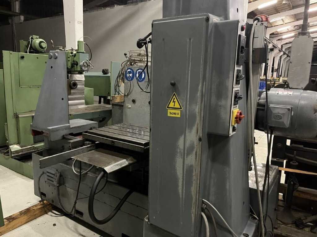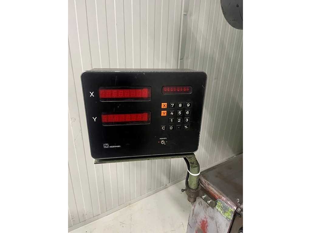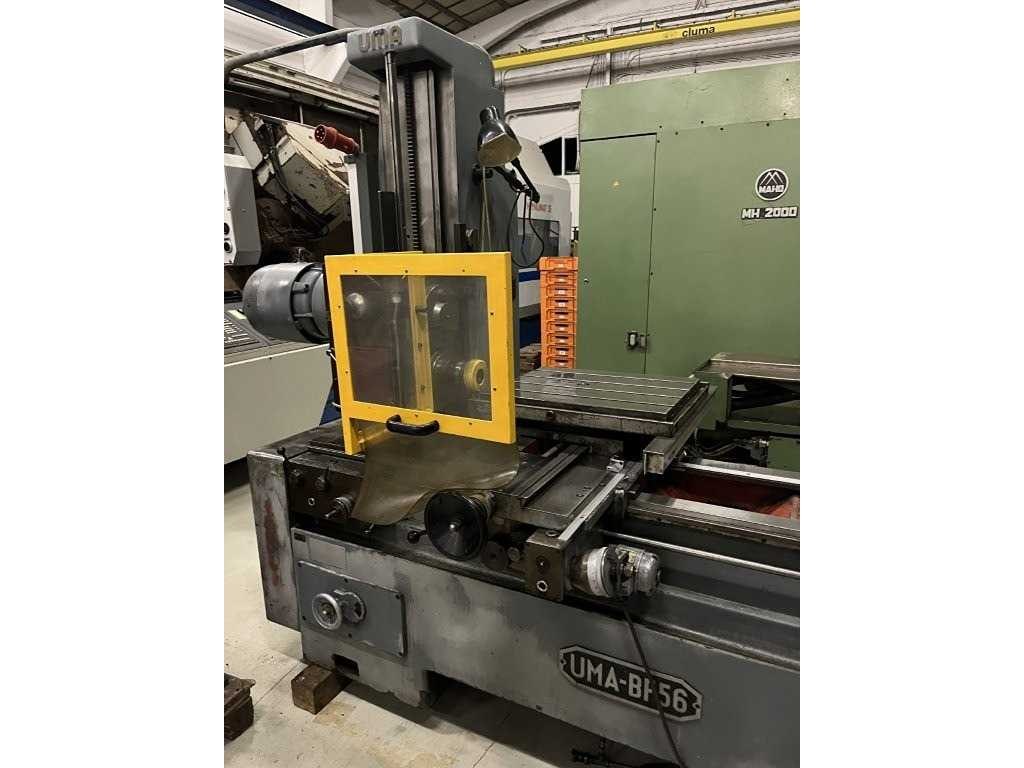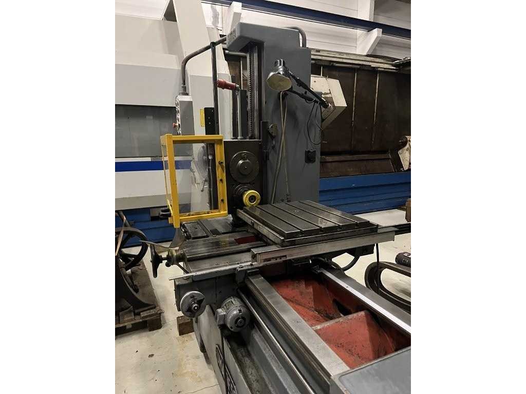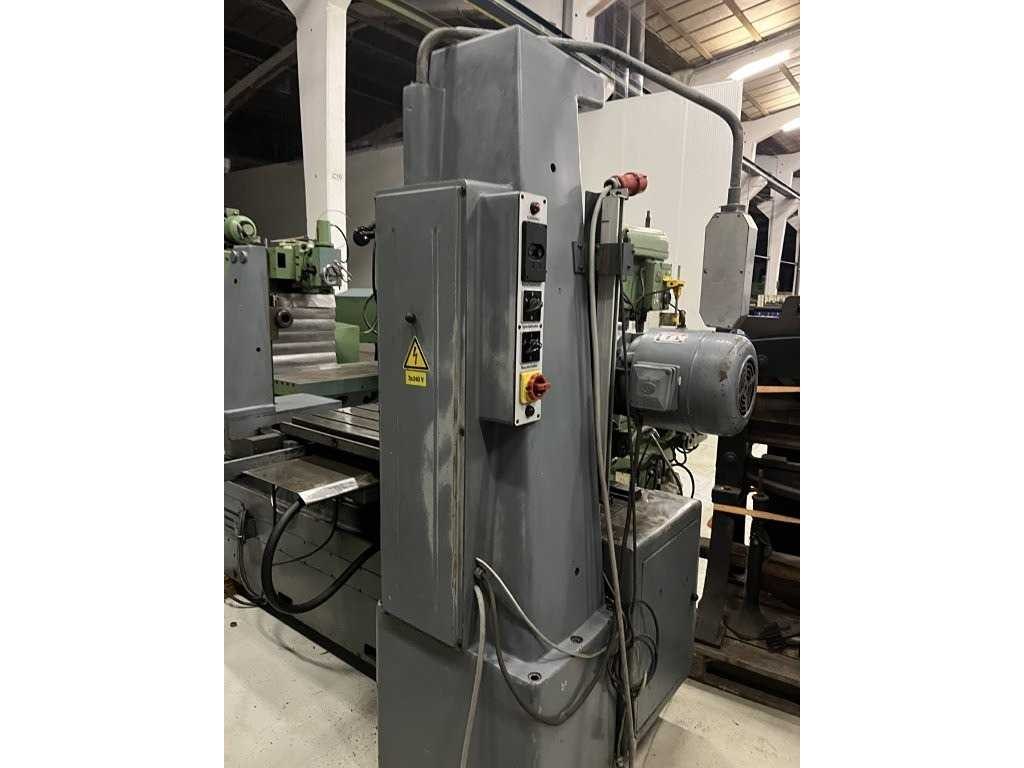 HORIZONTAL BORING MILL (table type) Inv. No. 13.077A1 Make UMA Model BF56 Spindle diameter Ø 75 mm Taper ISO 40 DIN Table 450 x 560 mm Cross travel (X) 550 mm Drilling height over the table 600 mm Drilling range 55 mm Drilling depth 900 mm Rapid feed for table Longitudinal travel 4 m/min Cross travel 2 m/min Weight 2600 KG Including: Induction-hardened table guides Electromagnetic feed coupling Emergency stop button for rapid traverse and electromagnetic feed clutch Protective covers over the bed 1 hardened sleeve for machine vice, 40 mm opening Nee Merk: UMA Type: BF56 Verplaatsing x-as: 550mm Spil Ø: 75 Opname iso: 40 DIN T-gleuf opspantafelafmeting L: 560mm T-gleuf opspantafelafmeting B: 450mm Machinegewicht: 2600kg GS Code: 84589900 Leveringsvoorwaarden: Geladen op vrachtwagen