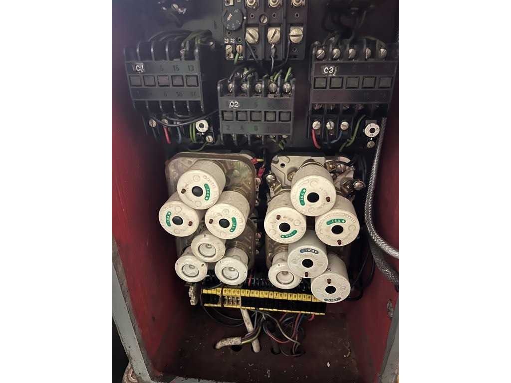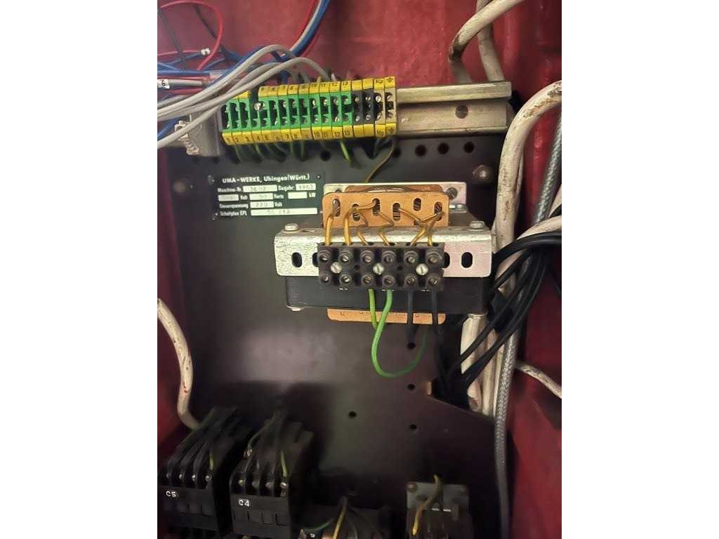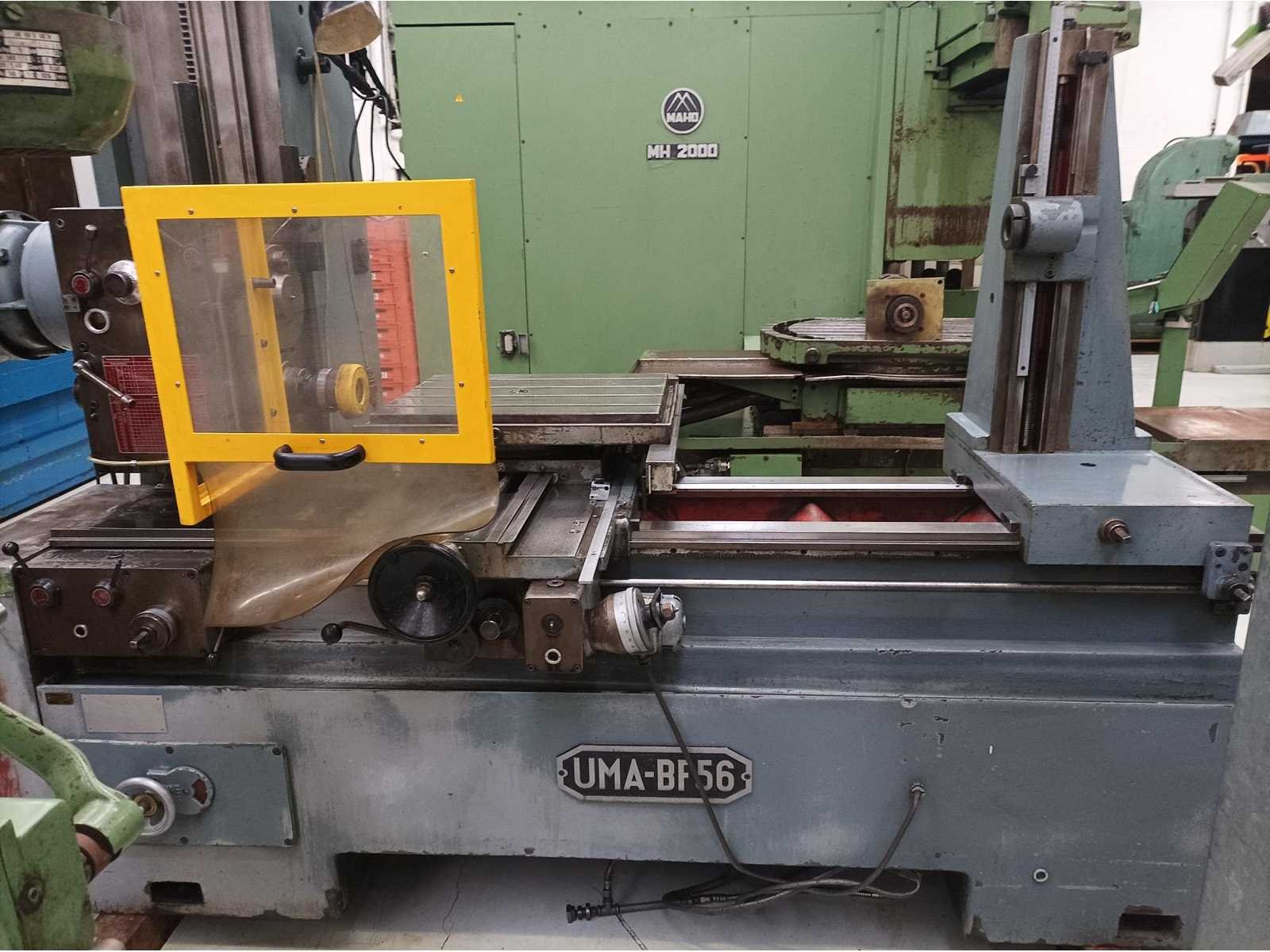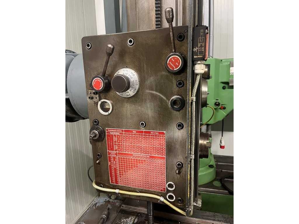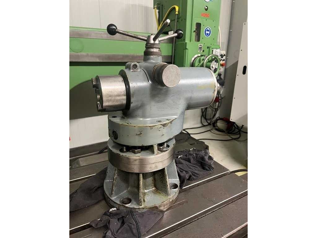 HORIZONTAL BORING MILL (table type) Inv. No. 13.077A1 Make UMA Model BF56 Spindle diameter Ø 75 mm Taper ISO 40 DIN Table 450 x 560 mm Cross travel (X) 550 mm Drilling height over the table 600 mm Drilling range 55 mm Drilling depth 900 mm Rapid feed for table Longitudinal travel 4 m/min Cross travel 2 m/min Weight 2600 KG Including: Induction-hardened table guides Electromagnetic feed coupling Emergency stop button for rapid traverse and electromagnetic feed clutch Protective covers over the bed 1 hardened sleeve for machine vice, 40 mm opening Nee Merk: UMA Type: BF56 Verplaatsing x-as: 550mm Spil Ø: 75 Opname iso: 40 DIN T-gleuf opspantafelafmeting L: 560mm T-gleuf opspantafelafmeting B: 450mm Machinegewicht: 2600kg GS Code: 84589900 Leveringsvoorwaarden: Geladen op vrachtwagen