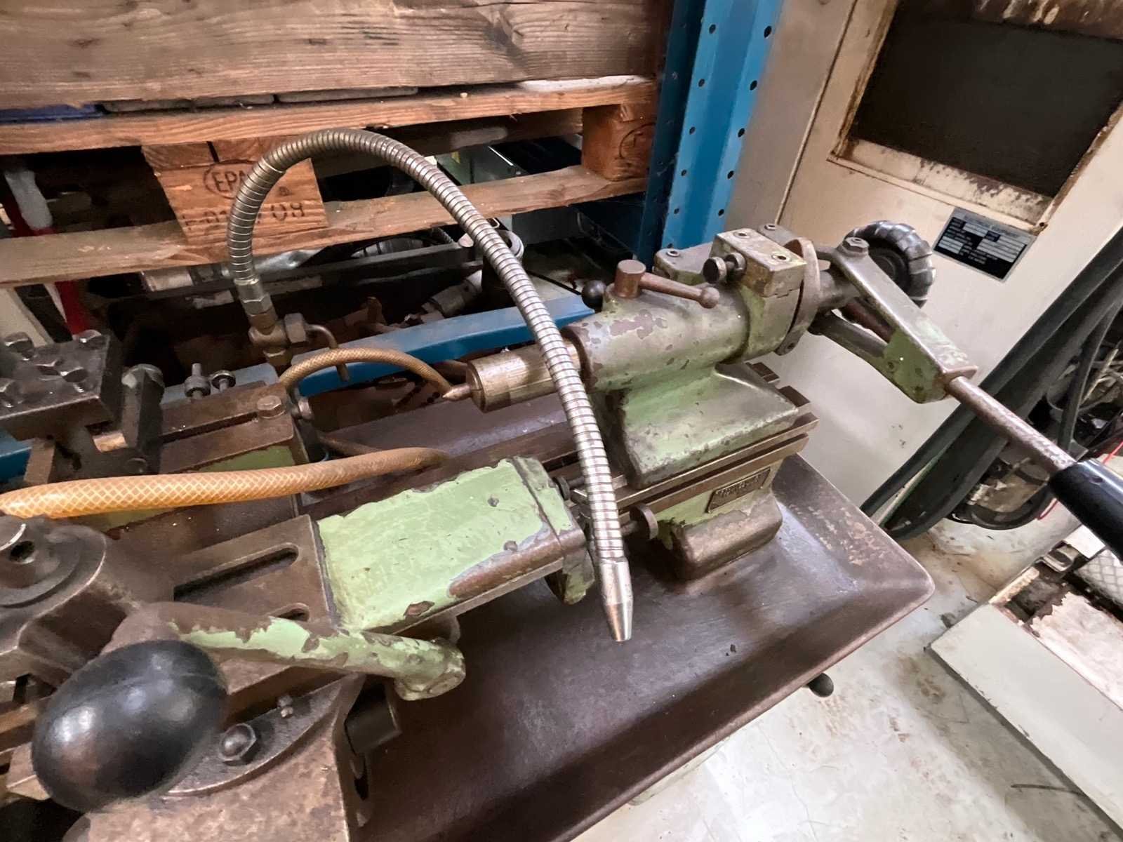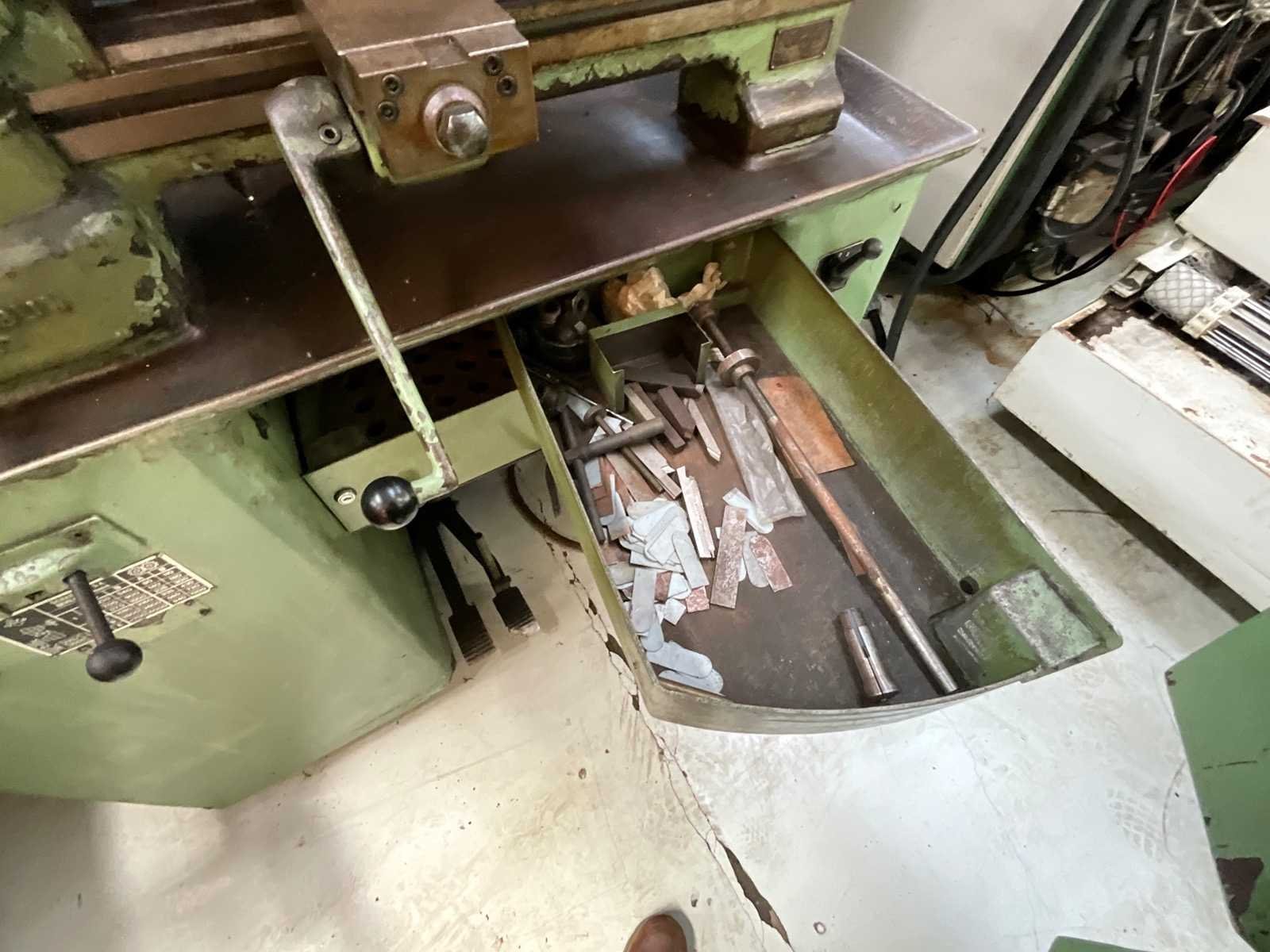 Nee Merk: SCHAUBLIN Type: 102-80 Bouwjaar: 1965 Serienummer: 150746 Draailengte: 300mm Draai: 102mm Holle spil Ø: 22mm Aantal snelheden: 6 Snelheid van n =: 230rpm Snelheid tot n =: 2500rpm Aansluiting: 380V Machinegewicht: 440kg Afmeting l: 1300mm Afmeting b: 800mm Afmeting h: 1400mm GS Code: 84581900 Leveringsvoorwaarden: Geladen op vrachtwagen