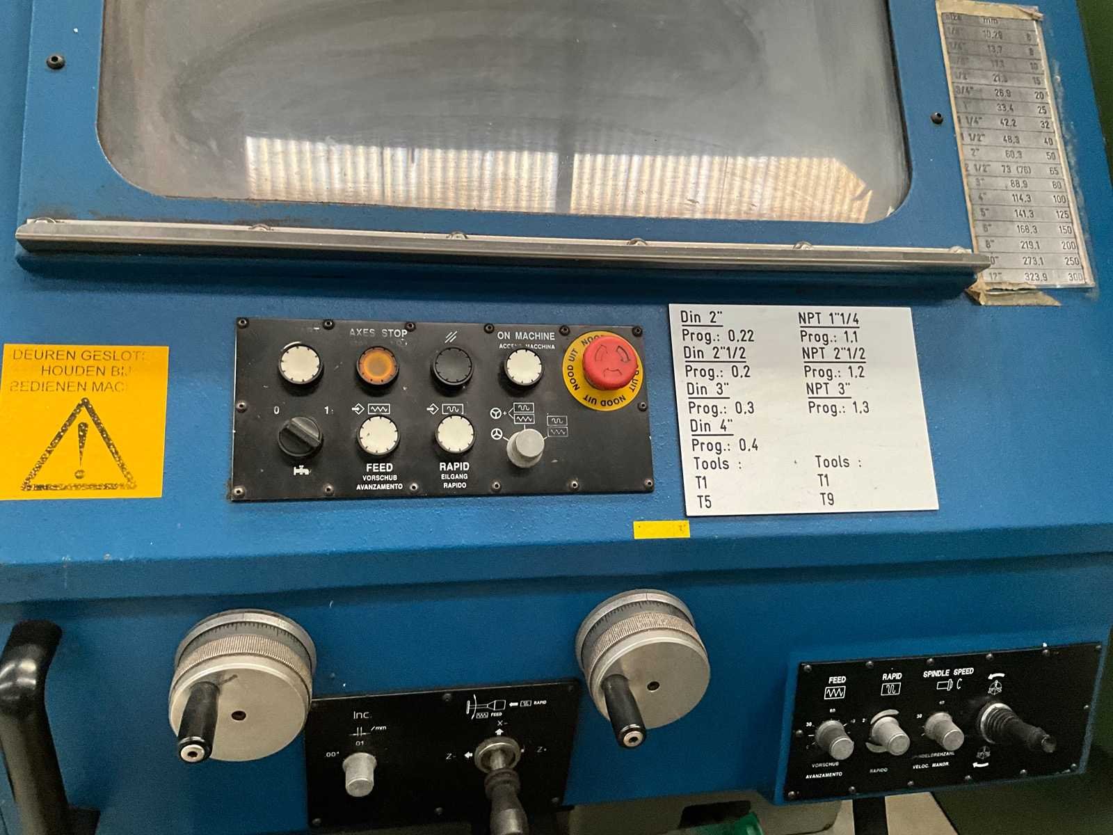 TEACH-IN LATHE Inv. No. 13.051C1 Make CMT URSUS Model URSUS PLUS 250 Year 1996 Serial number 12628 Centre Distance 1.000 mm Max. Swing over Bed Ø 480 mm Max. Swing over Cross slide Ø 400 mm Spindle bore Ø 105 mm 2 ranges stepless 0 – 2.000 kW 8/11 Volt 380 Cycles 50 Including Toolholder Multifix 3-jaw chuck Ø 315 Nee Merk: CMT URSUS Type: URSUS PLUS 250 Bouwjaar: 1996 Serienummer: 12628 Draailengte: 1000mm Draai: 480mm Holle spil Ø: 105mm Aantal snelheden: 2 Snelheid van n =: 0rpm Snelheid tot n =: 2000rpm Motorvermogen (kW): 8/11kW GS Code: 84581120 Leveringsvoorwaarden: Geladen op vrachtwagen