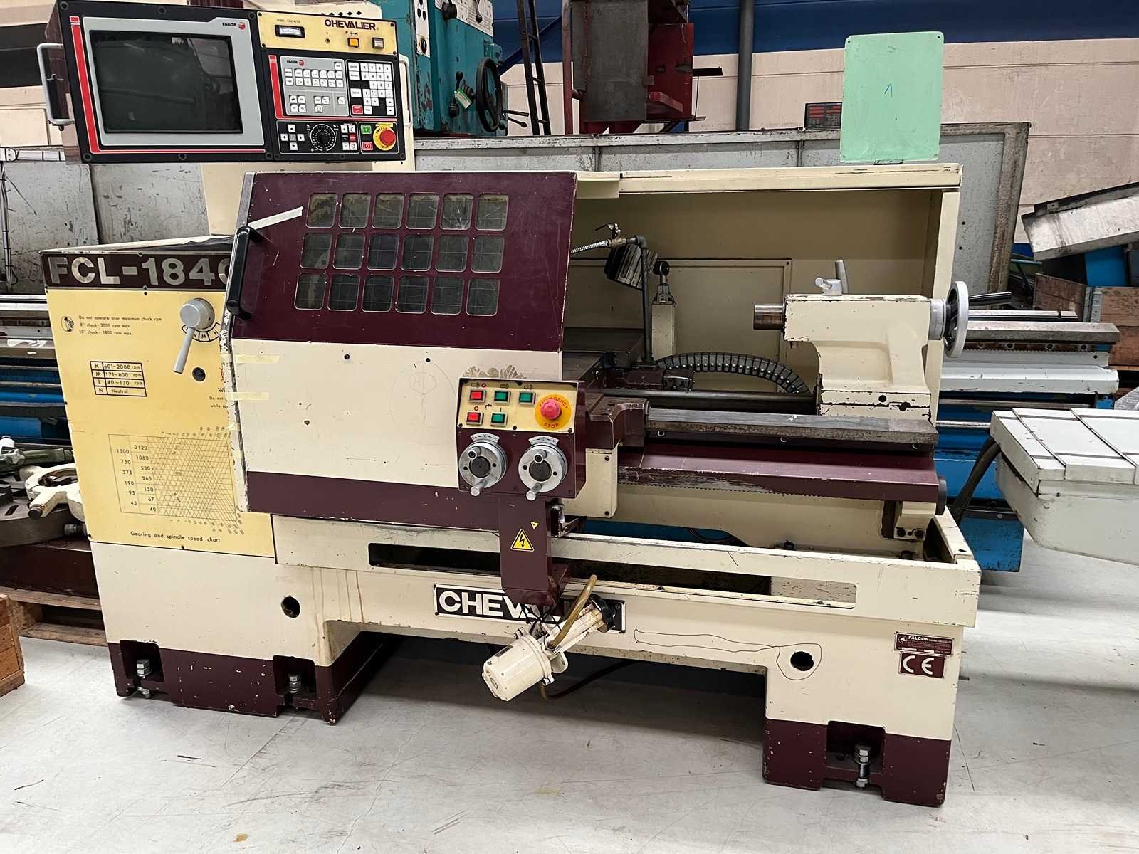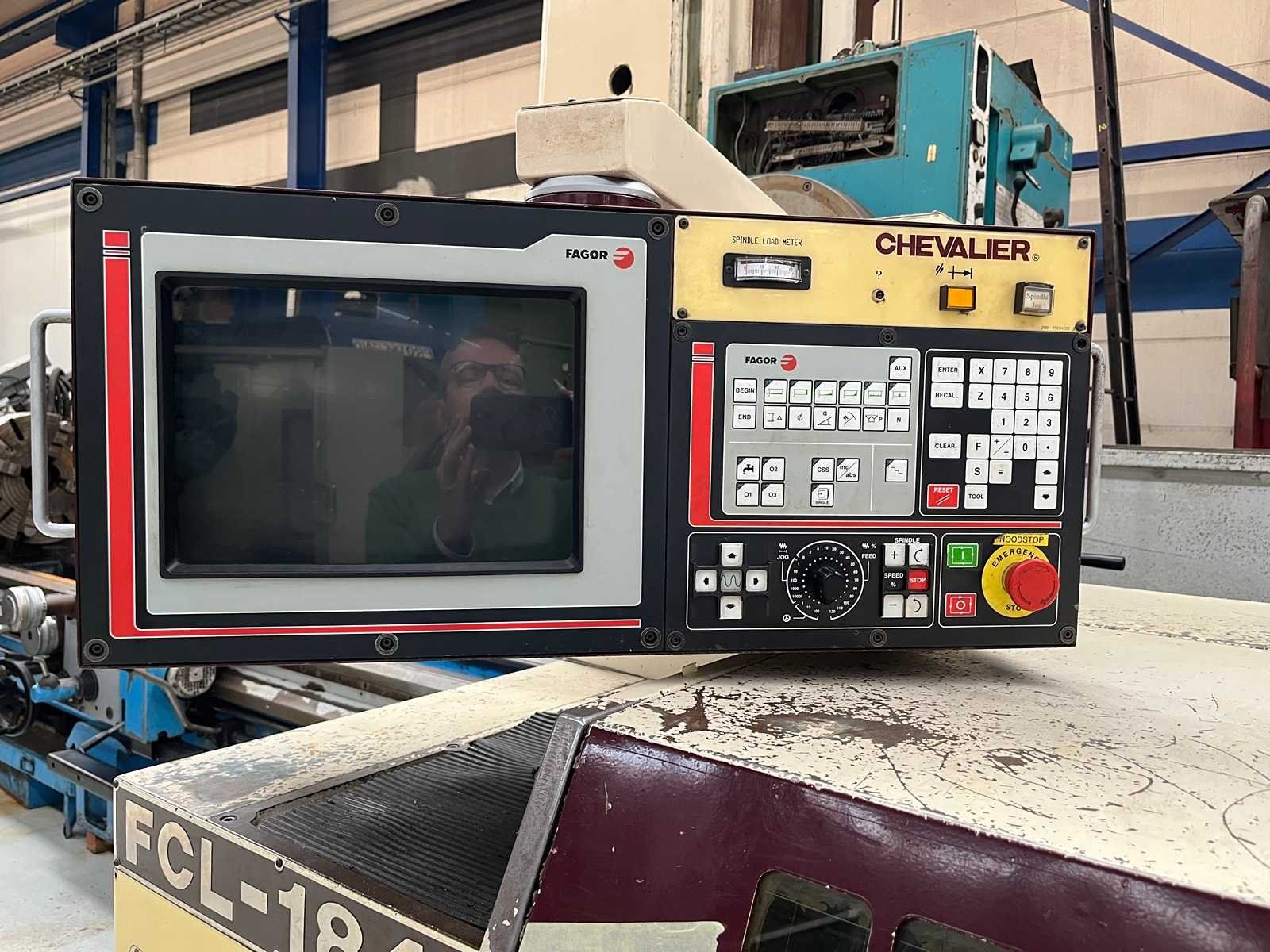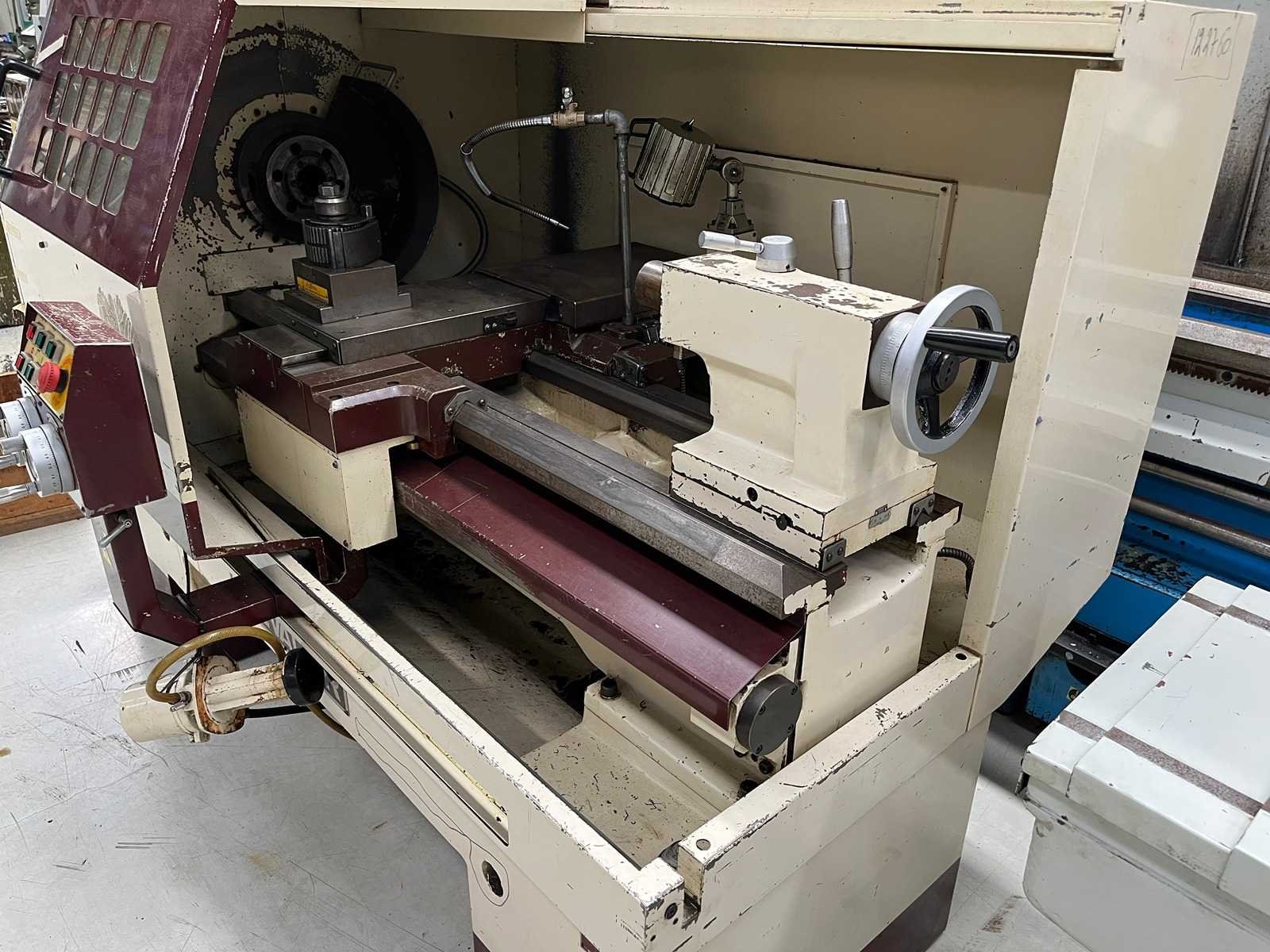 TEACH IN LATHE Inv. No.: 13.110C1C Make CHEVALIER Model FCL1840 Mach. No. X186A005 Control FAGOR 800TGI Centre Distance 1.000 mm Max. Swing over Bed Ø 460 mm Max. Swing over Cross Slide Ø 230 mm Spindle Bore Ø 58 mm R.P.M. 40 – 2.000 HP 7.5 Volts 400 Cycles 50 Including: 1 x Steady Rest Fixed toolpost multifix 3-jaw chuck Nee Merk: CHEVALIER Type: FCL1840 Serienummer: X186A005 Draailengte: 1000mm Draai: 460mm Holle spil Ø: 58mm Snelheid van n =: 40rpm Snelheid tot n =: 2000rpm Besturing, merk, type: FAGOR 800TGI Motorvermogen (kW): 5,5kW GS Code: 84581120 Leveringsvoorwaarden: Gratis op vrachtwagen