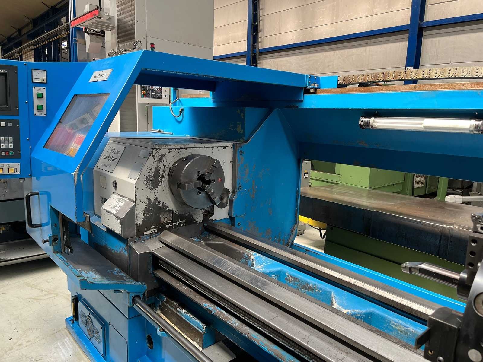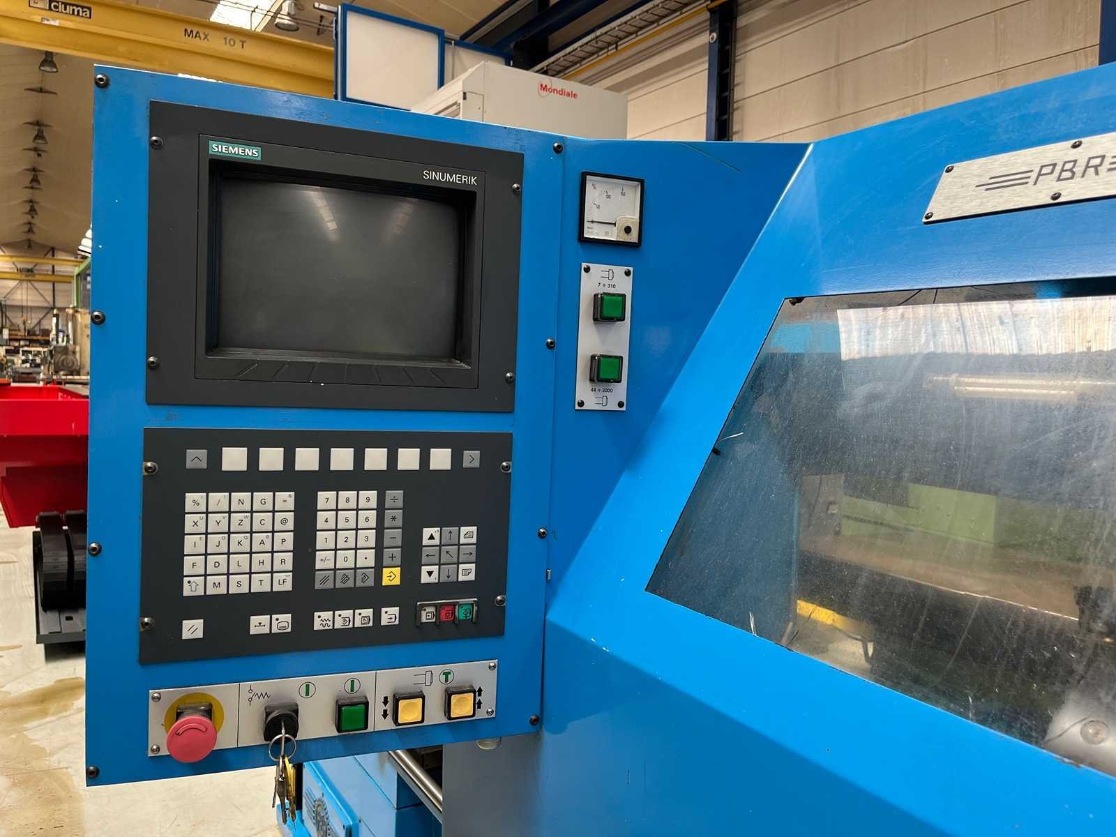 CNC LATHE Inv. No. 13.113C1 Make PBR Model T30 SNC x 1500 Control SIEMENS 805T Year 1996 Centre Distance 1.500 mm Max. Swing over Bed Ø 600 mm Max. Swing over Cross Slide Ø 410 mm Max. Swing in Gap Ø 960 mm Spindle Bore Ø 105 mm R.P.M. 47 – 2.000 (in 2 ranges) kW 15/22 Volts 400 Cycles 50 Including: Automatic Turret, 8 positions Enclosed guarding Coolant Nee Merk: PBR Type: T30 SNC x 1500 Bouwjaar: 1996 Draailengte: 1500mm Draai: 600mm Holle spil Ø: 105mm Aantal snelheden: 2 Snelheid van n =: 47rpm Snelheid tot n =: 2000rpm Aantal gereedschapwisselstations: 8 Koelmiddelpomp: true Besturing, merk, type: SIEMENS 805T Motorvermogen (kW): 15/22kW GS Code: 84581120 Leveringsvoorwaarden: Geladen op vrachtwagen