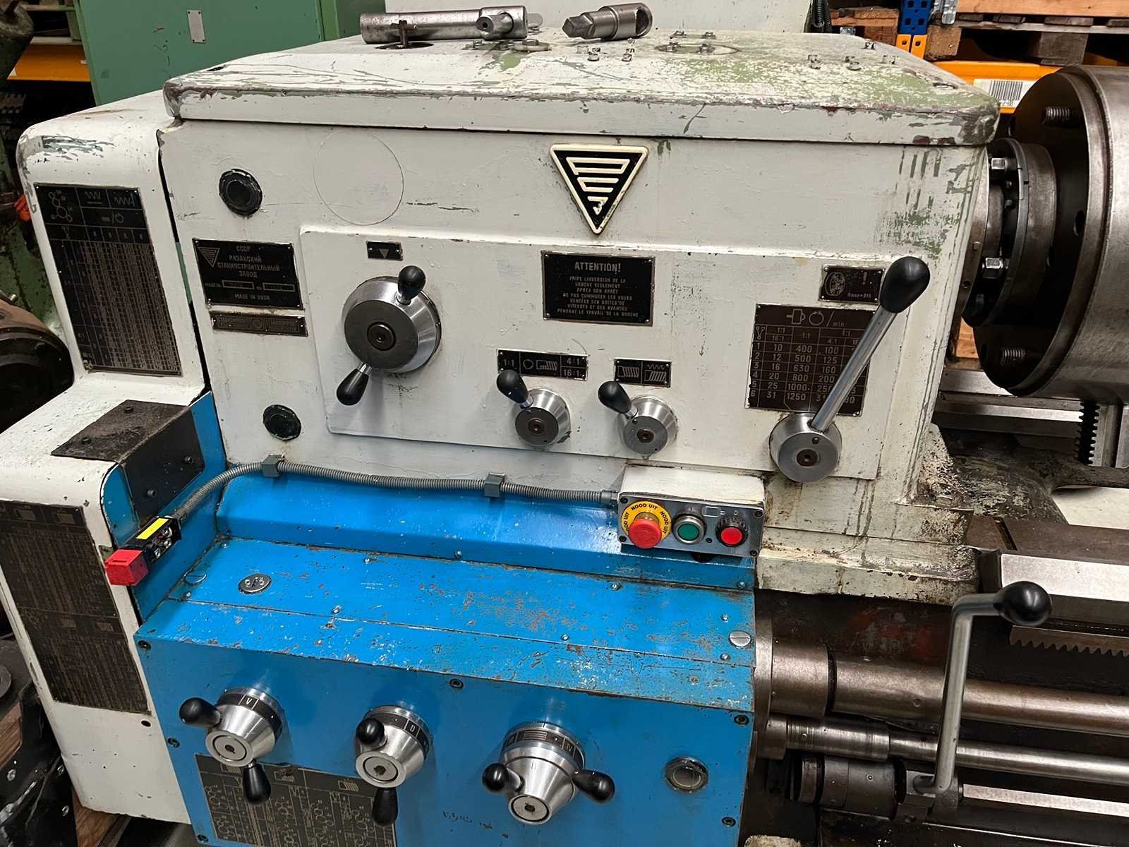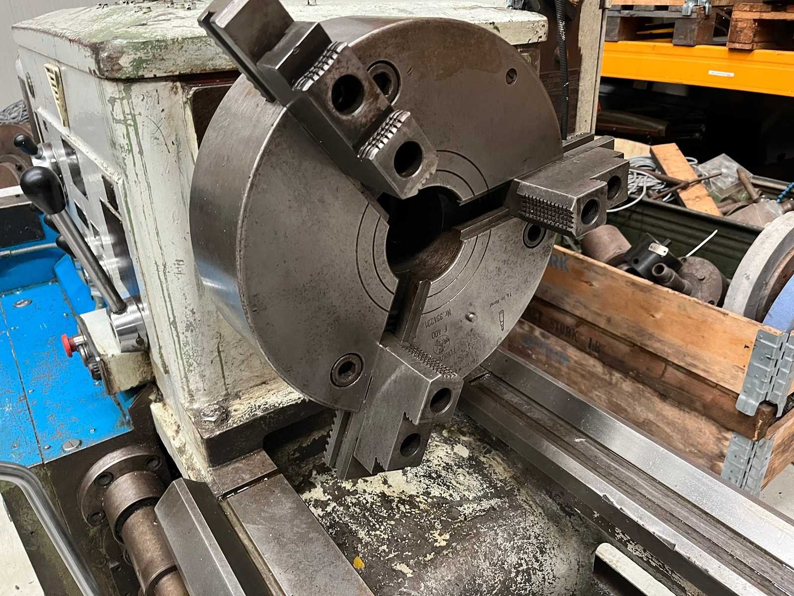 CONVENTIONAL LATHE Inv. No. 13.114C1 Make STANKO Model 1M635 Center distance 3.000 mm Max. swing over bed Ø 700 mm Max. swing over cross slide Ø 380 mm Spindle bore Ø 76 mm R.P.M. 10-1250 (16x) kW 15 Volts 380 Cycles 50 Including: 3-jaw chuck Nee Merk: STANKO Type: 1M635 Draailengte: 3000mm Draai: 700mm Holle spil Ø: 76mm Snelheid van n =: 10rpm Snelheid tot n =: 1250rpm Aansluiting: 380V GS Code: 84581900 Leveringsvoorwaarden: Geladen op vrachtwagen