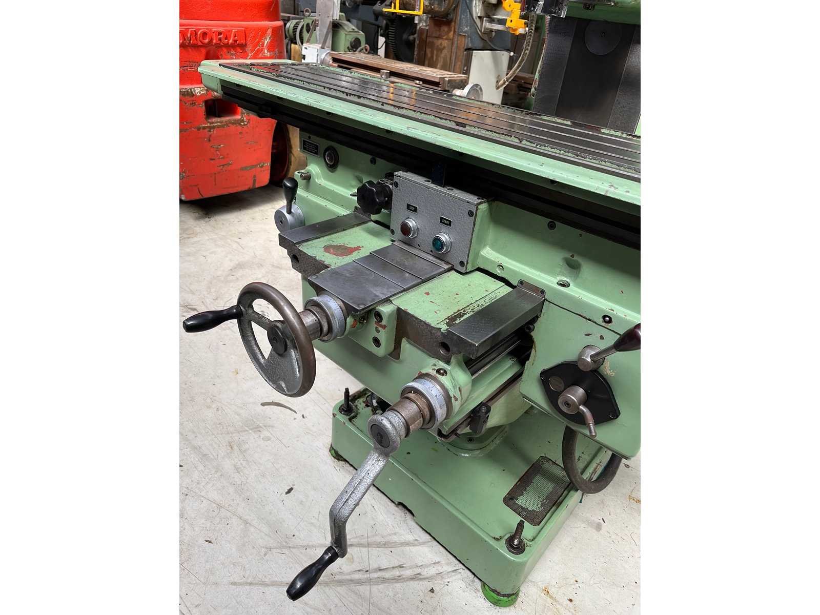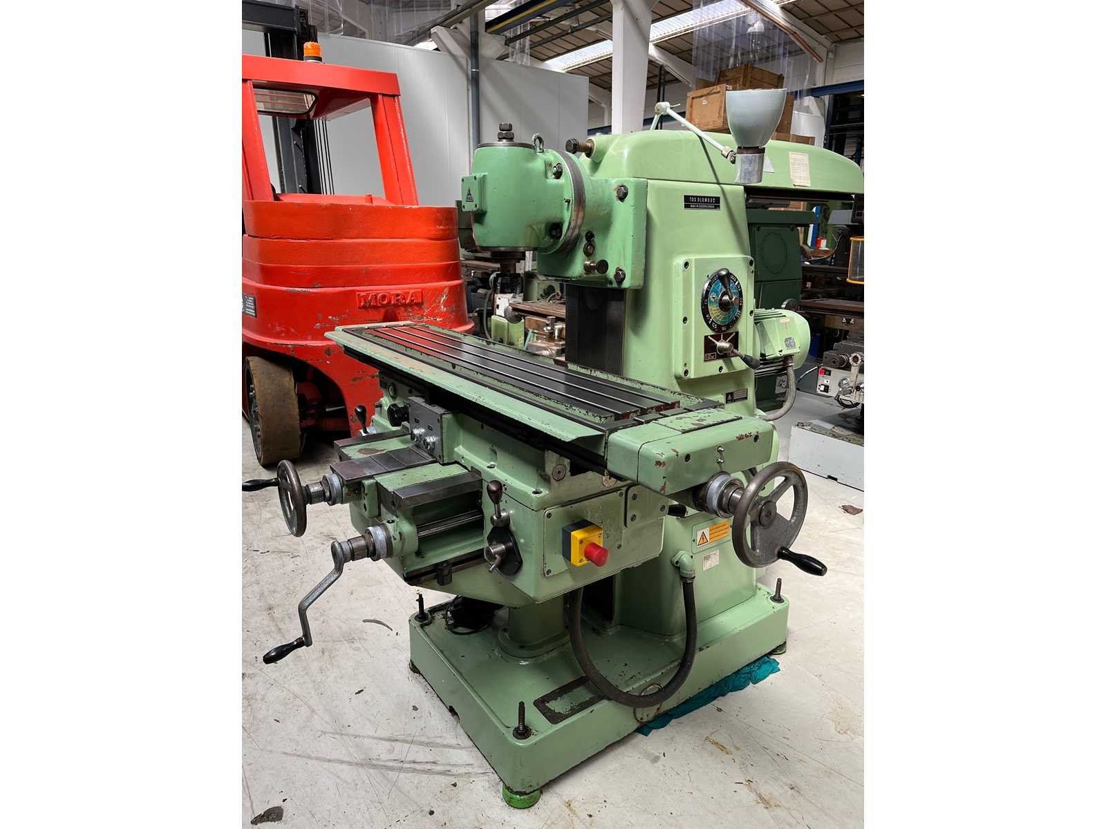 UNIVERSAL MILLING MACHINE Inv. No. 13.147J1 Make TOS Model FA3AH Mach. No. 1854 Table 300 x 1.375 mm Longitudinal Travel (X) 890 mm Cross Travel (Y) 275 mm Vertical Travel (Z) 400 mm Taper ISO 40 R.P.M. 45 – 2.000 kW 4 Volts 400 Cycles 50 Including Coolant attachment Emergency stop Nee Merk: TOS Type: FA3AH Serienummer: 1854 Verplaatsing x-as: 890mm Verplaatsing y-as: 275mm Verplaatsing z-as: 400mm Opname iso: 40 Snelheid van n =: 45rpm Snelheid tot n =: 2000rpm T-gleuf opspantafelafmeting L: 1375mm T-gleuf opspantafelafmeting B: 300mm Koelmiddelpomp: true Motorvermogen (kW): 4kW Aansluiting: 400V GS Code: 84596910 Leveringsvoorwaarden: Geladen op vrachtwagen