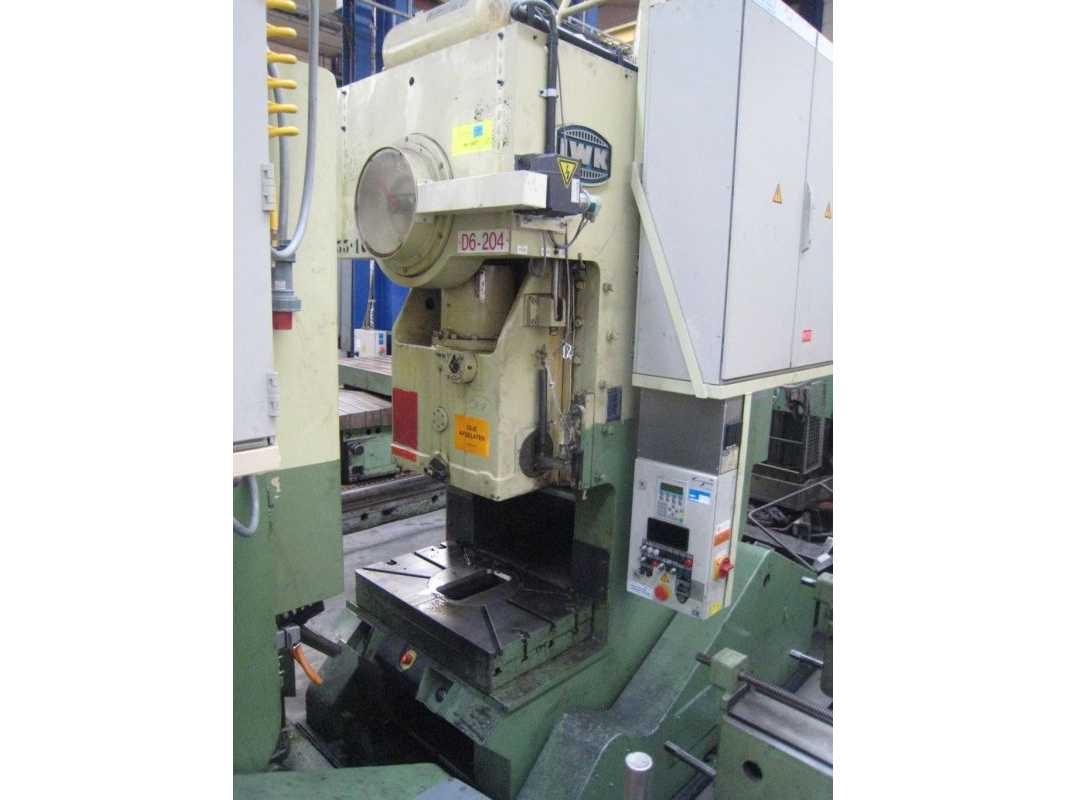 SINGLE POINT OPEN BACK INCLINABLE POWER PRESS Inv. No. 11.420PC Make IWK Model PEKRON 150Z Machine No. 1501 Capacity 150 ton Ram stroke 200 mm Ram adjustment 100 mm Shut height min/max 370 / 570 mm Strokes per minute 40 Knock out in ram 0 – 70 mm RPM 10 - 815 Throat 290 mm Power inclinable 30 degrees, 4kW Table 1000 x 630 mm Ram 760 x 410 mm Kw 12 Volts 230 / 400 Cycles 50 Hz Including: Bolster plate 1.000 x 630 x 80 mm Bolster plate 1.000 x 630 x 90 mm Table opening, diameter 440 mm Updated electrics 2004 CE certified Nee Merk: IWK Type: PEKRON 150Z Serienummer: 1501 Capaciteit.: 150t Slag: 200mm Tafel afmeting l: 1000mm Tafel afmeting b: 630mm Motorvermogen (kW): 12kW Aansluiting: 84629190V