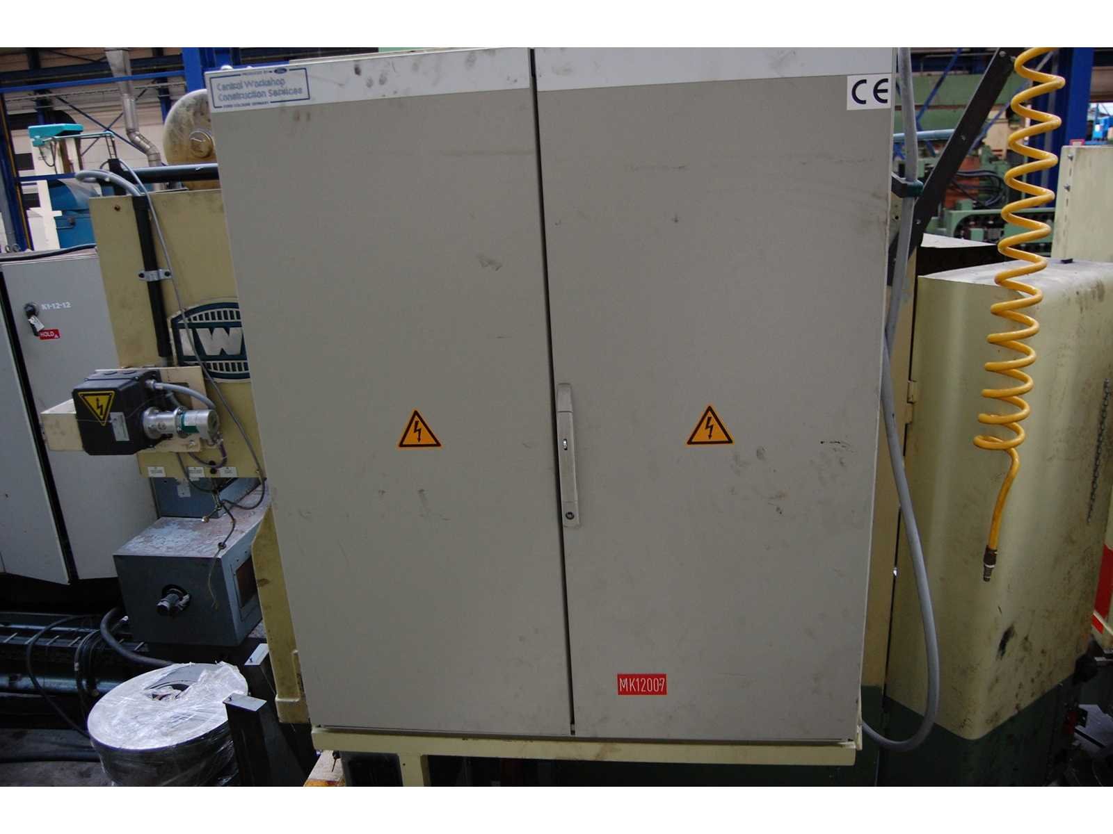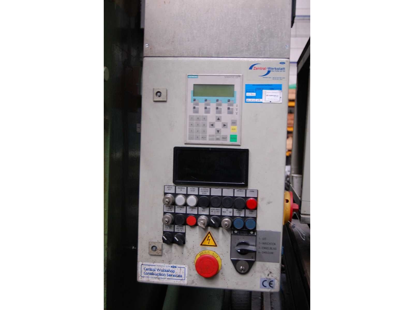 SINGLE POINT OPEN BACK INCLINABLE POWER PRESS Inv. No. 11.421PC Make IWK Model PEKRON 150Z Machine No. 1512 Capacity 150 ton Ram stroke 200 mm Ram adjustment 100 mm Shut height min/max 370 / 570 mm Strokes per minute 40 Knock out in ram 0 – 70 mm RPM 10 - 815 Throat 290 mm Power inclinable 30 degrees, 4kW Table 1000 x 630 mm Ram 760 x 410 mm Kw 12 Volts 230 / 400 Cycles 50 Hz Including: Bolster plate 1.000 x 630 x 80 mm Bolster plate 1.000 x 630 x 90 mm Table opening, diameter 440 mm Updated electrics 2004 CE certified Nee Merk: IWK Type: PEKRON 150Z Serienummer: 1512 Capaciteit.: 150t Slag: 200mm Tafel afmeting l: 1000mm Tafel afmeting b: 630mm Motorvermogen (kW): 12kW GS Code: 84629190