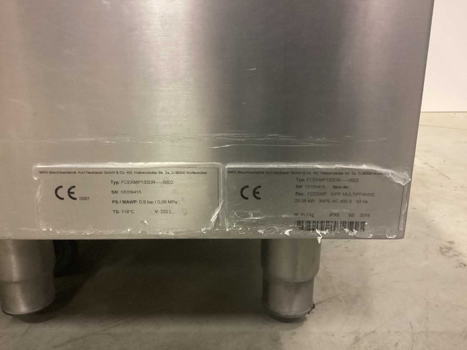 Na te kijken, te herstellen. No Merk: MKN Type: FCEKMP133DR-0002 Model: Flexichef 222L Bouwjaar: 2018 Serienummer: 18209415 Kantelbaar: true Elektrisch verwarmd: true Totale afmeting L: 1800mm Totale afmeting Breedte: 1000mm Totale afmeting Hoogte: 1000mm