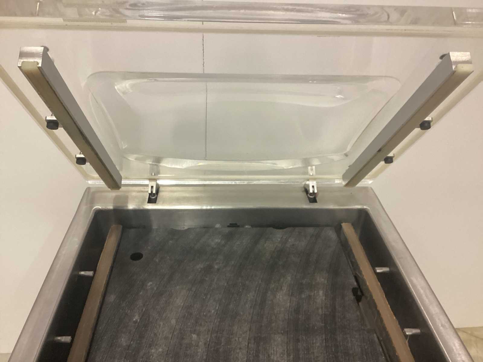 Na te kijken / werking onbekend No Merk: Fresh Vac met sensor Type: FR1720 Lengte sealbalk: 430mm Aantal sealbalken: 2 Kamer afmeting l: 440mm Kamer afmeting b: 450mm Kamer afmeting h: 180mm Aantal kamers: 1 Verrijdbaar: true Aansluiting: 400V Totale afmeting L: 650mm Totale afmeting Breedte: 650mm Totale afmeting Hoogte: 1000mm