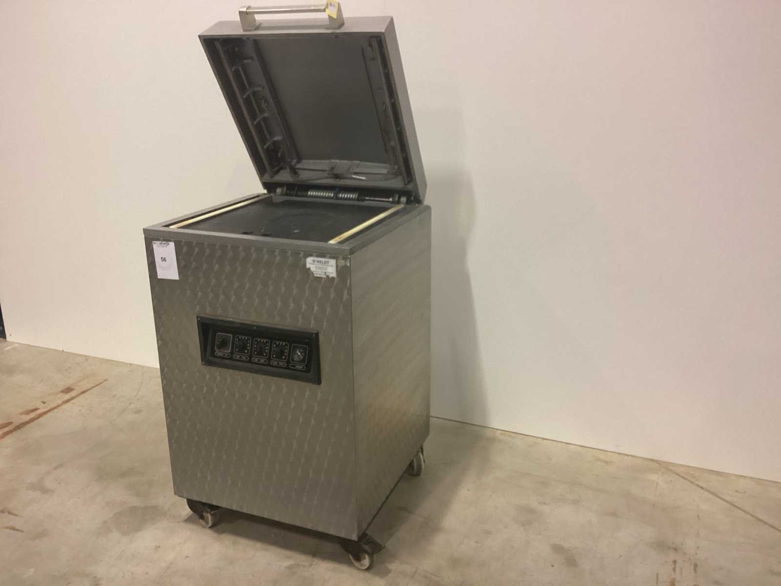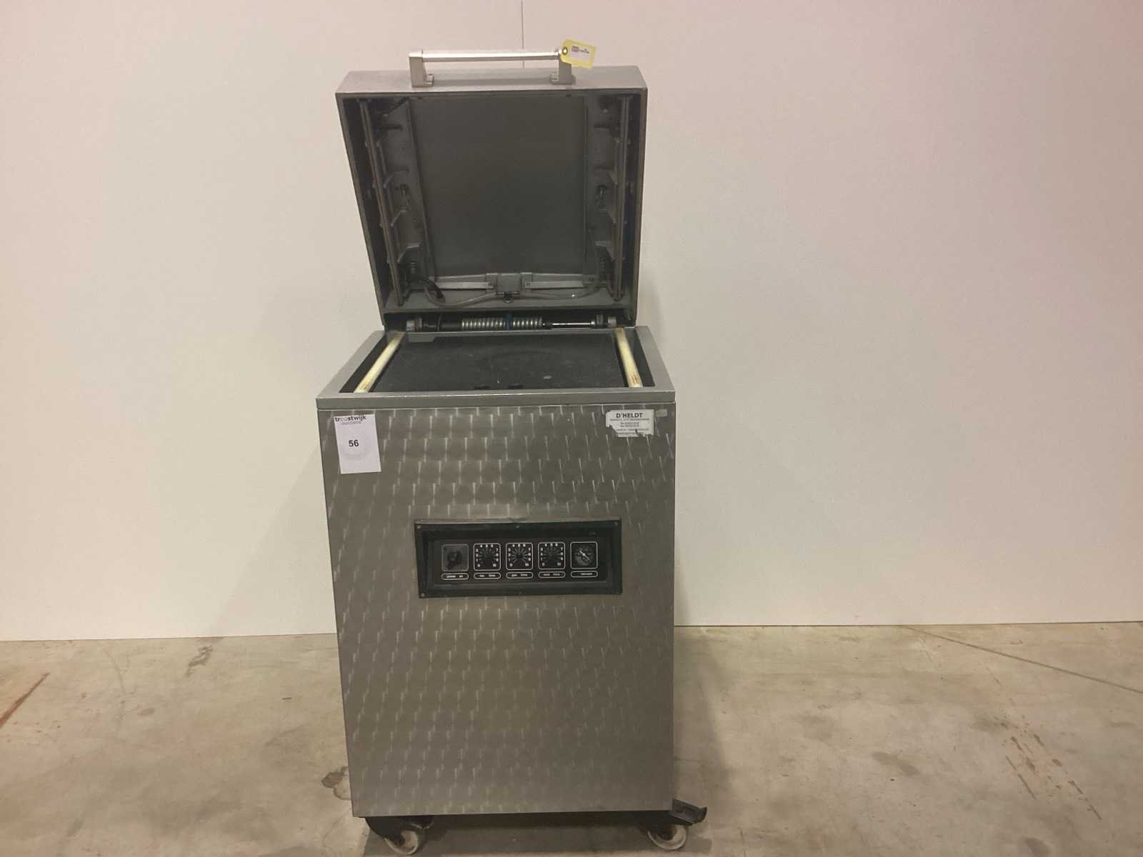 Na te kijken/ werking onbekend No Merk: Turbovac Type: SB500 Serienummer: 8885750 Lengte sealbalk: 500mm Aantal sealbalken: 2 Kamer afmeting l: 500mm Kamer afmeting b: 550mm Kamer afmeting h: 180mm Aantal kamers: 1 Verrijdbaar: true Aansluiting: 400V Totale afmeting L: 650mm Totale afmeting Breedte: 650mm Totale afmeting Hoogte: 1100mm