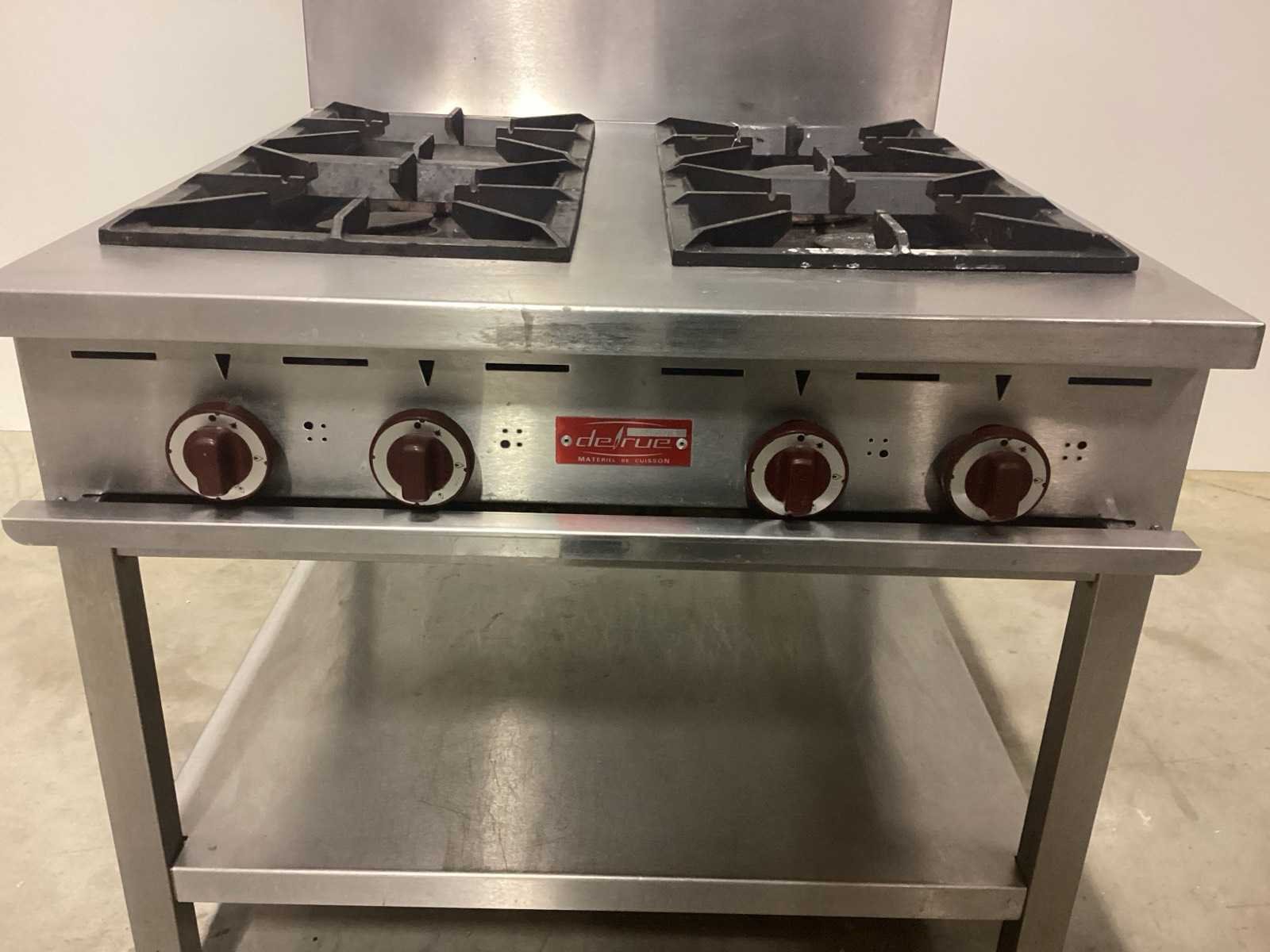 Na te kijken / werking onbekend No Merk: DELRUE Model: 4pits gas Lengte: 93cm Breedte: 80cm Hoogte: 120cm