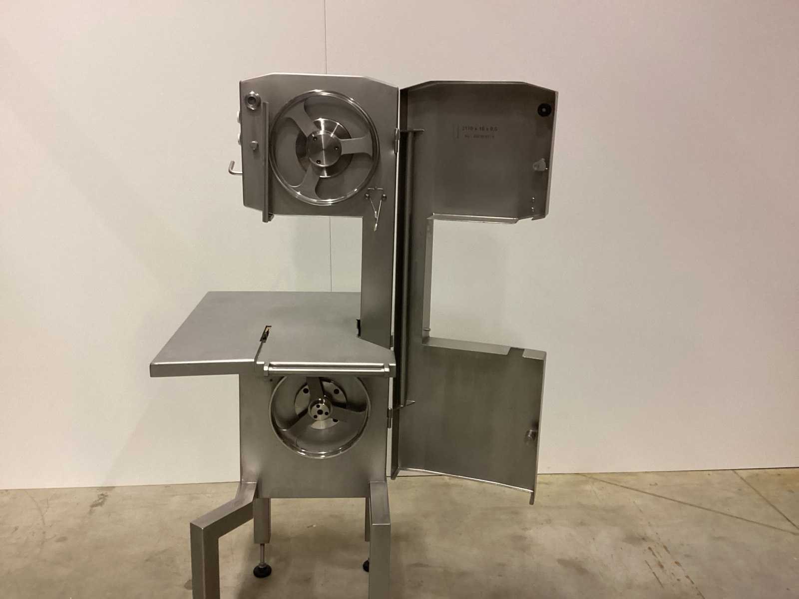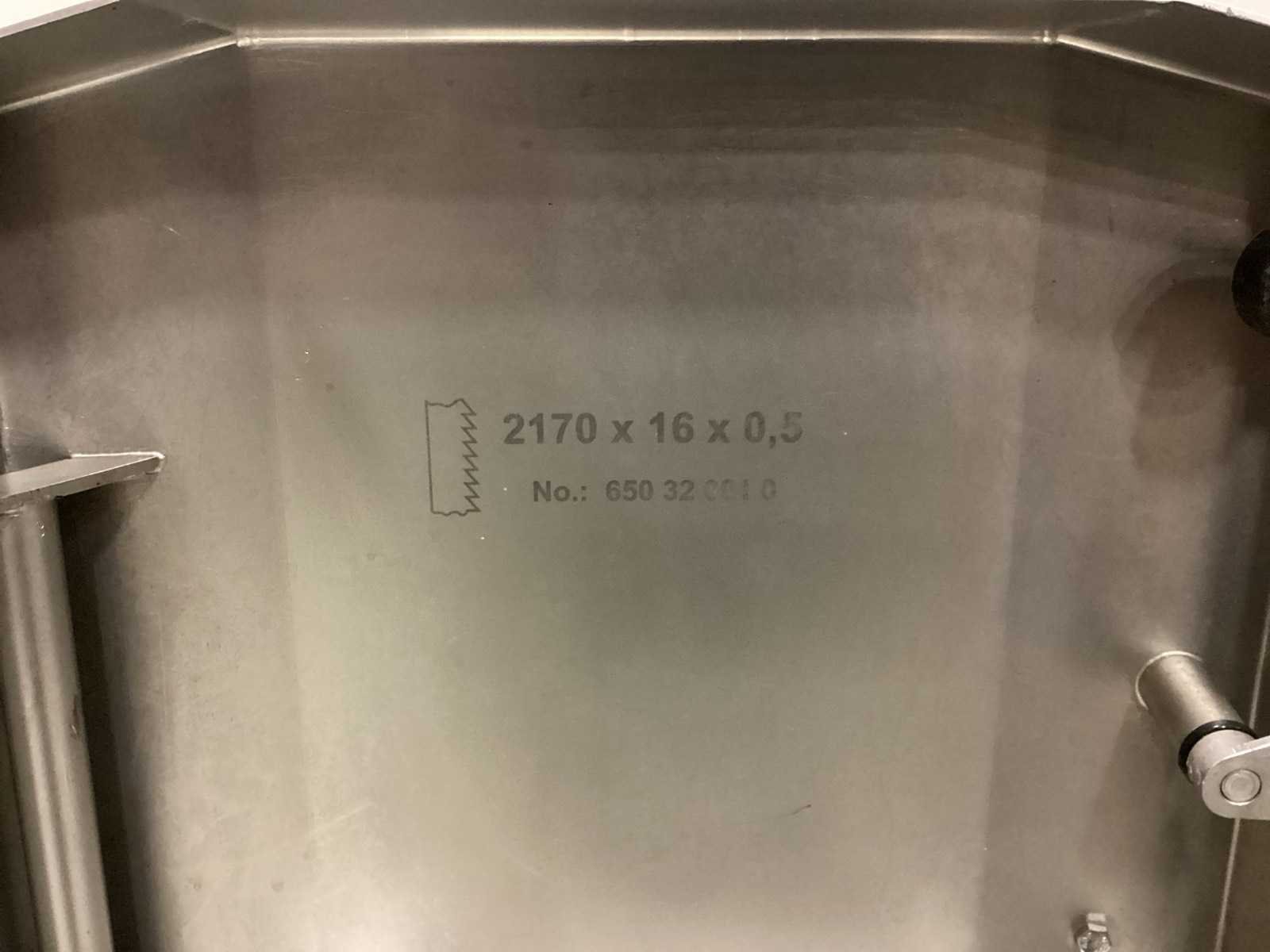 Na te kijken / werking onbekend No Merk: MADO Type: MKB 750 Serienummer: 20018101 Rvs: true Tafel afmeting l: 70mm Tafel afmeting b: 55mm Zaagblad afm. l: 2170mm Zaagblad afm. b: 16mm Zaagbladdikte: 0.5mm Aansluiting: 400V Totale afmeting L: 600mm Totale afmeting Breedte: 700mm Totale afmeting Hoogte: 1600mm