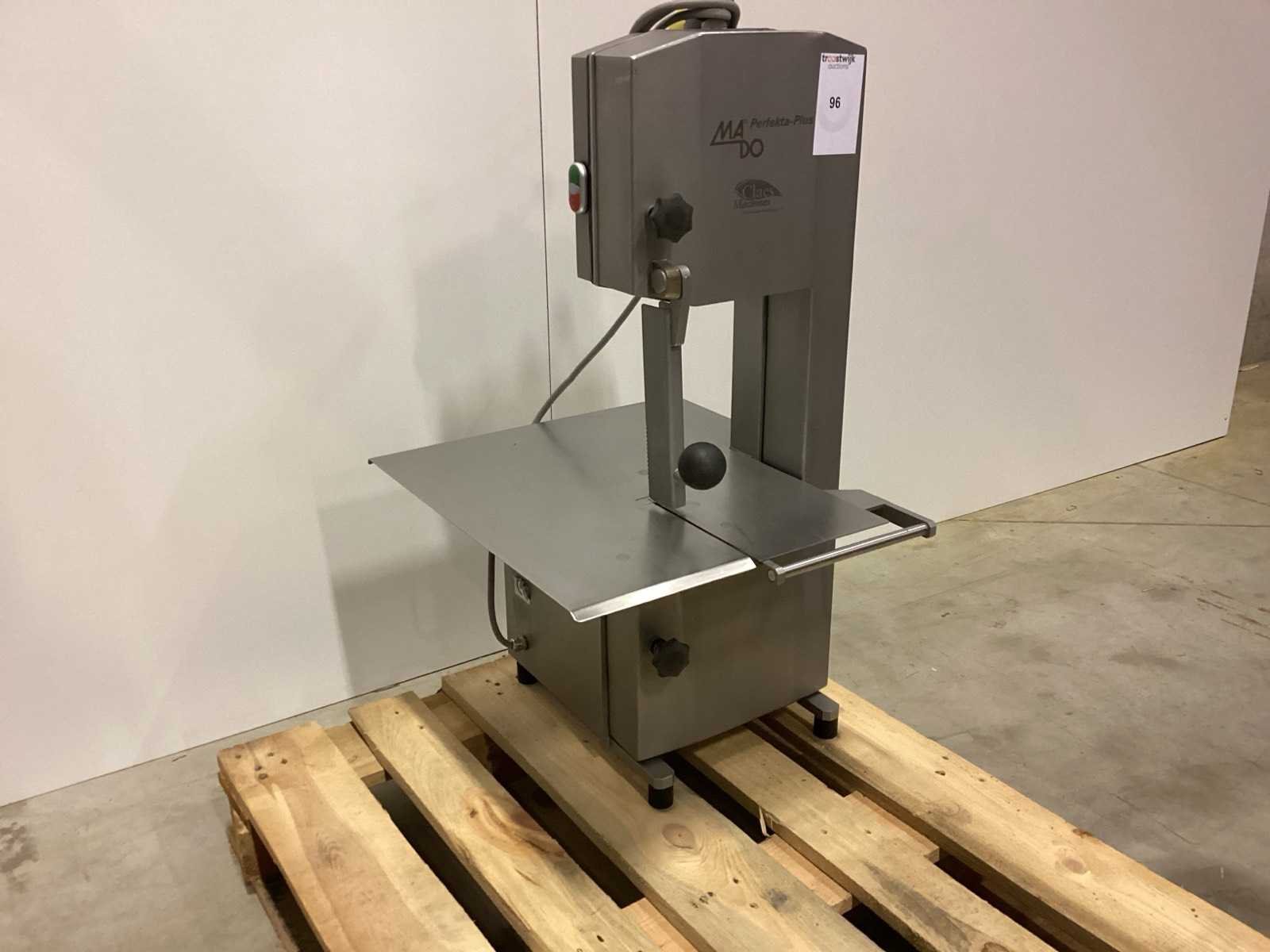 Na te kijken / werking onbekend No Merk: MADO Type: MKB tafelmodel Rvs: true Tafel afmeting l: 600mm Tafel afmeting b: 600mm Zaagblad afm. l: 1750mm Zaagblad afm. b: 16mm Zaagbladdikte: 0.5mm Aansluiting: 400V Totale afmeting Hoogte: 700mm