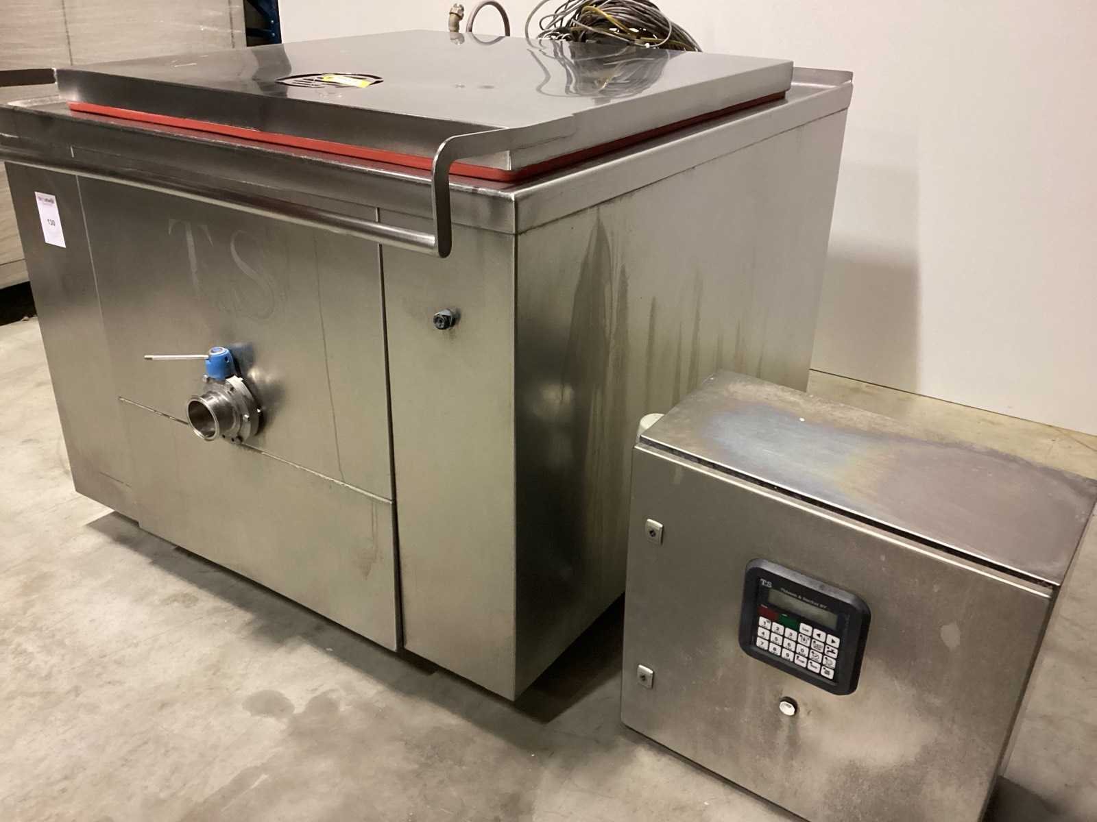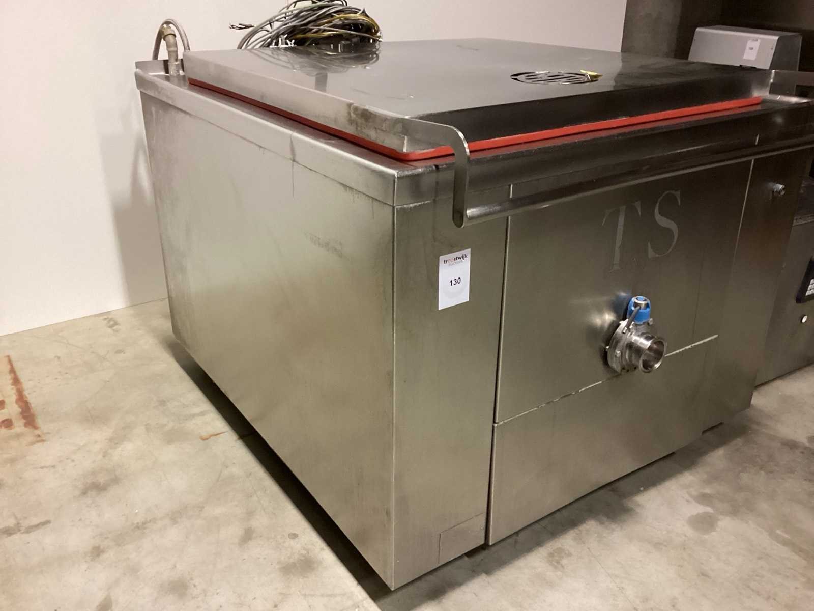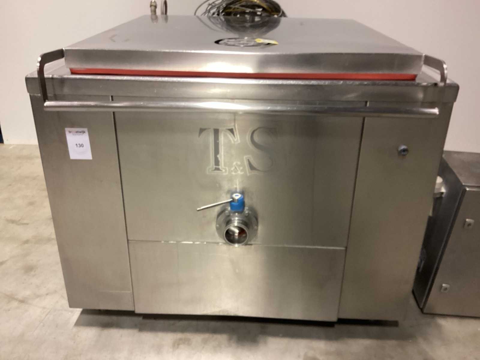 Werking onbekend No Merk: T&S ROERKOOKKETEL Model: TSRR-400SLD STOOMVERWARMD Lengte: 150cm Breedte: 130cm Hoogte: 110cm Materiaal: RVS Totale afmeting Breedte: 130mm Totale afmeting L: 150mm Totale afmeting Hoogte: 110mm Bouwjaar: 2014