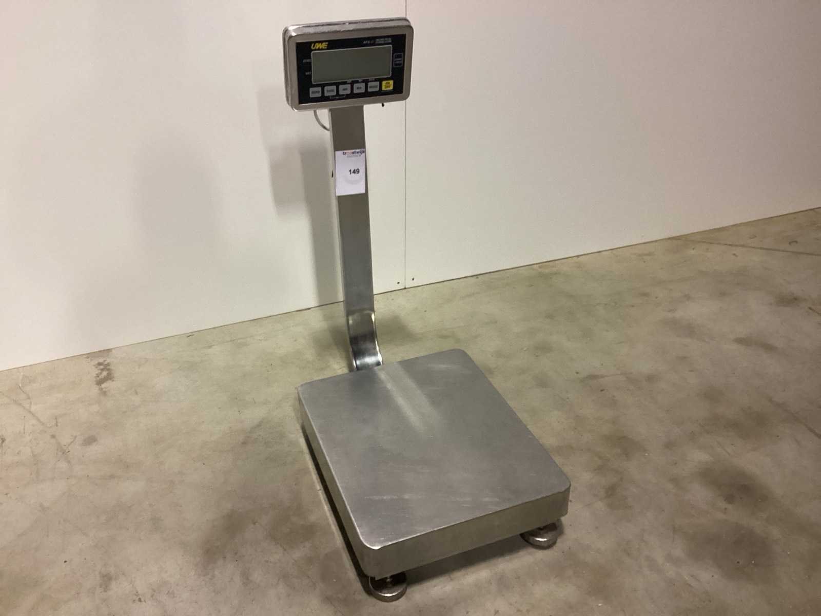 Na te kijken / werking onbekend No Merk: RIBA Type: 150KG AFS-B Serienummer: 6377 Weegbereik min.: 0.05kg Weegbereik max: 150kg Plateau afm. l: 430mm Plateau afm. b: 530mm Digitale uitlezing: true Totale afmeting L: 600mm Totale afmeting Breedte: 500mm Totale afmeting Hoogte: 600mm