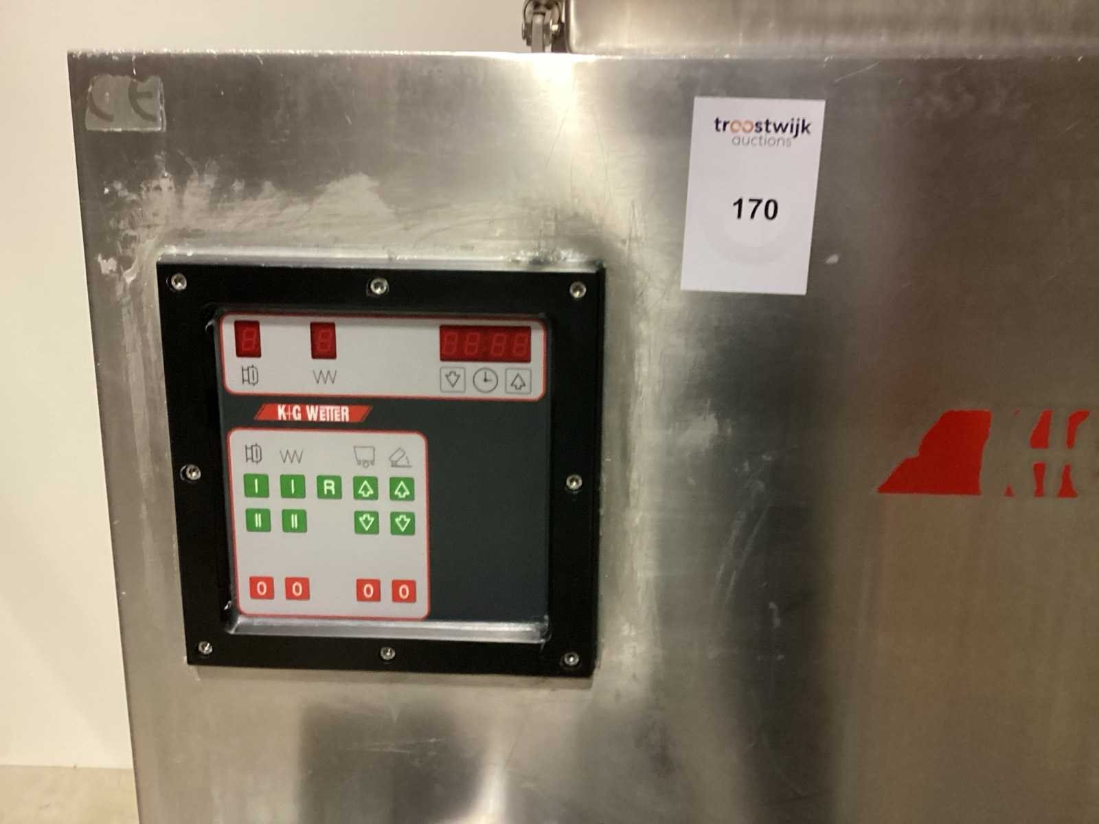 Na te kijken / werking onbekend No Merk: K+G WETTER Type: MWW E-130 met lift Bouwjaar: 2011 Serienummer: 419/1171 Aansluiting: 400V Totale afmeting L: 2400mm Totale afmeting Breedte: 1600mm Totale afmeting Hoogte: 1900mm