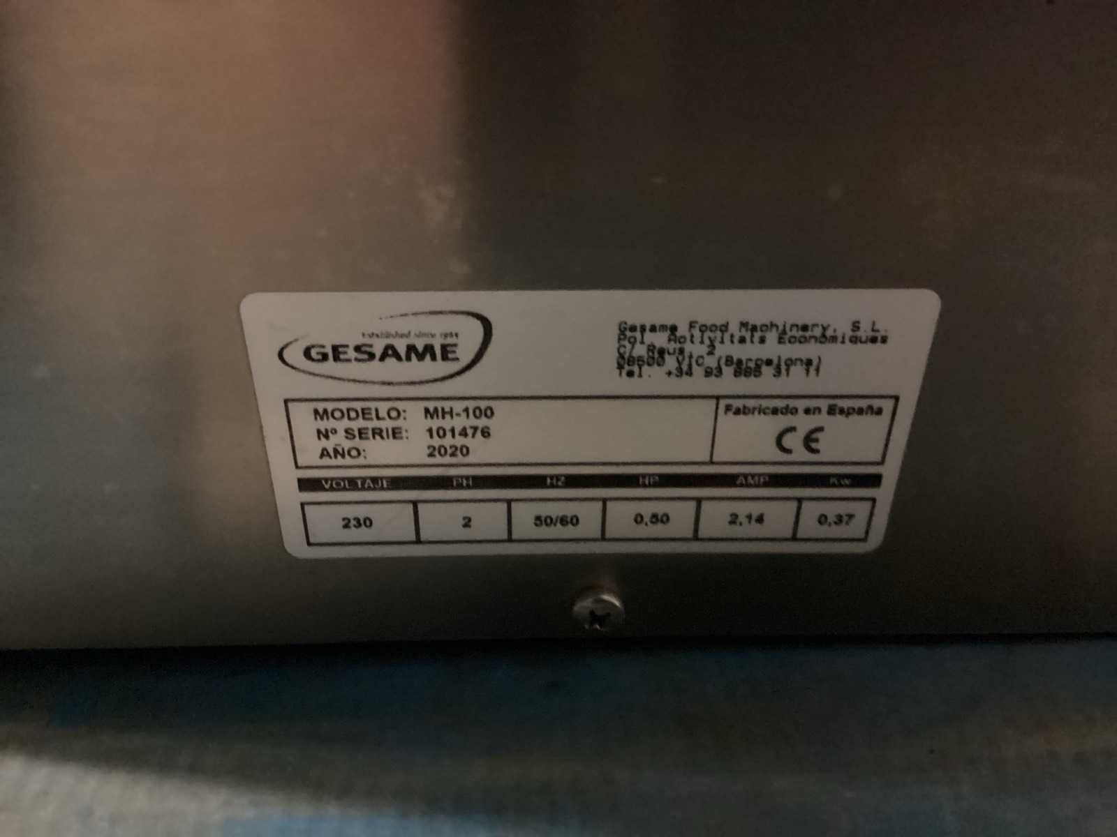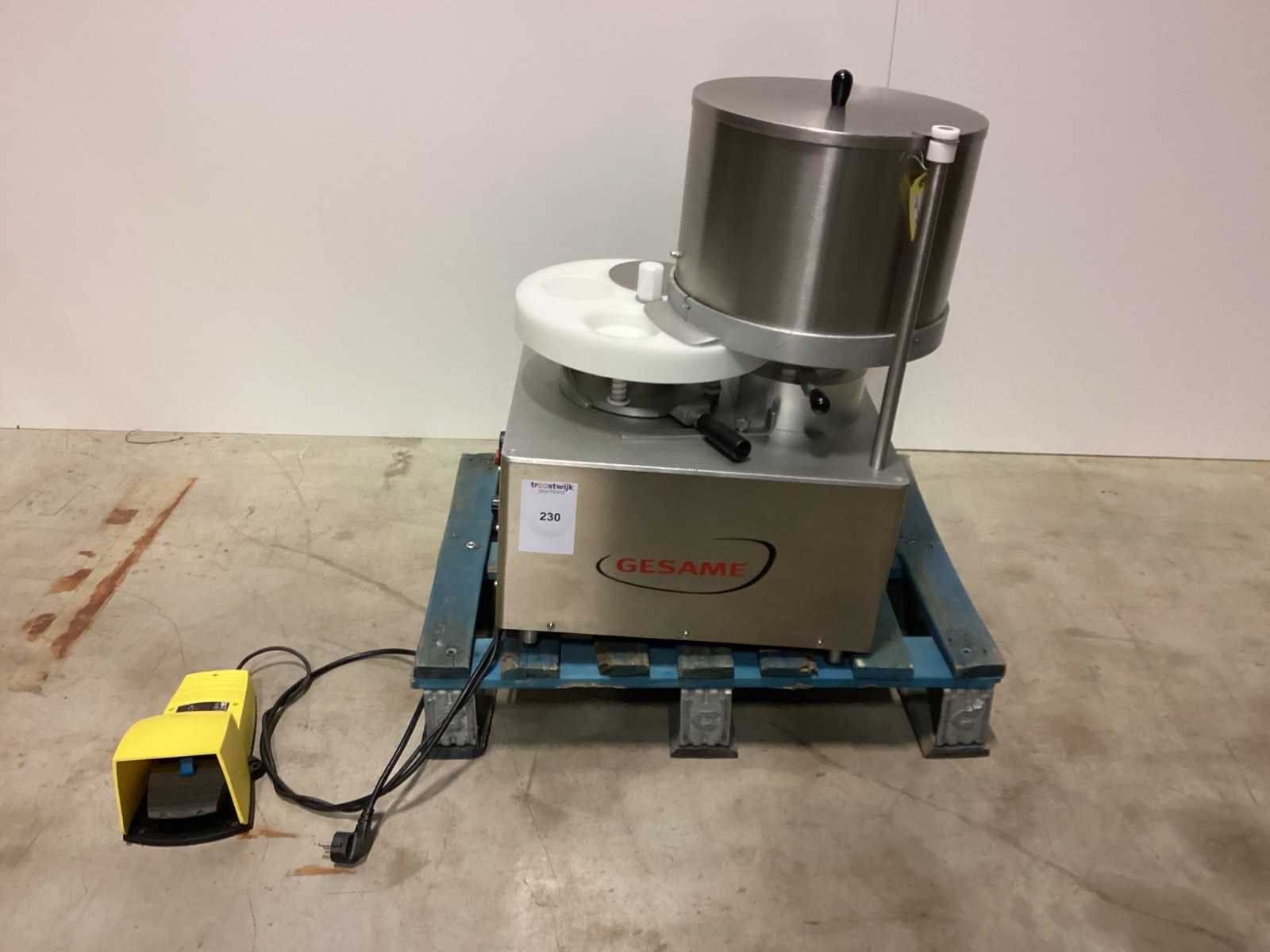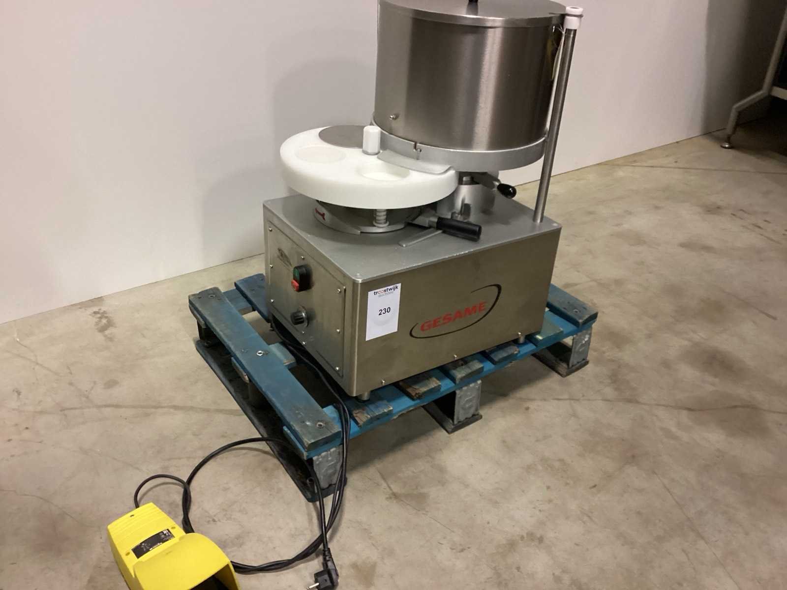 Na te kijken / werking onbekend No Merk: GESAME Type: MH-100 met voetpedaal Bouwjaar: 2020 Pers Ø: 100mm Pers afm. h: 30mm Trechterinhoud: 10kg Aansluiting: 220V Totale afmeting L: 600mm Totale afmeting Breedte: 600mm Totale afmeting Hoogte: 700mm