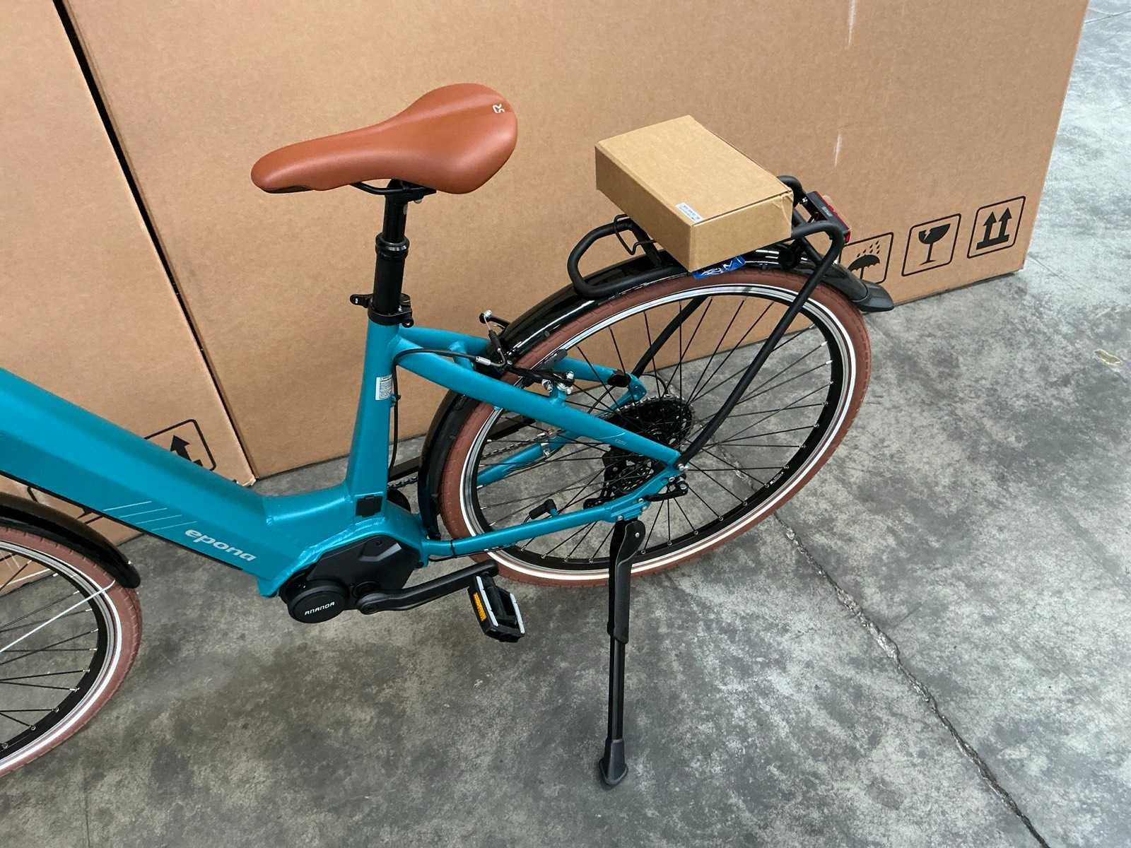 Kaderhoogte: 49cm Bouwjaar: 2025 Max. Cap: 125kg In kartonnen doos. Nee Merk: Epona Voorvering: true Zadelvering: true Versnellingen: 9 Framemaat: 28" Type: Ezzo Kleur: turqoise blue Gewicht: 25kg