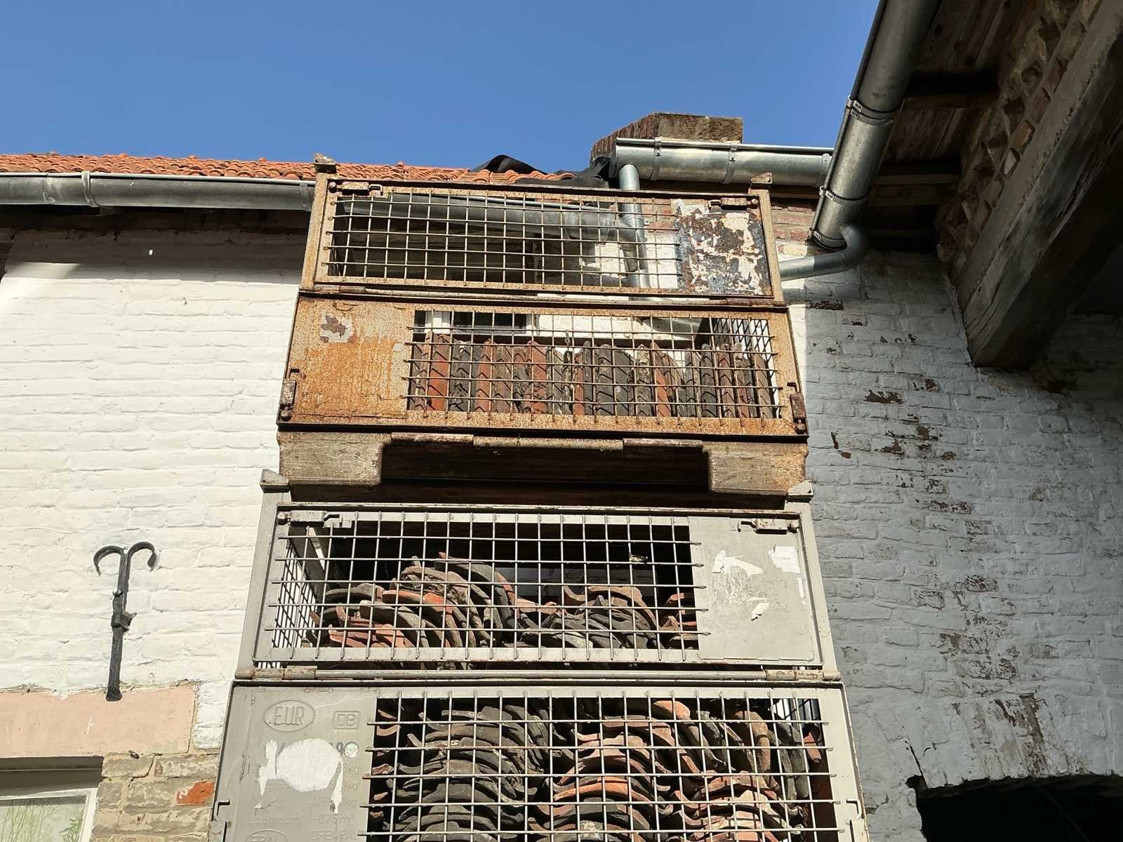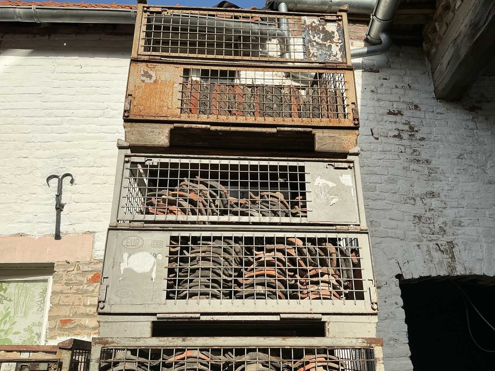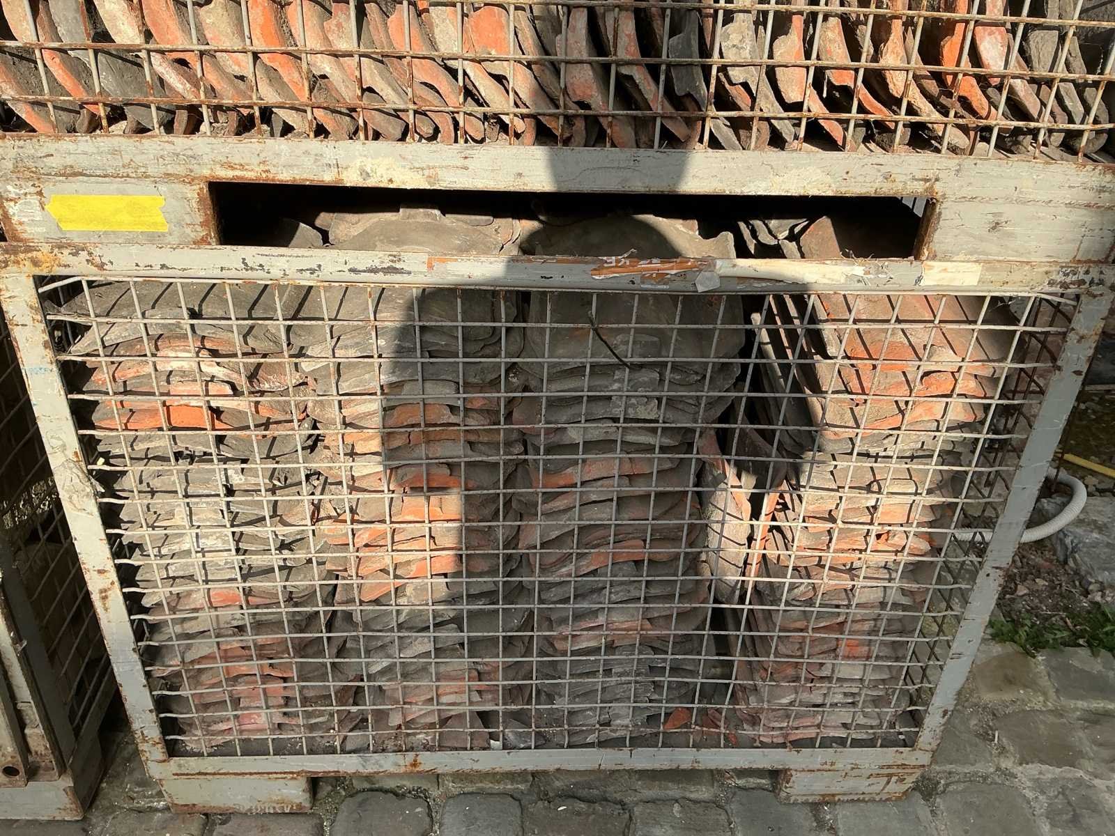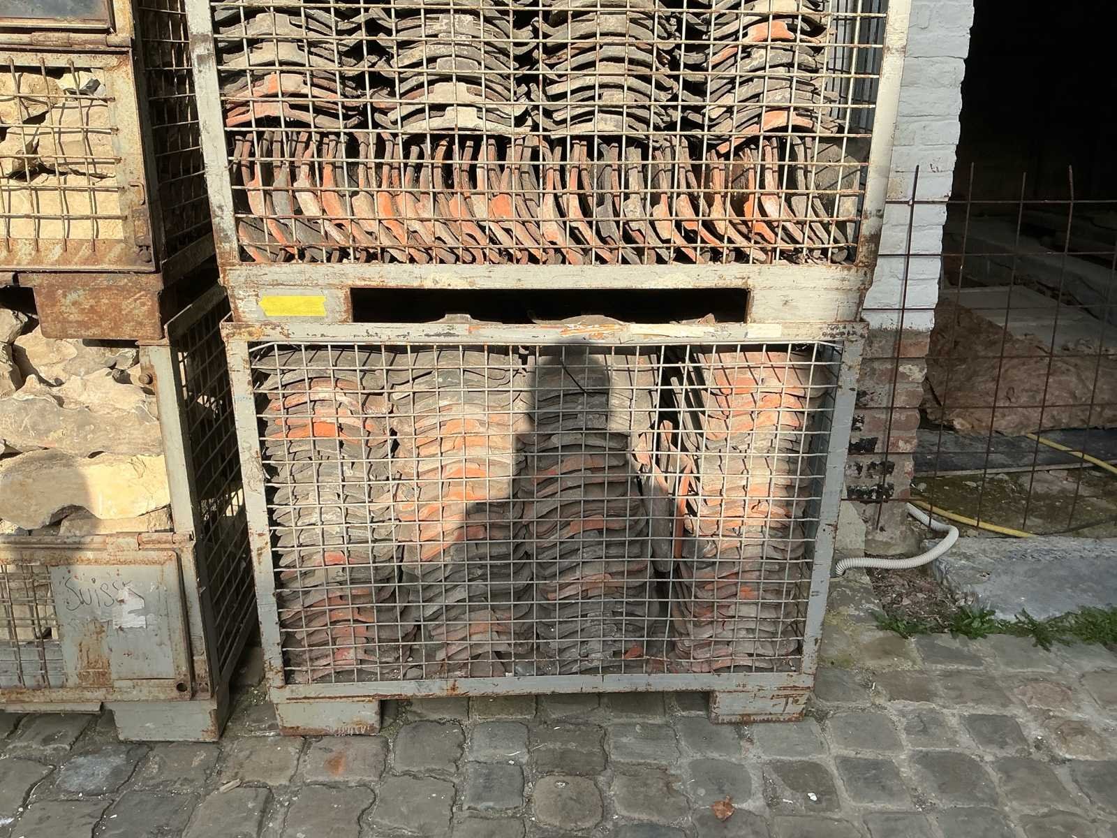 Oude handvorm pannen rood & zwart. dakmateriaal (500x)