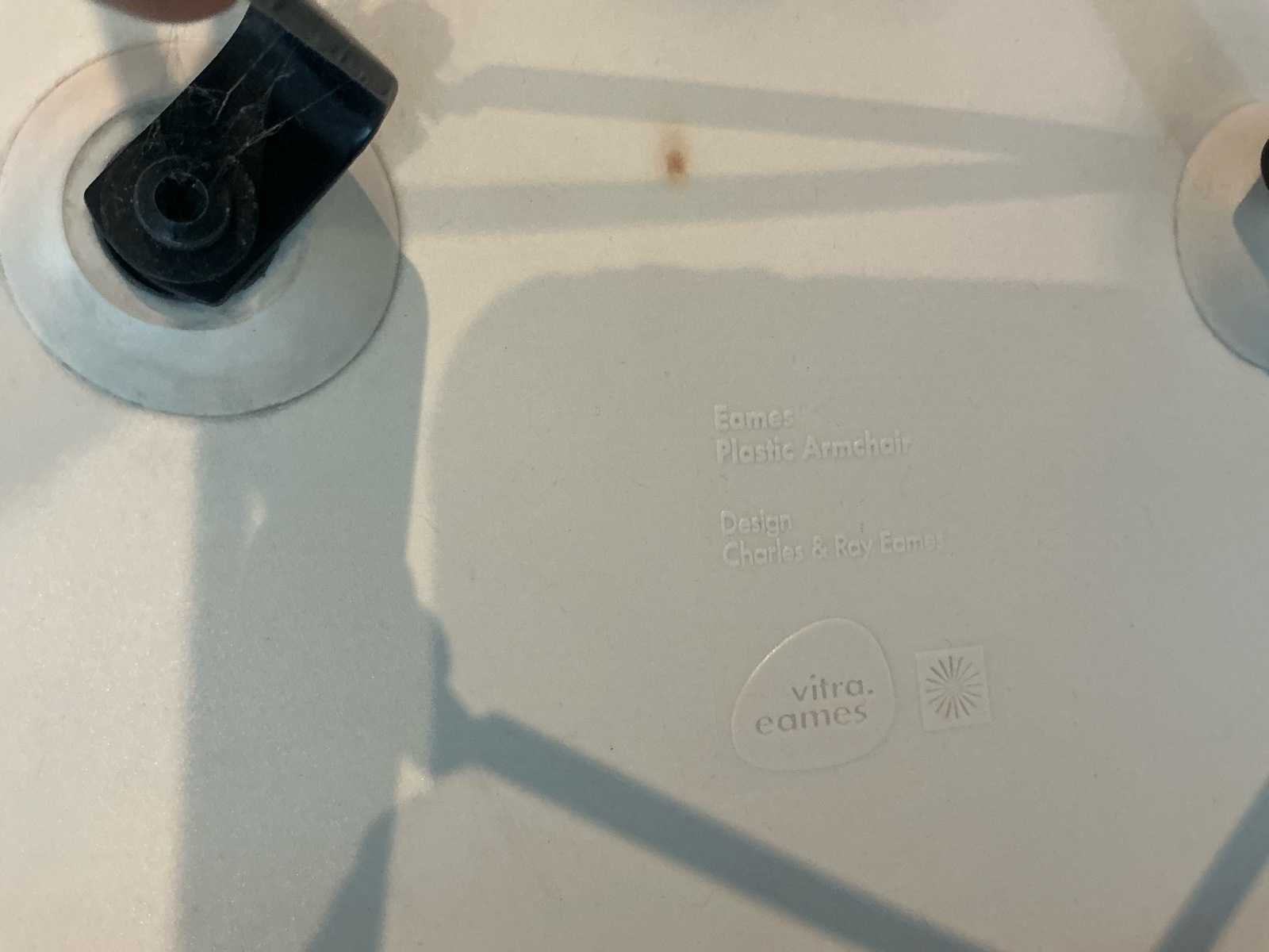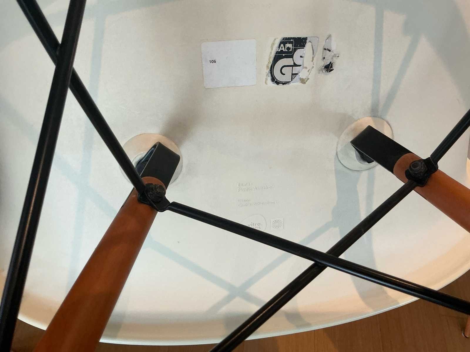 2 originele Eames DAW stoelen, gemaakt door Vitra. Onderaan voorzien van een stempel. Zijn in gebruikte staat en hebben een lichte gele verkeuring. Nieuwprijs is 578€/stuk. Nee Merk: Vitra Model: Dames DAW Kleur: Beige (wit)