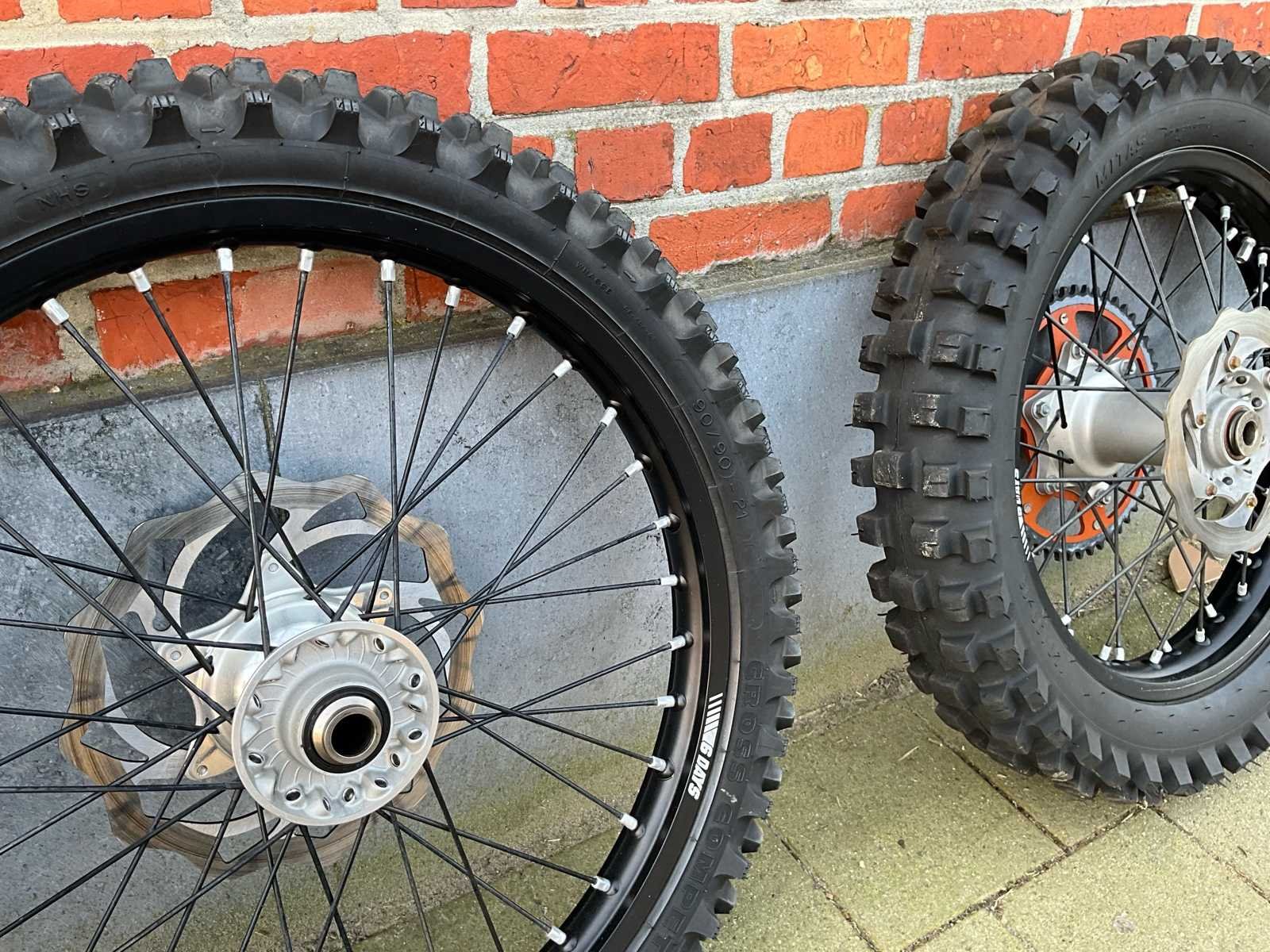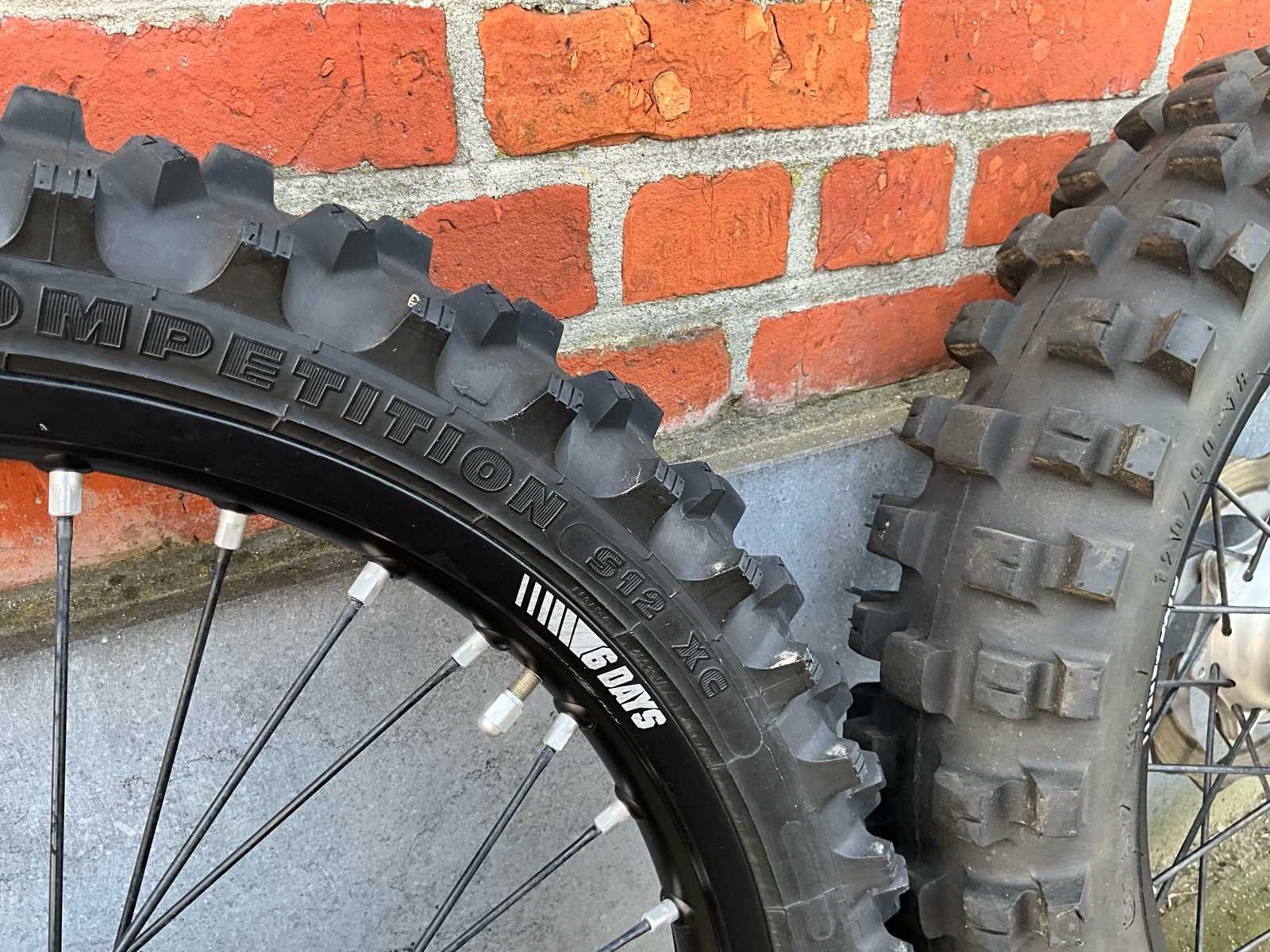 Voorband van Michelin 90/90-21. Achterband van Mira’s 120/90-18 No Merk: KTM Model: 6 days