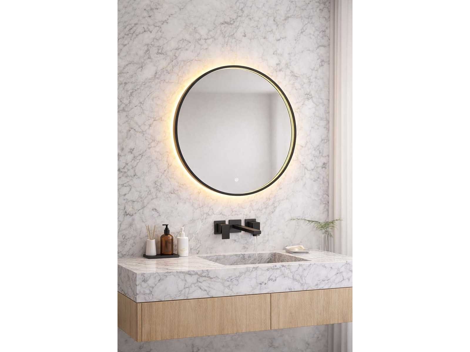Ronde spiegel 80cm met zwarte kader en verlichting binnenkant