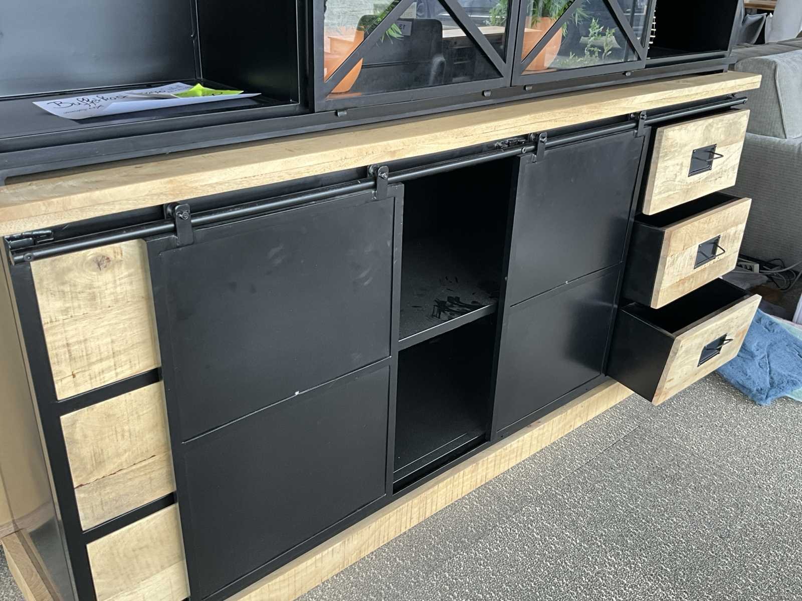 Voorzien van houten afwerking, 4 diverse schuifdeuren en 6 laden, Afm plm 200 x 45 x 220cm Nee Model: Mango
