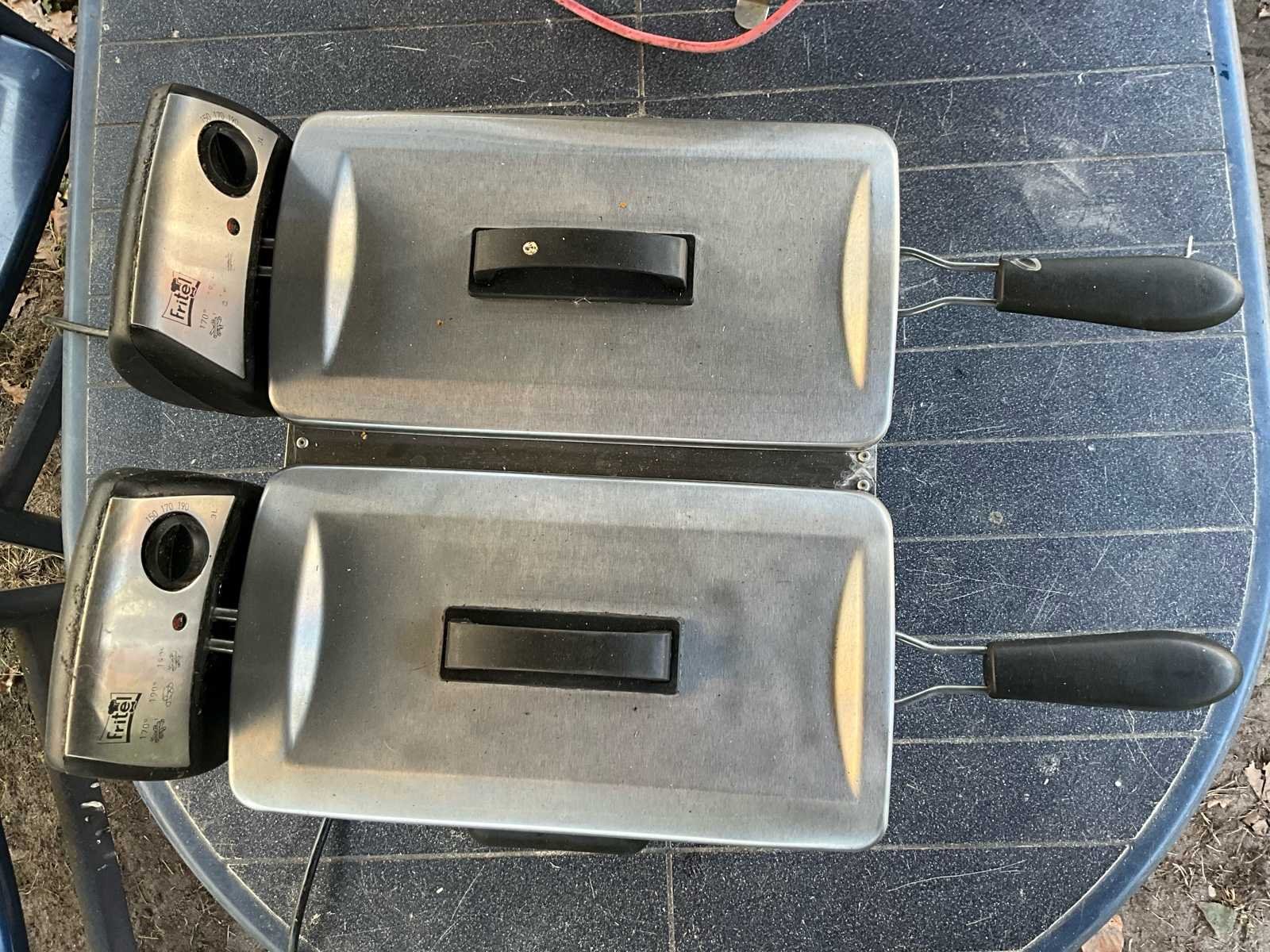 **Titel** Groot keuken & BBQ lot – microgolfovens + Fritel dubbele friteuse + elektrische rookbarbecue **Beschrijving** Te koop: groot lot met verschillende keuken- en barbecuetoestellen. Alles werkt en wordt verkocht als één geheel. Inbegrepen in het lot: 1. **Barbecook elektrische rookbarbecue / smoker** * Elektrisch model * Met grillrooster * Ideaal voor roken van vlees of vis 2. **2 microgolfovens** * 1 × Bluesky microgolf * 1 × Severin microgolf * Beide werkend 3. **Fritel dubbele friteuse – model FR 1355 DUO** * Twee aparte frituurkuipen * Met mandjes en thermostaatregeling * 230V – 2200 W Staat: allemaal werkend - nette staat Ideaal voor studenten, verhuur, camping, hobbyruimte of als reserve toestellen. No