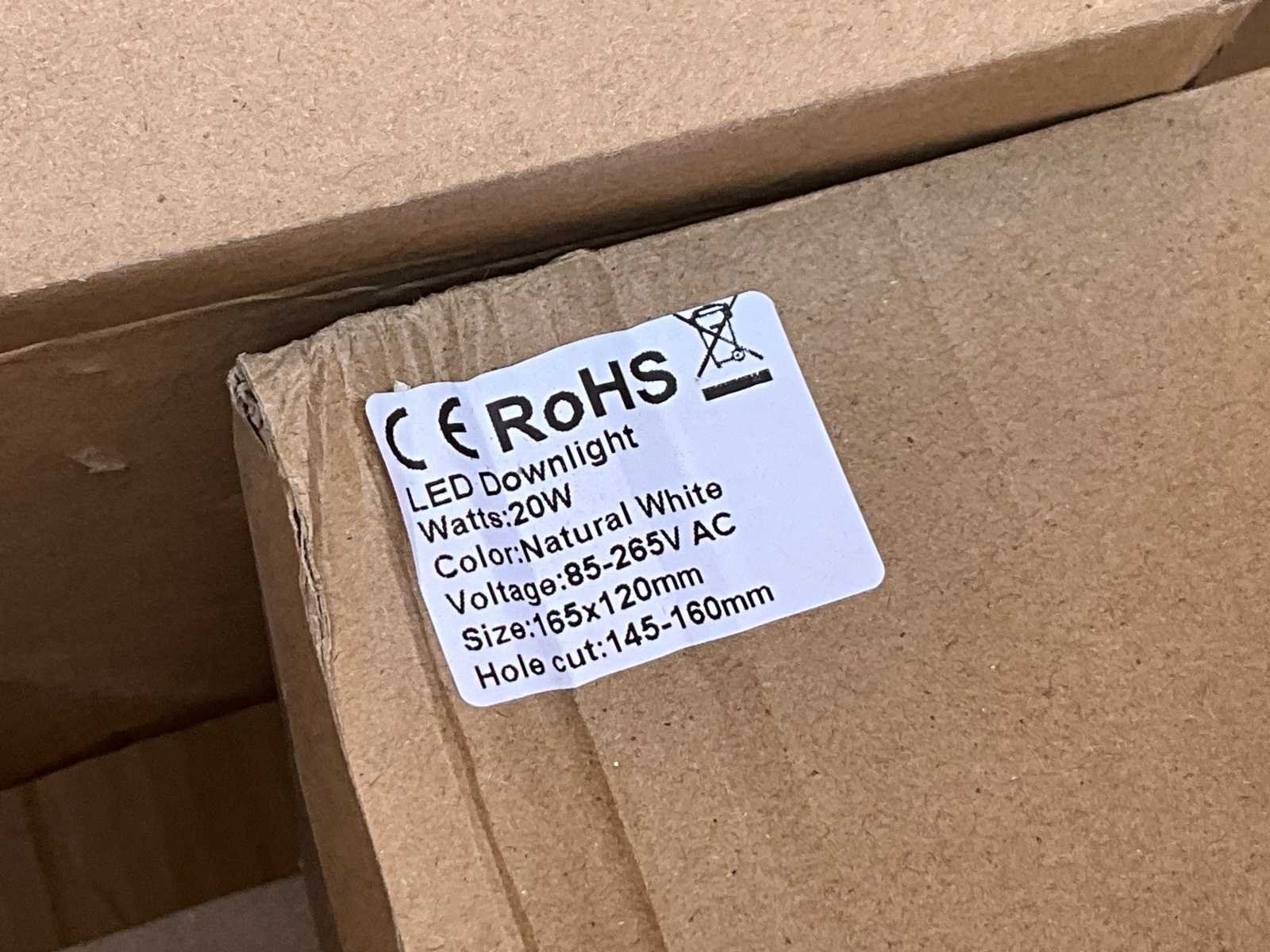 Partij LED inbouwspots / downlights geschikt voor plafondinbouw in winkels, kantoren, magazijnen of woningen. De armaturen zijn nieuw en ongebruikt en worden geleverd met LED driver. Ideaal voor grotere ruimtes waar krachtige verlichting nodig is. Specificaties Type: LED Downlight Vermogen: 20W Lichtkleur: Natural White Voltage: 85–265V AC Afmeting armatuur: 165 × 120 mm Zaagmaat: 145–160 mm Inclusief LED driver No Kleur: natural white