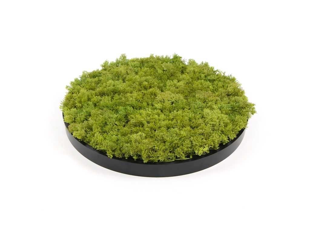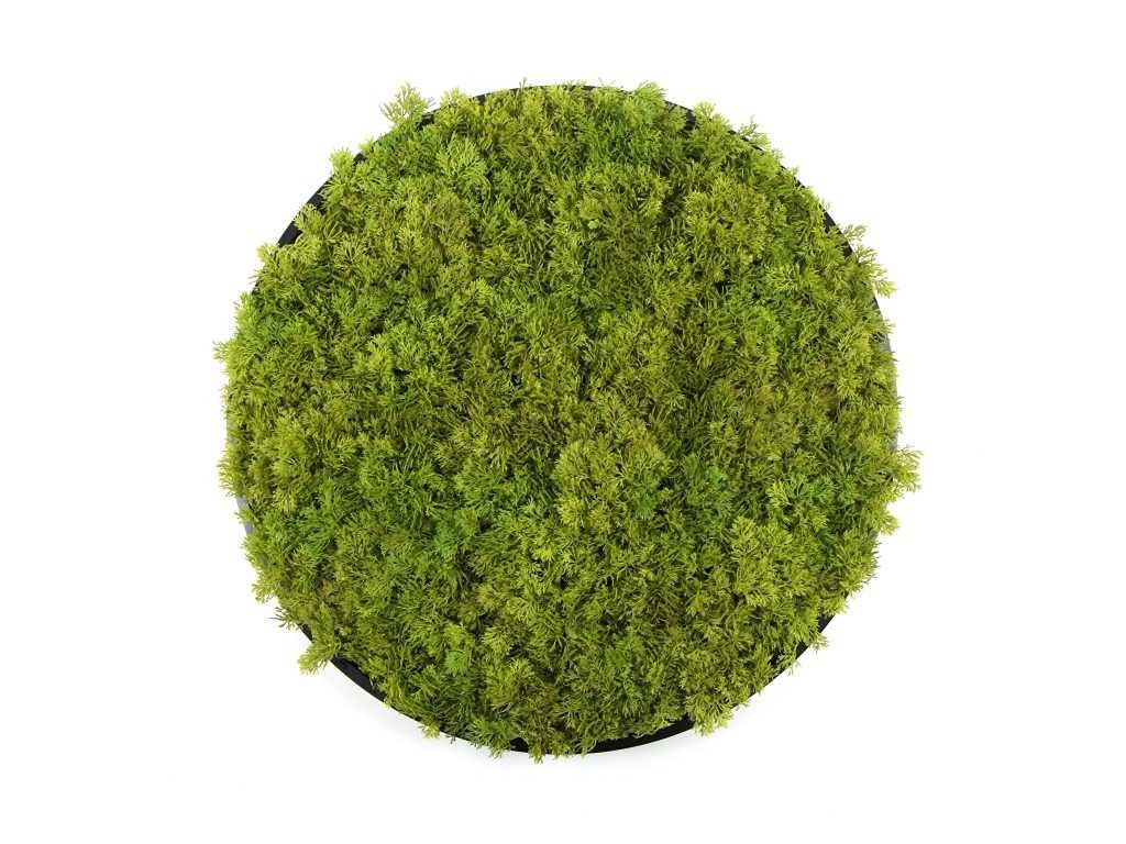 Het kunstmos is UV-bestendig en brandvertragend. Elke moscirkel is individueel verpakt in dubbelwandig karton. No Merk: Jivana Model: Moss circle Product type: artificial moss Kleur: Lime Green Gewicht: 2.3kg Lengte: 50cm Breedte: 50cm Hoogte: 6cm
