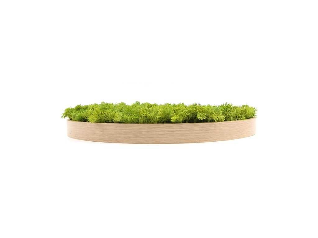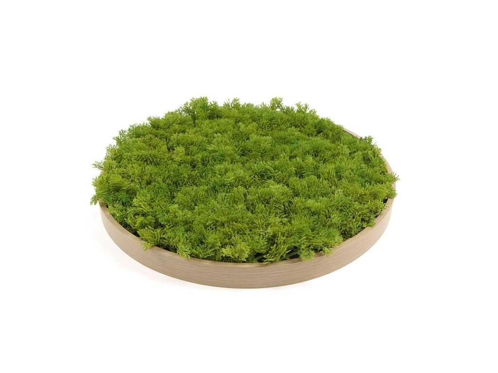 (30x) moscirkel 75 cm, kleur smaragdgroen / aluminium frame met houtlook. wanddecoratie.