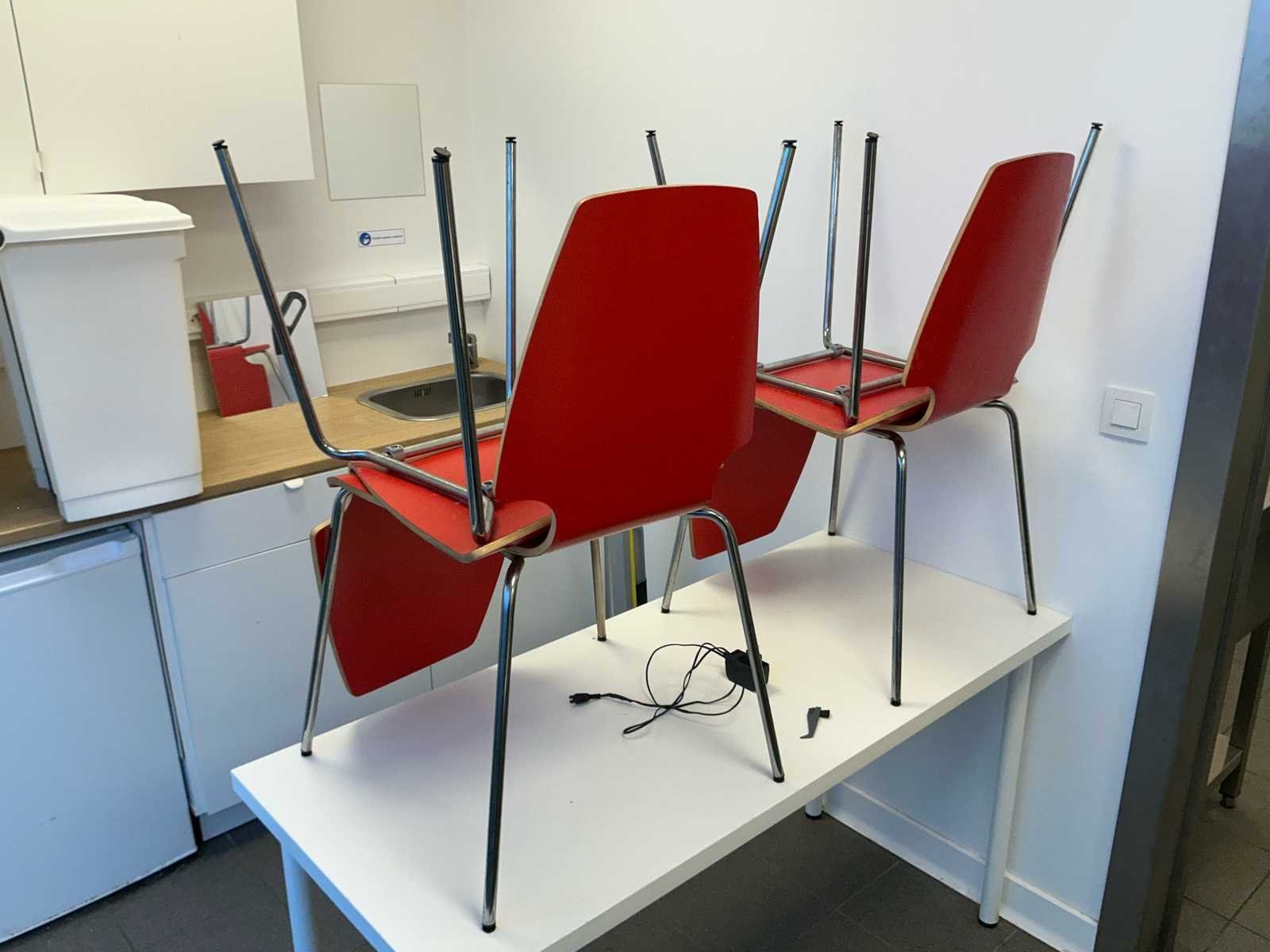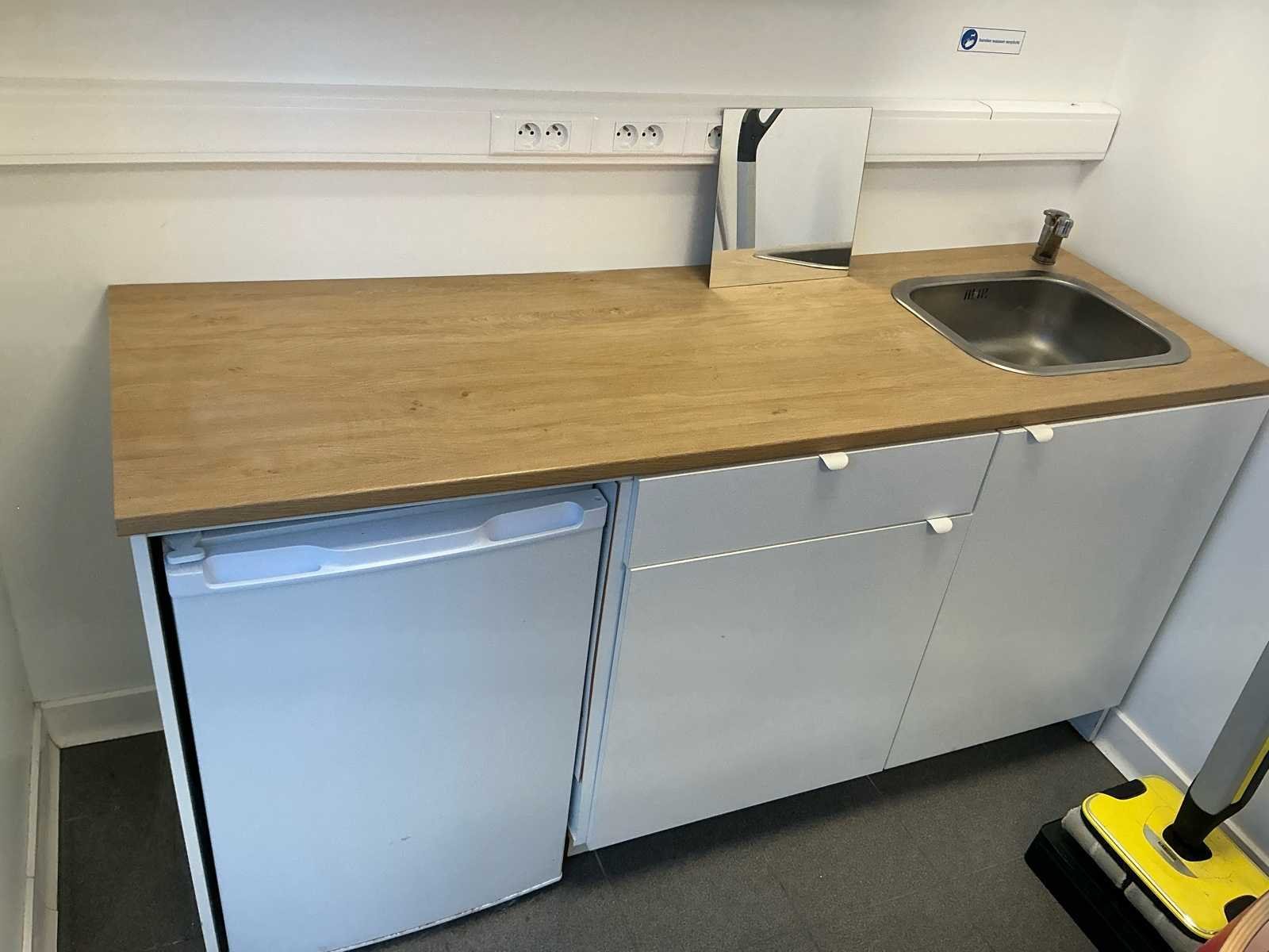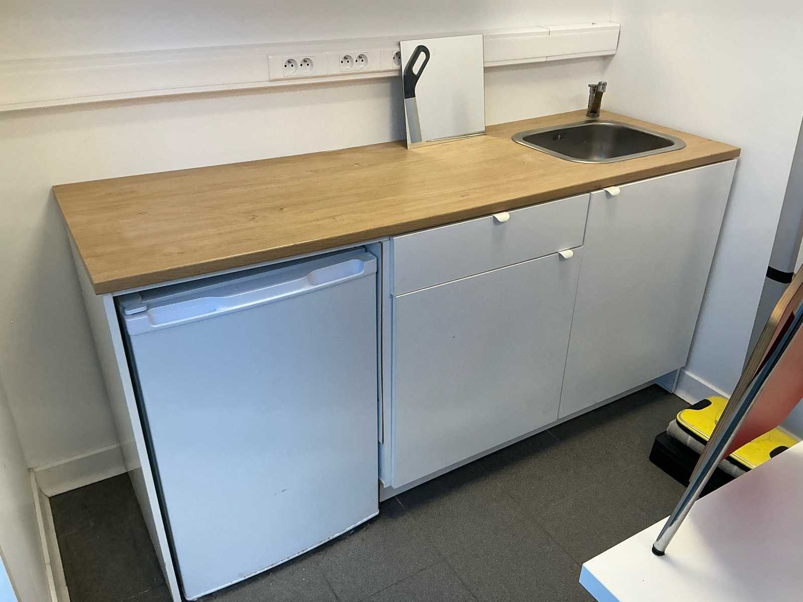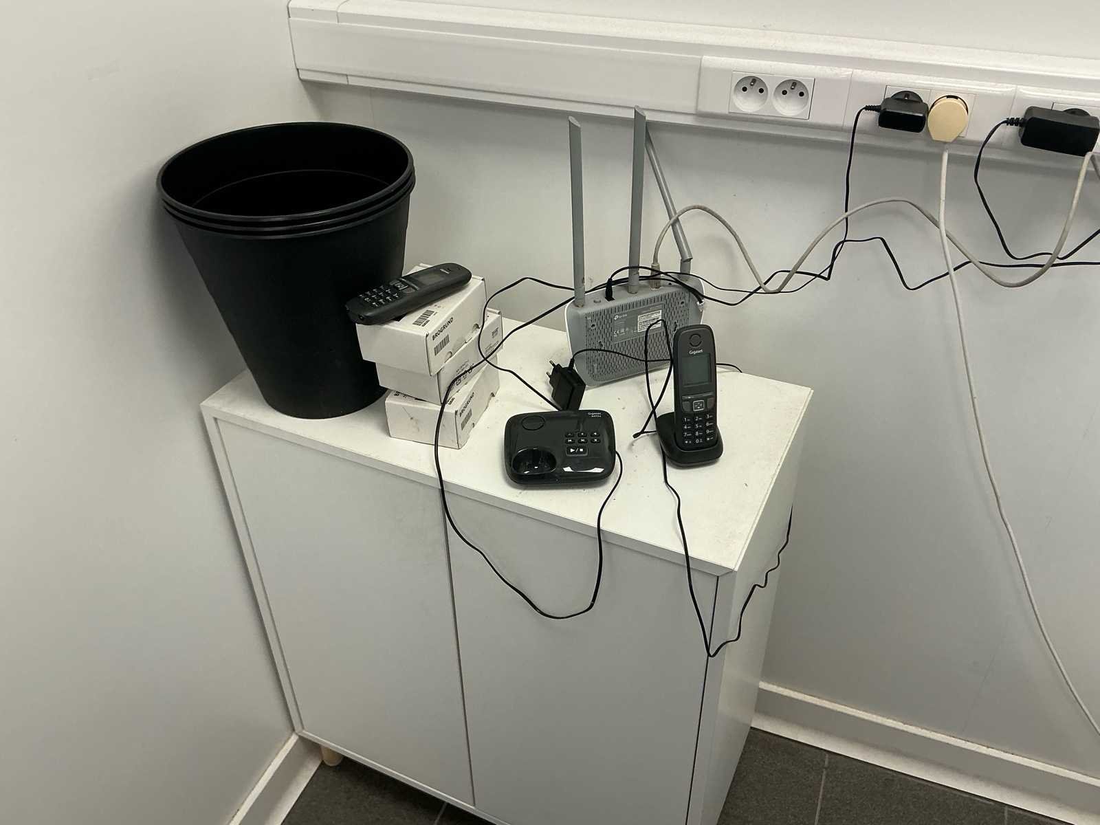 Het lot bevat: - Kleine kast - 3 telefoon + basis - Tafel - 4 stoelen -Werkblad hout -Kasten -Frigo -Spoelbak -Kasten (hangend) Alles zelf te demonteren. No