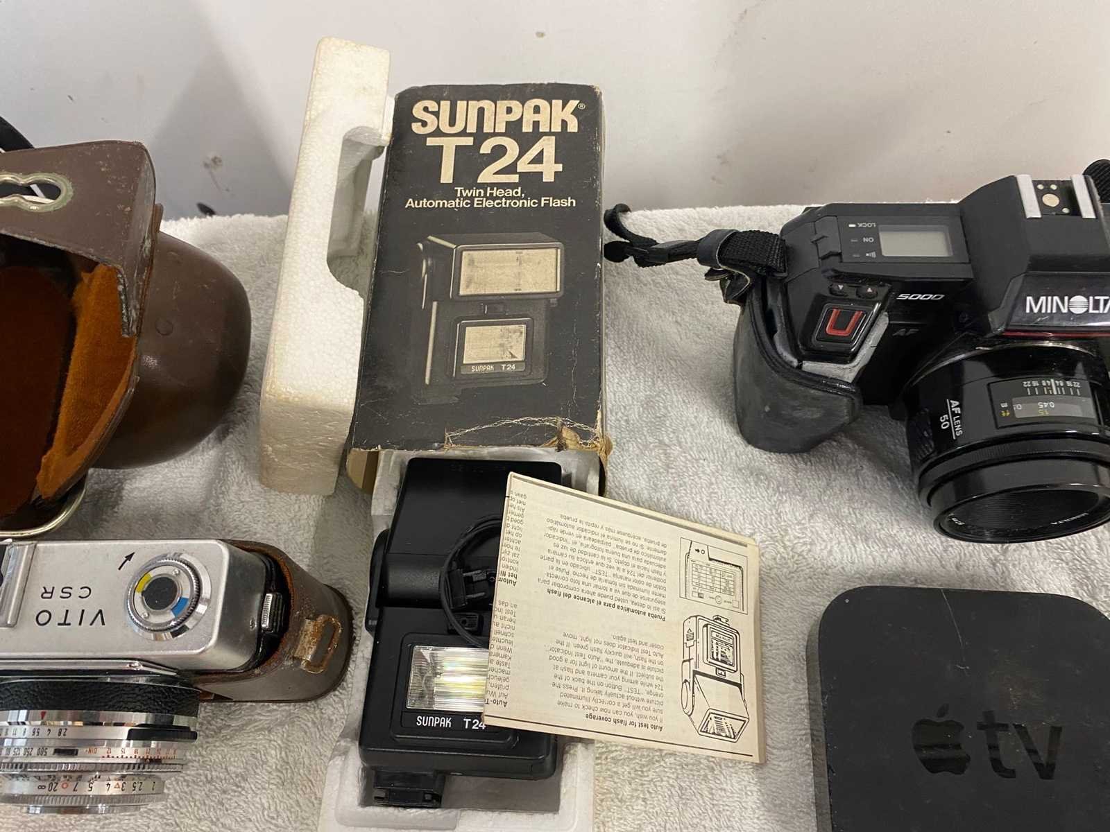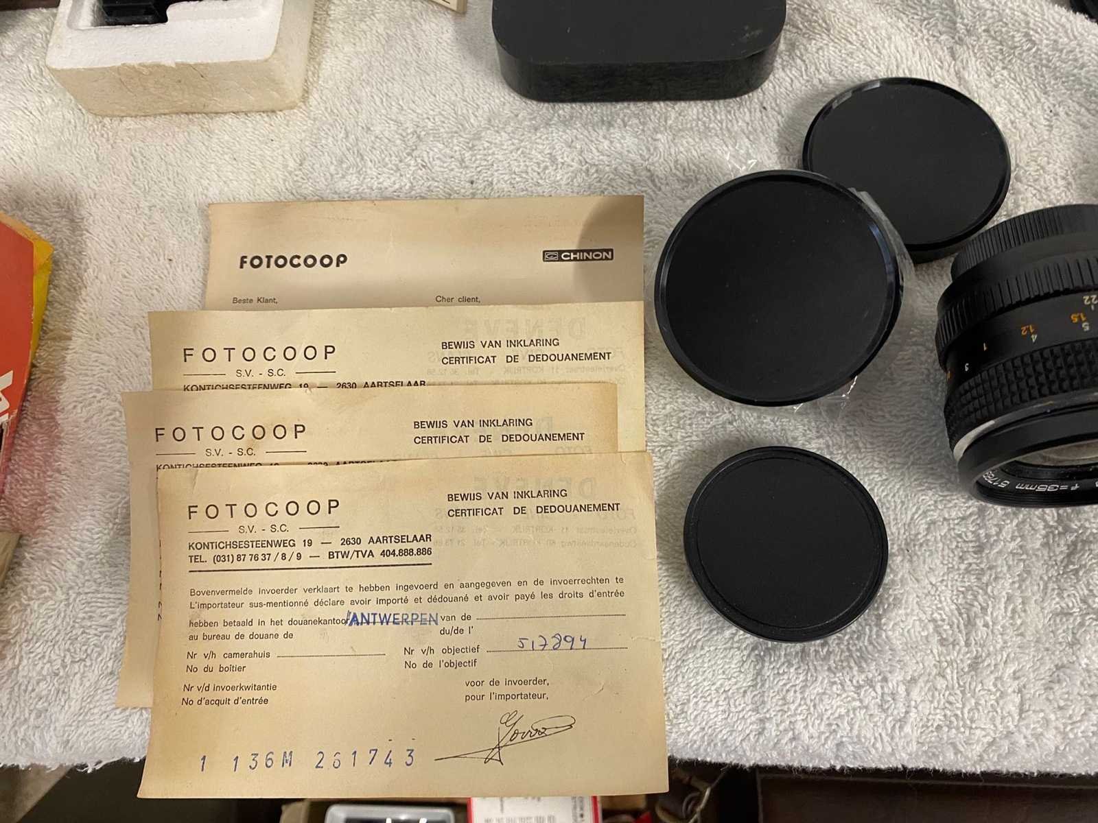 Camera's: - Chinon CS (35mm SLR): Chinon 55mm f/1.7 Auto Lens Originele leren hoes - Minolta 5000 AF :50 mm AF-lens - Voigtländer Vito CSR: Color-Lanthar 2.8/50 lens leren hoes Super 8 camera: Canon Zoom 518-2 Super 8 Originele handleiding Aankoopdocumenten Canon C-8 1,6x teleconverter Originele doos voor wat accessoires Flash Sunpak T24 Dubbele Kop Automatische Elektronische Flits Originele doos Folders Aanvullende doelstellingen Auto Chinon 28mm f/2.8 Auto Chinon telelens (Gemaakt in Japan) Canon C-8 Teleconverter Diverse accessoires: Filmrollen Schuifladers / behuizingen Filters en condensatoren Oude Canon-documenten Diverse zaken Gebruikte staat, oude apparatuur Niet getest Verkocht zoals het is Aanwezigheid van leeftijdsgebonden slijtage No Land: België Fabrikant: Minolta - broodje - kanon Model: Voir description