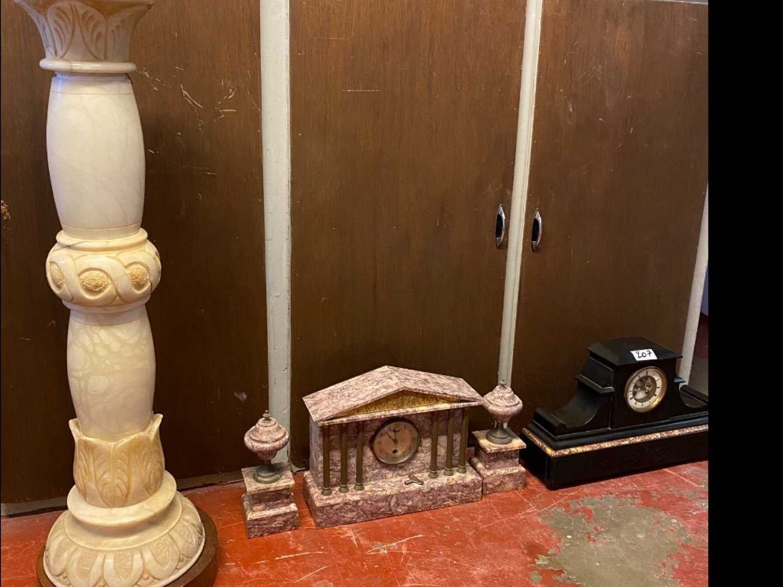 Kavel: schoorsteenmantelklokken en een pilaster