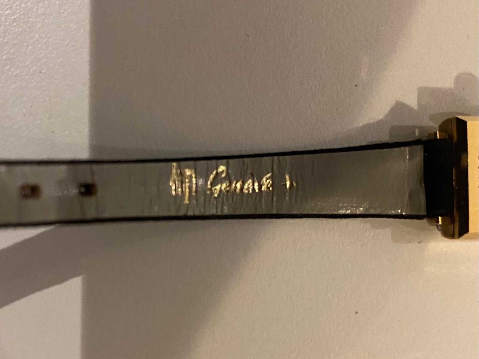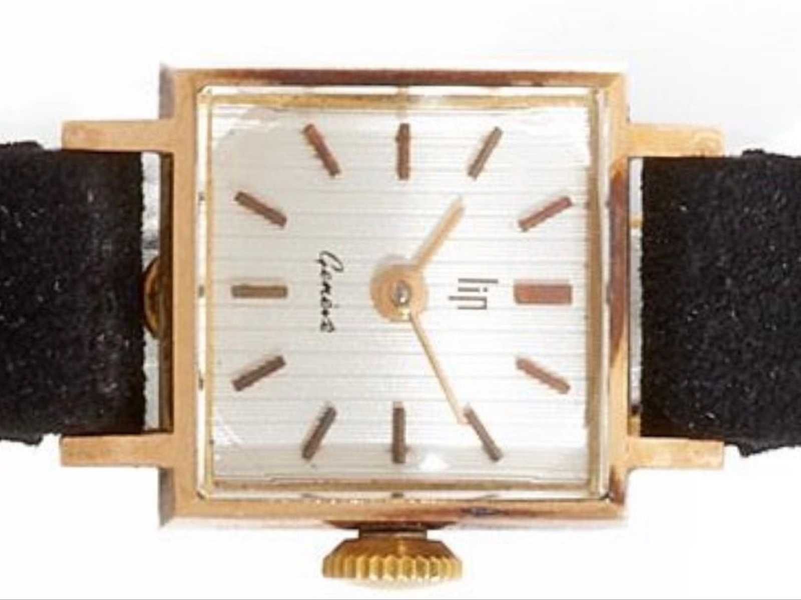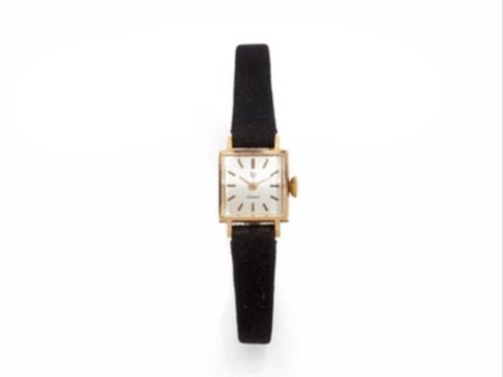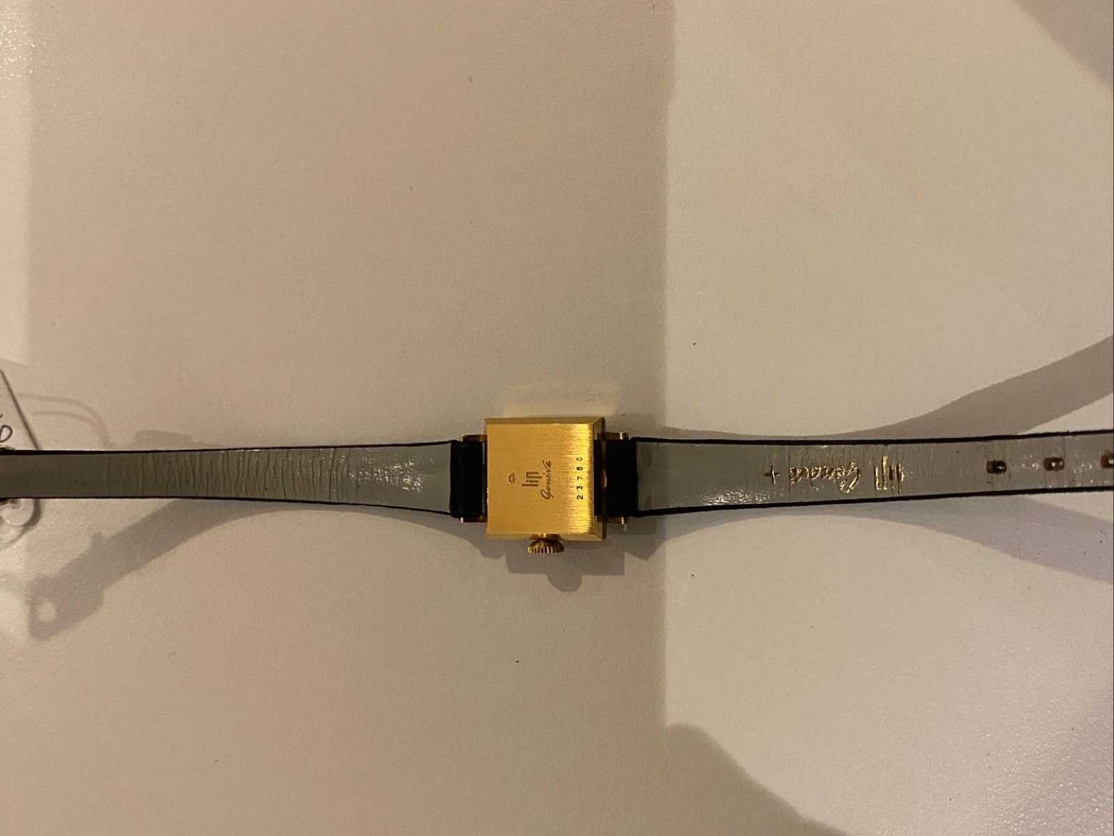 LIP Genève dameshorloge – Verguld kast – Ref. 23780 – Vintage Elegant dameshorloge van LIP Genève, vintage model met vierkante kast. Functie: Kast: verguld (geelgoudtint) Vorm: vierkant Wijzerplaat: verzilverd met vergulde batonindexen Goudgeplateerde wijzers Handmatige winding (zijkroon) Zwarte riem Goudkleurige speldgesp Kijk met een sober ontwerp dat typisch is voor de jaren 60 en 70. No Merk: Lip Genève Model: Femme Referentienummer: 23780