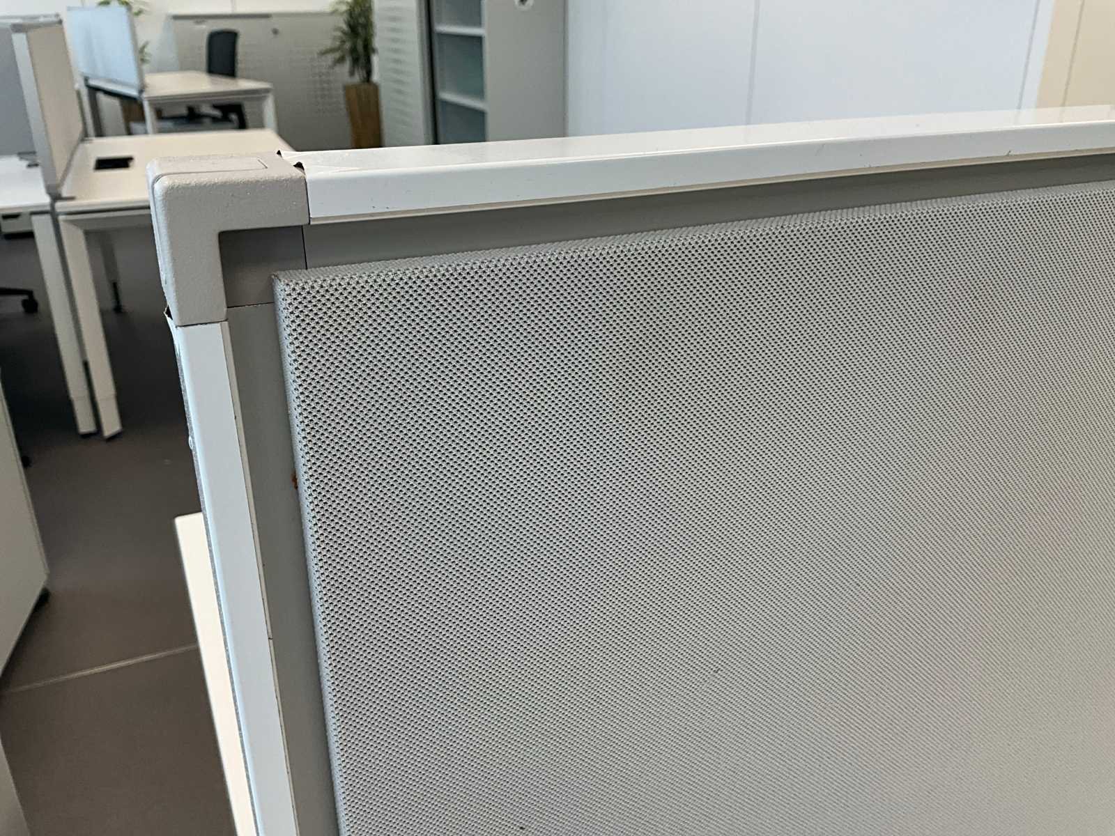 Bestaande uit 2x Bureau 160x80cm en 1x akoestische scheidingswand 160x46cm. In hoogte verstelbaar. Voorzien van kabeldoorvoer Nee Merk: STEELCASE Lengte: 80cm Breedte: 160cm Materiaal: Hout, metaal
