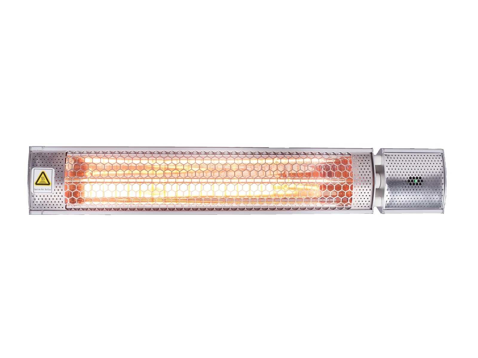 Deze infrarood terrasverwarmer zorgt razendsnel voor aangename warmte en heeft een slank en stijlvol design. Hij is geschikt voor zowel binnen- als buitengebruik dankzij zijn spuitwaterdichte behuizing. Met de handige afstandsbediening bedien je hem moeiteloos, en hij wordt compleet geleverd met al het benodigde montagemateriaal. Nieuw en in de originele, ongeopende verpakking. Formaat: Lengte 68cm x Hoogte 11cm x Diepte 7cm Materiaal: Geanodiseerd Aluminium Bevestiging: Plafond- en muurbevestigingsbeugel inclusief (regelbare hoek) Inbegrepen accessoires: Afstandsbediening Verwarmingsbron: elektriciteit Vermogen: 2000 watt - 2KW Type lamp: InfraRood "Golden Quartz" lamp Bereik: 18 – 30 m² IP-certificering: IP65 - geschikt voor buitengebruik (spuitwaterdicht) Certificaten: EU-gecertificeerd: CE, RoHS, IP65, CB, GS Instelbare lichtsterkte:2 vermogensstanden No Model: Aluminium Product type: Terrasverwarmer Lengte: 68cm Breedte: 7cm Hoogte: 11cm Materiaal: Aluminium