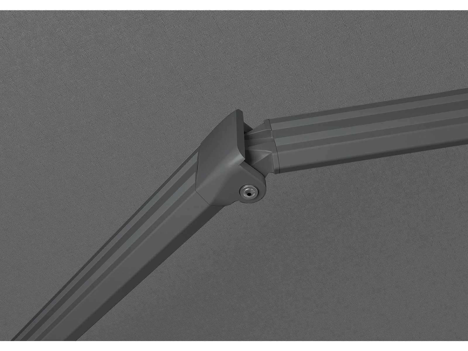 Een zonnescherm voor uw terras en andere plaatsen waar u overdag verkoelende schaduw wilt en ‘s avonds een beschutting tegen de vallende dauw. Het frame is van sterk en duurzaam aluminium en het zonnescherm is uitgevoerd in 280 g/m² polyester. Het doek is waterdicht en heeft een UV-bestendigheid van UV50+. Makkelijk met een slinger te bedienen. Zeer eenvoudige montage Specificaties: - Stevige, gelakte aluminium constructie met dubbele stalen kabelgeleiding. - Instelbare hellingshoek en geïntegreerde waterpas voor eenvoudige montage. - Geclassificeerd tot windsnelheid 5 (windklasse 2) - Kwalitatief luifeldoek: Polyester +PU Coating (UV50+). - De complete set bestaat uit schroeven, muurmontage profiel, betonankers, geïntegreerde waterpas en handslinger. - Instelbare hoek tot 45°. - Afmeting (Breedte x uitval): 295 x 250cm No Merk: SolidCube Product type: Zonneluifel Kleur: Antraciet Lengte: 250cm Breedte: 295cm Materiaal: Aluminium