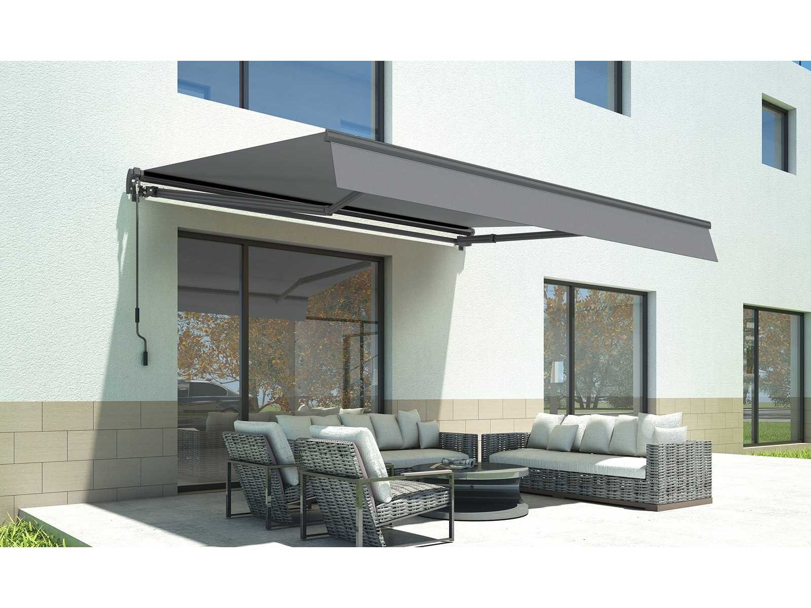 Een zonnescherm voor uw terras en andere plaatsen waar u overdag verkoelende schaduw wilt en ‘s avonds een beschutting tegen de vallende dauw. Het frame is van sterk en duurzaam aluminium en het zonnescherm is uitgevoerd in 280 g/m² polyester. Het doek is waterdicht en heeft een UV-bestendigheid van UV50+. Makkelijk met een slinger te bedienen. Zeer eenvoudige montage Specificaties: - Stevige, gelakte aluminium constructie met dubbele stalen kabelgeleiding. - Instelbare hellingshoek en geïntegreerde waterpas voor eenvoudige montage. - Geclassificeerd tot windsnelheid 5 (windklasse 2) - Kwalitatief luifeldoek: Polyester +PU Coating (UV50+). - De complete set bestaat uit schroeven, muurmontage profiel, betonankers, geïntegreerde waterpas en handslinger. - Instelbare hoek tot 45°. - Afmeting (Breedte x uitval): 350 x 250cm No Merk: SolidCube Product type: Zonneluifel Kleur: Antraciet Lengte: 250cm Breedte: 350cm Materiaal: Aluminium